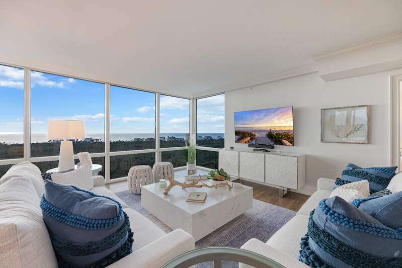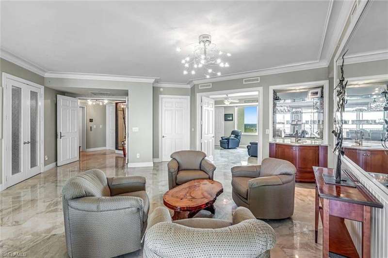 Rarely available 03 residence located in the Grande Phoenician. This luxurious sky home comes with a private Cabana. Enjoy the serene views of Turkey Bay, The Gulf and stunning sunsets. This spacious residence is in a gated tower with luxurious amenities and walking distance to one of Southwest Florida's most stunning beaches. Complete with ceiling heights of over 9 feet, a gourmet kitchen featuring a gas cooktop, quartz countertops, decorative stainless -steel side-by-side refrigerator, an under counter wine cooler, a large primary suite and a guest primary with an ensuite. The elevator opens directly into your spacious foyer. According to the developer brochure, all external windows comply with FLA 2002 impact-resistance requirements. This condominium does have the ability to have the Floridian Beach Club Membership. A shuttle service provides shuttle service to and from The Floridian Beach Club located on Vanderbilt Beach. The Dunes is a Premier Gated Coastal community managed by Troon that includes a tennis pro shop and lit tennis courts, pickleball, a state-of-the-art fitness center, food and beverage service around the resort-style pool, indoor and outdoor dining, tiki bar, and so much more.