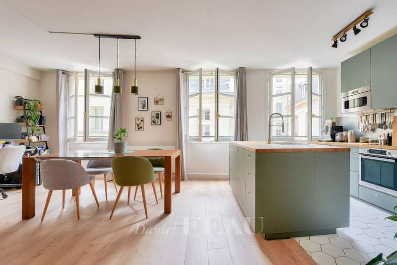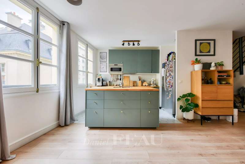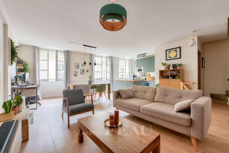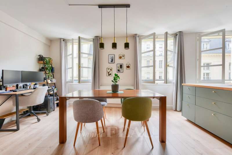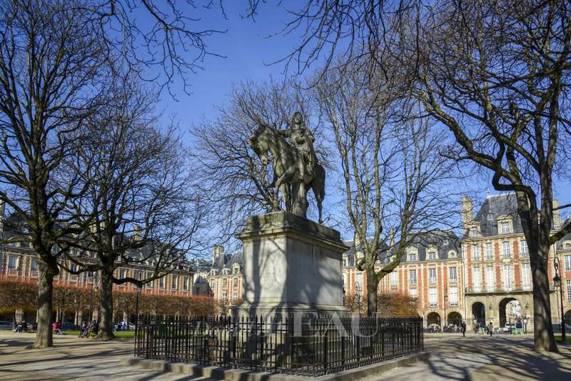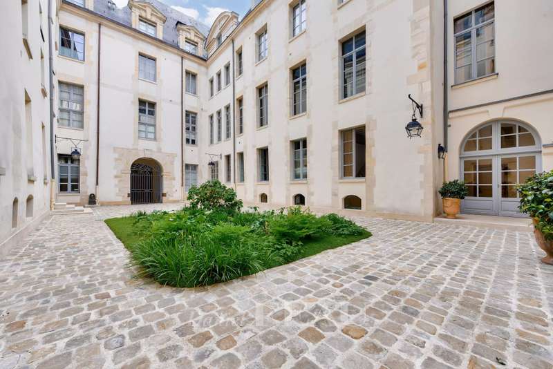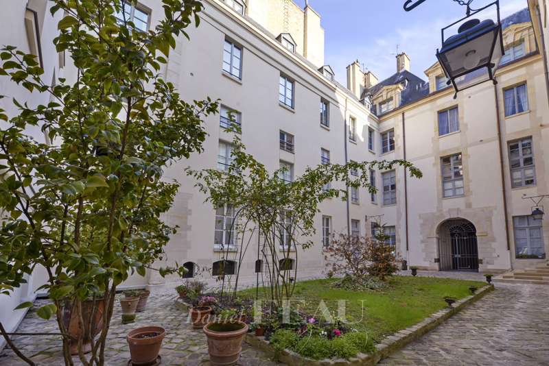 This elegant duplex apartment is on the 1st and 2nd floors of a building with a lift accessed from historic Place des Vosges. Recently renovated, it includes a bright west-facing living/reception room with a fitted and equipped open-plan kitchen, two bedrooms, a bathroom, a dressing room and two wc. A basement parking space in the building may be acquired at extra cost.