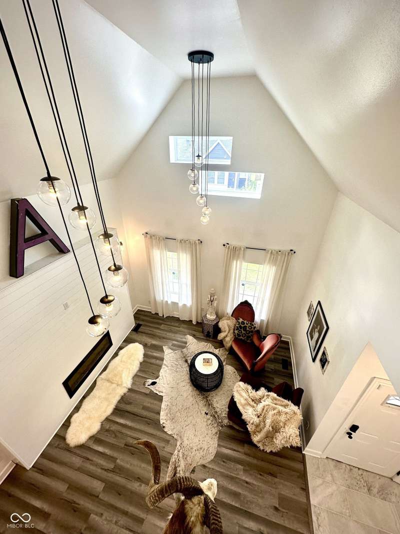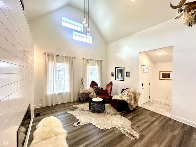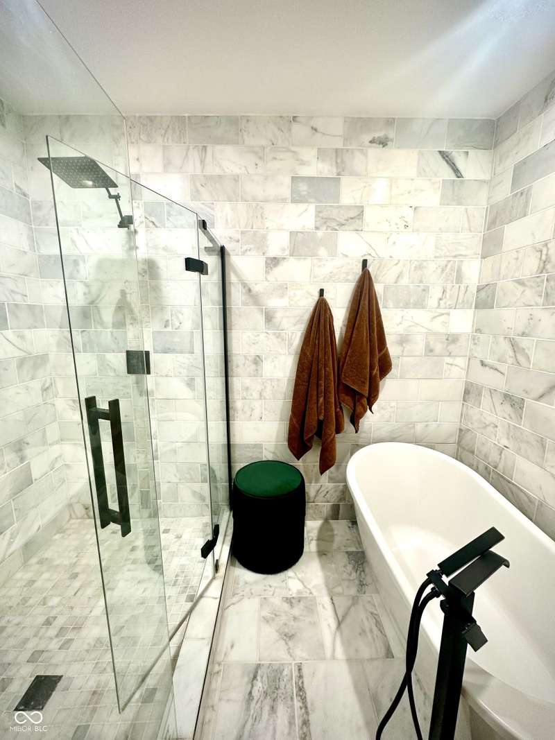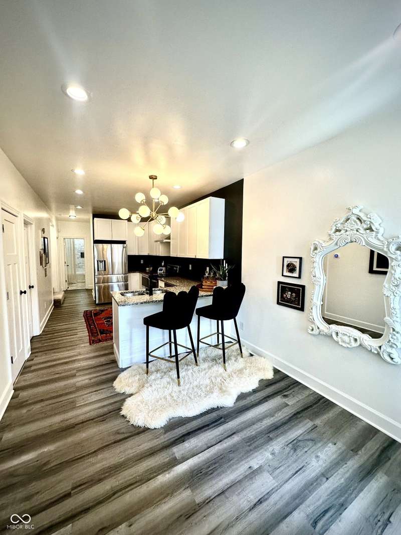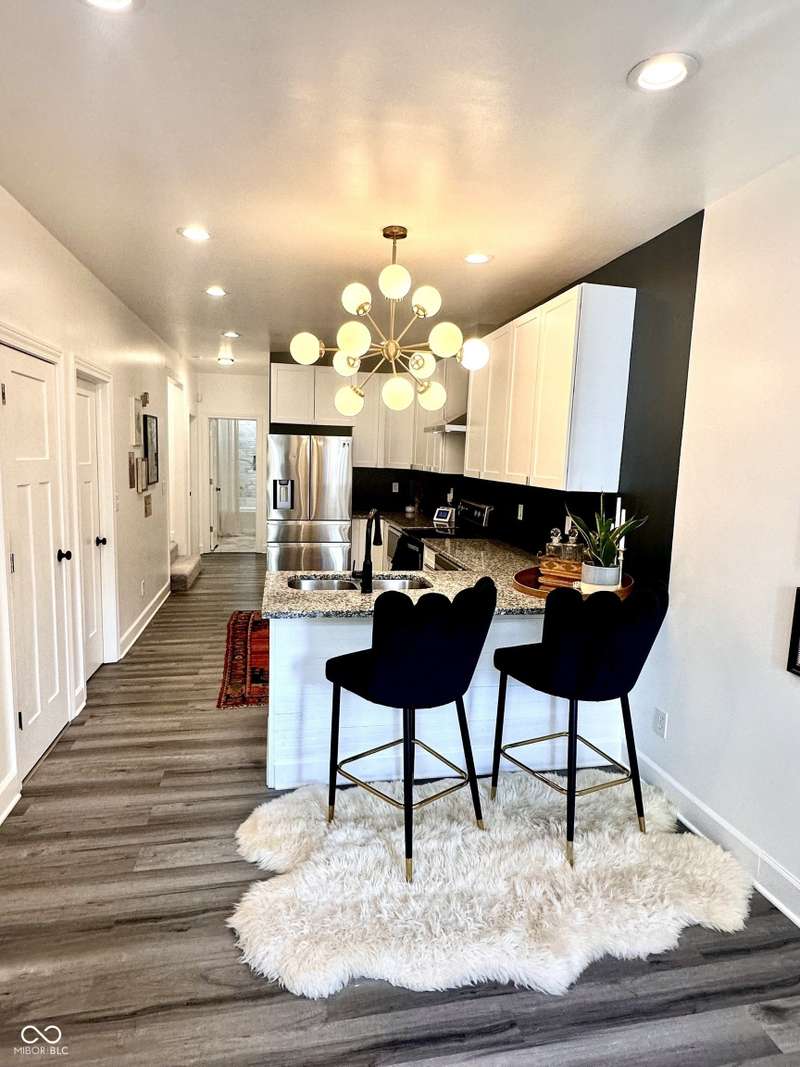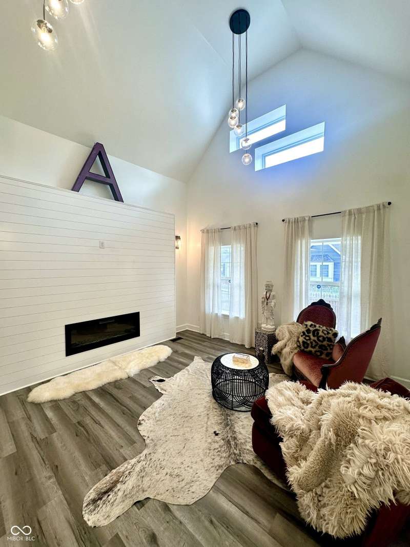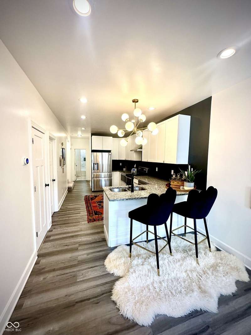 FULLY RENOVATED in 2022! This stunning 2 bedroom, 2 bath home in the heart of Holy Cross offers the perfect blend of historic charm and modern luxury. Originally built in 1900, it was completely rebuilt from the studs out, giving you the peace of mind of a brand-new home while enjoying the character of this revitalized neighborhood just minutes from downtown Indy. With 1,850 sq. ft. of living space, this two-story residence features soaring ceilings, an open floor plan, and designer finishes throughout. The inviting living room showcases an electric fireplace as its focal point and flows seamlessly into a chef's kitchen complete with stainless steel appliances, granite countertops, modern cabinetry, and LED lighting. The huge loft, complete with a wet bar, overlooks the living area and offers the perfect space for entertaining, a home office, or a second lounge. Both bedrooms are designed as private suites, each with its own beautifully updated bath. The primary suite is a true retreat with a spa-like bathroom boasting a walk-in tiled shower, separate soaking tub, dual vanities, and high-end finishes. The second bathroom is equally stylish and fully renovated with modern tile and fixtures. Additional features include newer HVAC, updated electrical, marble and waterproof vinyl plank flooring, and even a mounted TV that stays. Step outside to find a fully fenced backyard that provides privacy, space for pets, and the perfect spot for hosting summer gatherings. The curb appeal shines with a welcoming front porch that invites you to sit and enjoy the neighborhood vibe. Living here means being able to walk or bike to Mass Ave, Bottleworks District, Highland Park, restaurants, breweries, coffee shops, and local hotspots. Whether you're looking to relax at home, entertain in style, or embrace the vibrant city lifestyle, this property checks every box. Completely move-in ready, turn-key, and brimming with character, this is the downtown dream you've been waiting for!