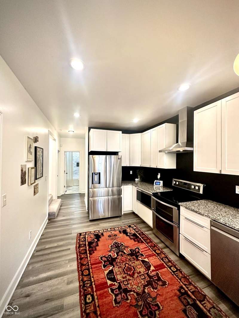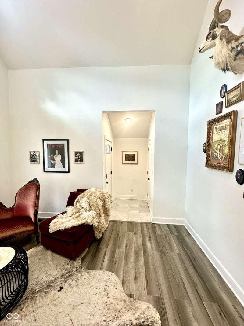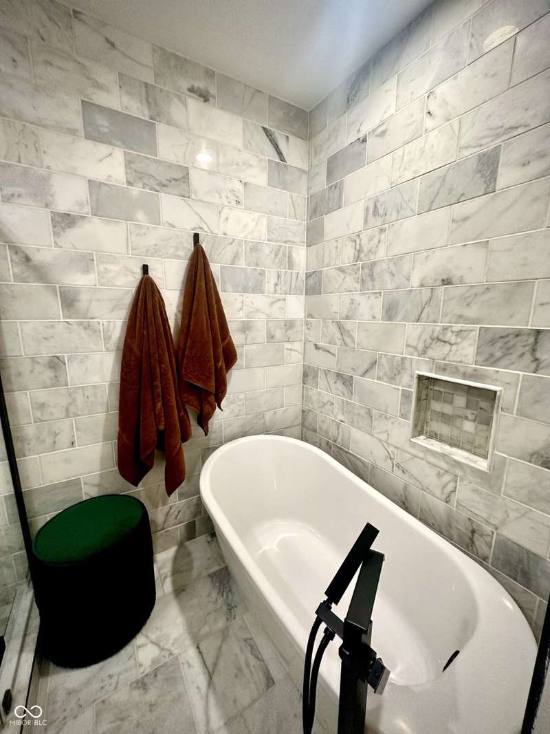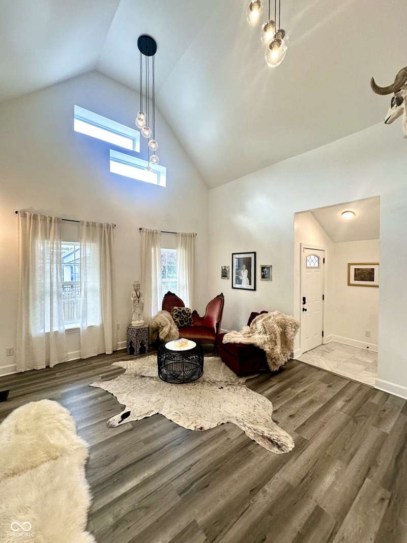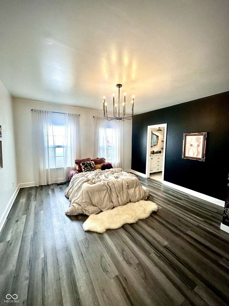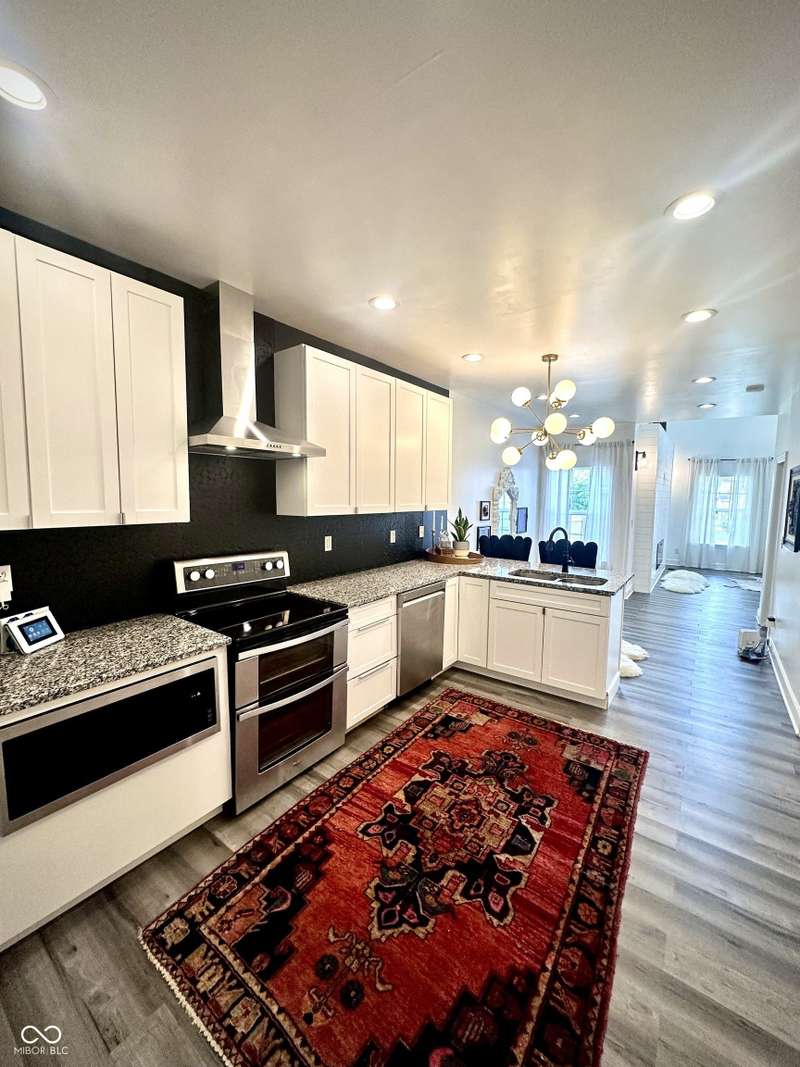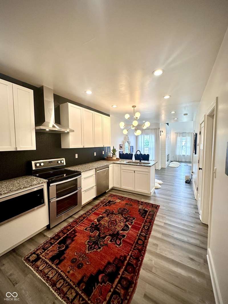 FULLY RENOVATED in 2022! This stunning 2 bedroom, 2 bath home in the heart of Holy Cross offers the perfect blend of historic charm and modern luxury. Originally built in 1900, it was completely rebuilt from the studs out, giving you the peace of mind of a brand-new home while enjoying the character of this revitalized neighborhood just minutes from downtown Indy. With 1,850 sq. ft. of living space, this two-story residence features soaring ceilings, an open floor plan, and designer finishes throughout. The inviting living room showcases an electric fireplace as its focal point and flows seamlessly into a chef's kitchen complete with stainless steel appliances, granite countertops, modern cabinetry, and LED lighting. The huge loft, complete with a wet bar, overlooks the living area and offers the perfect space for entertaining, a home office, or a second lounge. Both bedrooms are designed as private suites, each with its own beautifully updated bath. The primary suite is a true retreat with a spa-like bathroom boasting a walk-in tiled shower, separate soaking tub, dual vanities, and high-end finishes. The second bathroom is equally stylish and fully renovated with modern tile and fixtures. Additional features include newer HVAC, updated electrical, marble and waterproof vinyl plank flooring, and even a mounted TV that stays. Step outside to find a fully fenced backyard that provides privacy, space for pets, and the perfect spot for hosting summer gatherings. The curb appeal shines with a welcoming front porch that invites you to sit and enjoy the neighborhood vibe. Living here means being able to walk or bike to Mass Ave, Bottleworks District, Highland Park, restaurants, breweries, coffee shops, and local hotspots. Whether you're looking to relax at home, entertain in style, or embrace the vibrant city lifestyle, this property checks every box. Completely move-in ready, turn-key, and brimming with character, this is the downtown dream you've been waiting for!