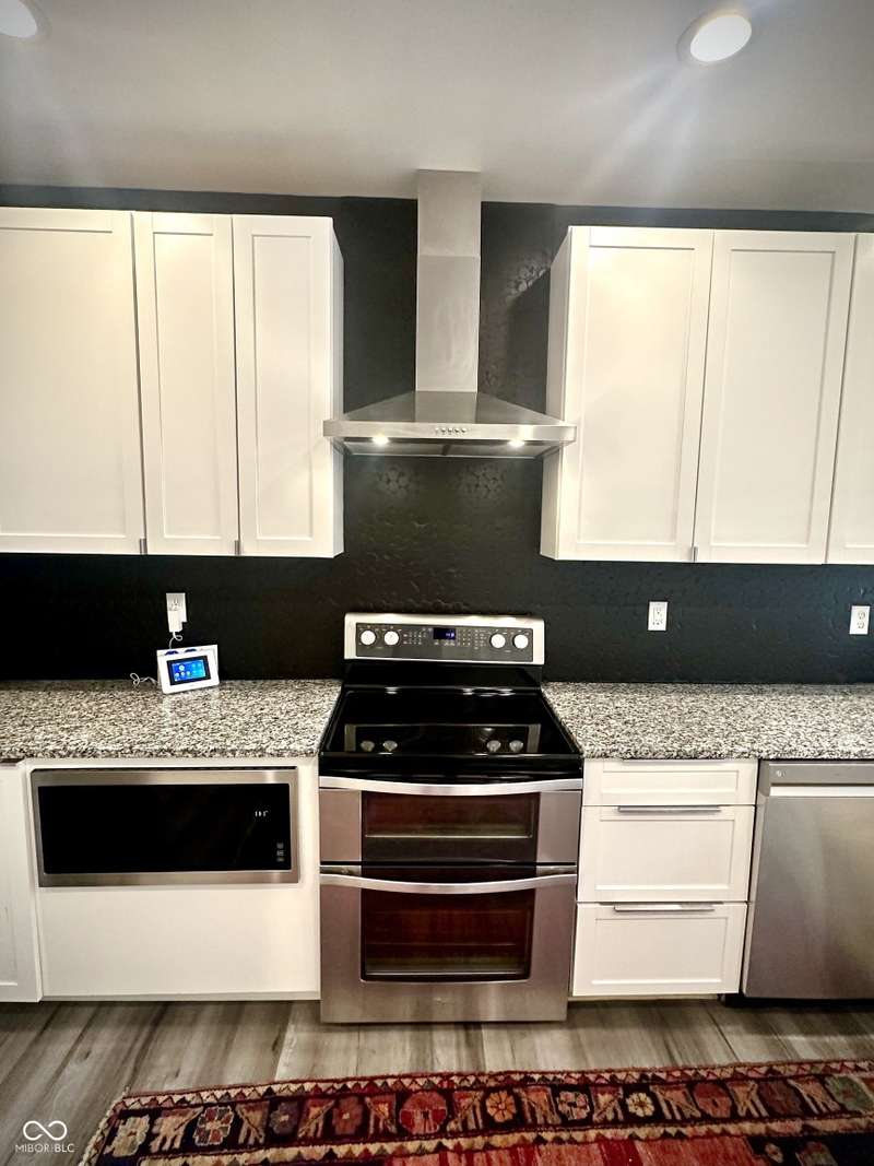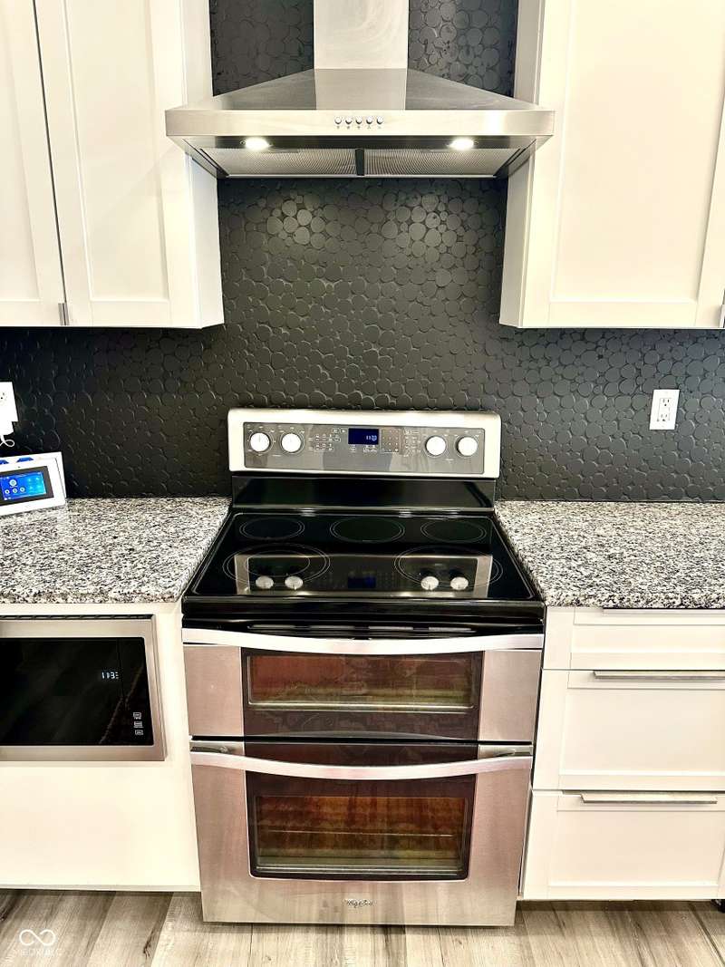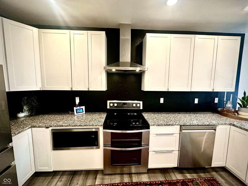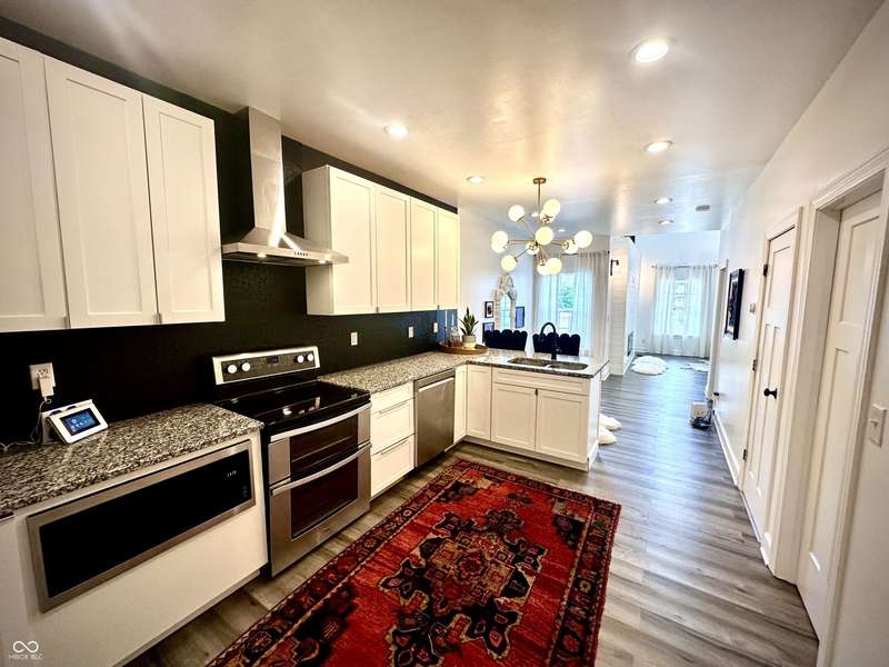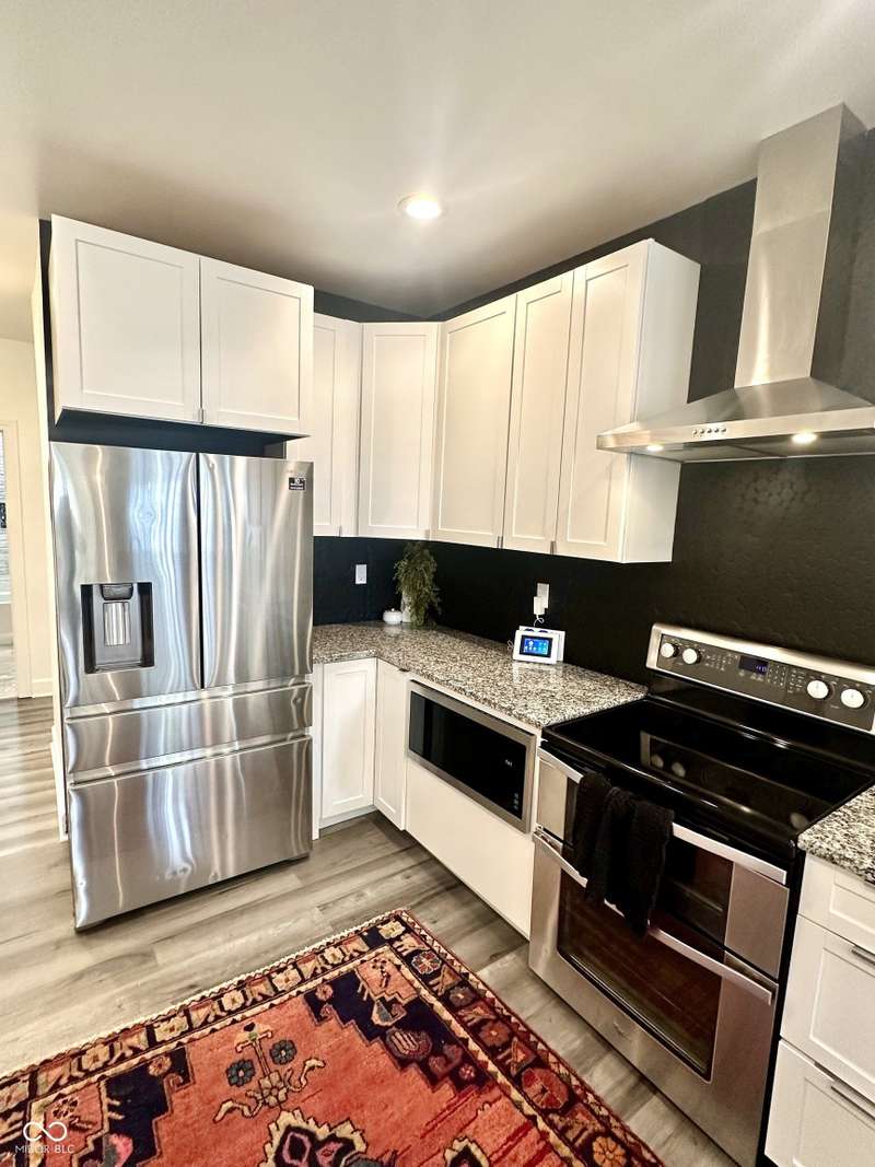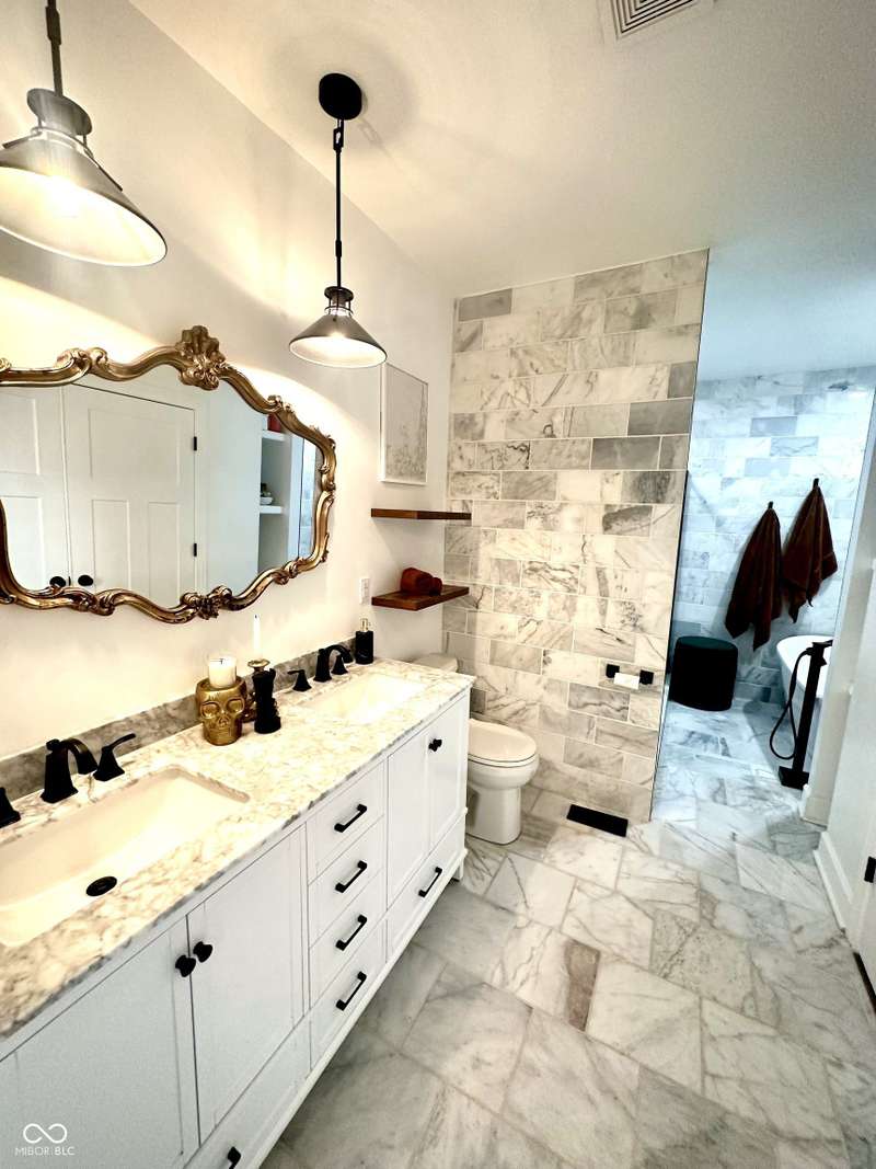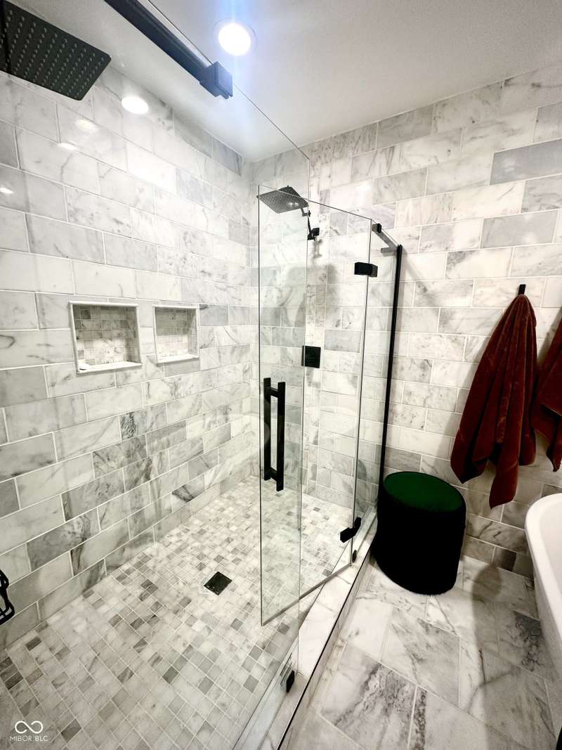 FULLY RENOVATED in 2022! This stunning 2 bedroom, 2 bath home in the heart of Holy Cross offers the perfect blend of historic charm and modern luxury. Originally built in 1900, it was completely rebuilt from the studs out, giving you the peace of mind of a brand-new home while enjoying the character of this revitalized neighborhood just minutes from downtown Indy. With 1,850 sq. ft. of living space, this two-story residence features soaring ceilings, an open floor plan, and designer finishes throughout. The inviting living room showcases an electric fireplace as its focal point and flows seamlessly into a chef's kitchen complete with stainless steel appliances, granite countertops, modern cabinetry, and LED lighting. The huge loft, complete with a wet bar, overlooks the living area and offers the perfect space for entertaining, a home office, or a second lounge. Both bedrooms are designed as private suites, each with its own beautifully updated bath. The primary suite is a true retreat with a spa-like bathroom boasting a walk-in tiled shower, separate soaking tub, dual vanities, and high-end finishes. The second bathroom is equally stylish and fully renovated with modern tile and fixtures. Additional features include newer HVAC, updated electrical, marble and waterproof vinyl plank flooring, and even a mounted TV that stays. Step outside to find a fully fenced backyard that provides privacy, space for pets, and the perfect spot for hosting summer gatherings. The curb appeal shines with a welcoming front porch that invites you to sit and enjoy the neighborhood vibe. Living here means being able to walk or bike to Mass Ave, Bottleworks District, Highland Park, restaurants, breweries, coffee shops, and local hotspots. Whether you're looking to relax at home, entertain in style, or embrace the vibrant city lifestyle, this property checks every box. Completely move-in ready, turn-key, and brimming with character, this is the downtown dream you've been waiting for!