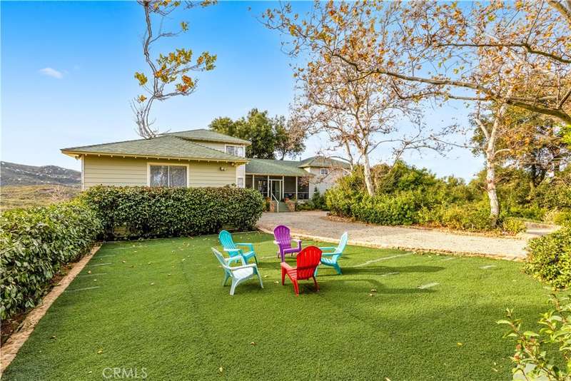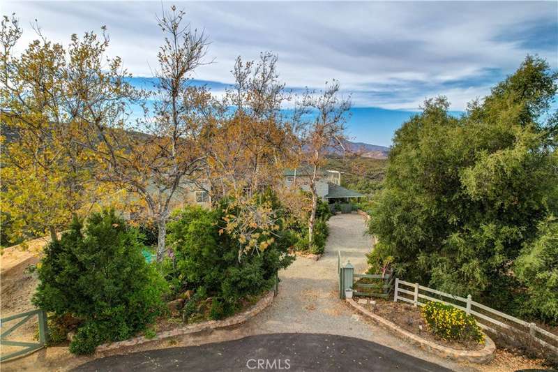 Nestled in the exclusive gated equestrian community of Rancho Capistrano, this stunning 3,900 sq ft custom-built ranch estate sits on a sprawling 2.36-acre street-to-street parcel, offering a seamless blend of luxury, functionality, & natural beauty. Designed, built, & owned by its visionary architect, the home features 5 bedrooms, 5 bathrooms plus office & includes a 1 bed/1 bath "granny flat" with a private entrance & 560 sq ft enclosed porch - ideal for multigenerational living or guests. The thoughtfully designed floor plan provides privacy with separate wings for the primary suite, which boasts sweeping hills and mountain views, & the guest bedrooms. The main level features an all-encompassing great room with a custom stone & rock fireplace plus a convenient bedroom & full bath. An 1,100 sq. ft. enclosed porch wraps the back of the home for ideal entertaining space & showcases a majestic central tree as well as stunning panoramic views of Santiago Peak, San Gorgonio, & San Jacinto mountains. A charming enclosed front porch is the perfect warm welcome to this quintessential county home. Located at the end of a cul-de-sac with a gated entrance & circular driveway, the property also includes a 2-car garage with a workshop/3rd car space & an additional separate drive access leading to a mid-level flat parcel, ideal for a pool and/or an ADU or even horse/small animal space. Further down, the lower-level area is perfect for developing a dedicated equestrian area with space for corrals, a tack room, or feed storage. You'll even find a garden space where you can grow your own fresh organic fruits & veggies for farm-to-table meals. Rancho Capistrano is an intimate community of just 133 homes set on 2+ acre homesteads, & its 3,000' elevation offers cooler temperatures, even an occasional winter snow dusting, & endless outdoor opportunities. Enjoy horseback & hiking trails, a clubhouse with tennis/pickleball, & basketball courts, a natural pond, a playground, & year-round community events. Surrounded by the Cleveland National Forest, the location provides a peaceful haven with convenient access to the Orange County coastline (35 min), Lake Elsinore (15 min), local ski resorts, & Temecula wine country, combining all of the best equestrian, outdoor, & luxury living. With low HOA dues & a rare combination of privacy, views, & endless potential, this ranch is a once-in-a-lifetime opportunity - your best life starts here! CAN BE SOLD FURNISHED OR UNFURNISHED.