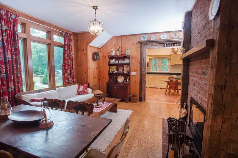 Enchanting Storybook Home - Fully Renovated & Move-In Ready This one-of-a-kind home has been impeccably renovated from top to bottom, offering timeless charm and modern convenience. Every detail has been thoughtfully curated, with no expense spared in perfecting this exceptional residence. From the moment you arrive, you'll be captivated by its character and craftsmanship. Inside, the home features rich pine walls, custom finishes, and beautifully designed living spaces. The dramatic cathedral-style living room is a true showstopper, with exposed wood beams, expansive wraparound windows, and a stunning floor-to-ceiling fireplace. The kitchen is equally impressive-designed for both form and function with top-tier materials that will inspire any home chef. The seamless indoor-outdoor flow leads to breathtaking outdoor living spaces. Enjoy multiple flagstone and brick patios surrounded by lush, professionally landscaped gardens-ideal for relaxing or entertaining. A classic cedar shake roof completes the fairytale aesthetic. This rare property effortlessly blends classic charm with high-end updates, offering beauty, comfort, and ease of living. Move-in ready and truly unforgettable-don't miss your chance to own this special home.This $1.2M+ renovation included all-new underground utilities, a 200-amp electric service with a 22K propane generator, new well with pressurized system, security alarm, septic system, and full interior gutting. Major upgrades featured new roof, windows, HVAC, plumbing, wiring, kitchen, bathrooms, and appliances. Additional work included basement waterproofing, red oak flooring, barn beams, custom cabinetry, insulation, lighting, landscaping, patio, and driveway improvements. Full list attached.