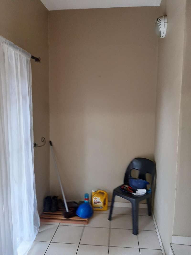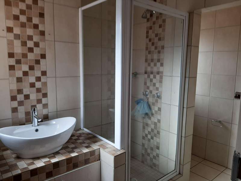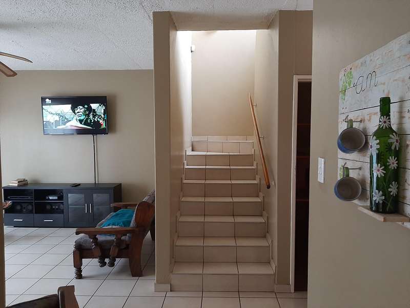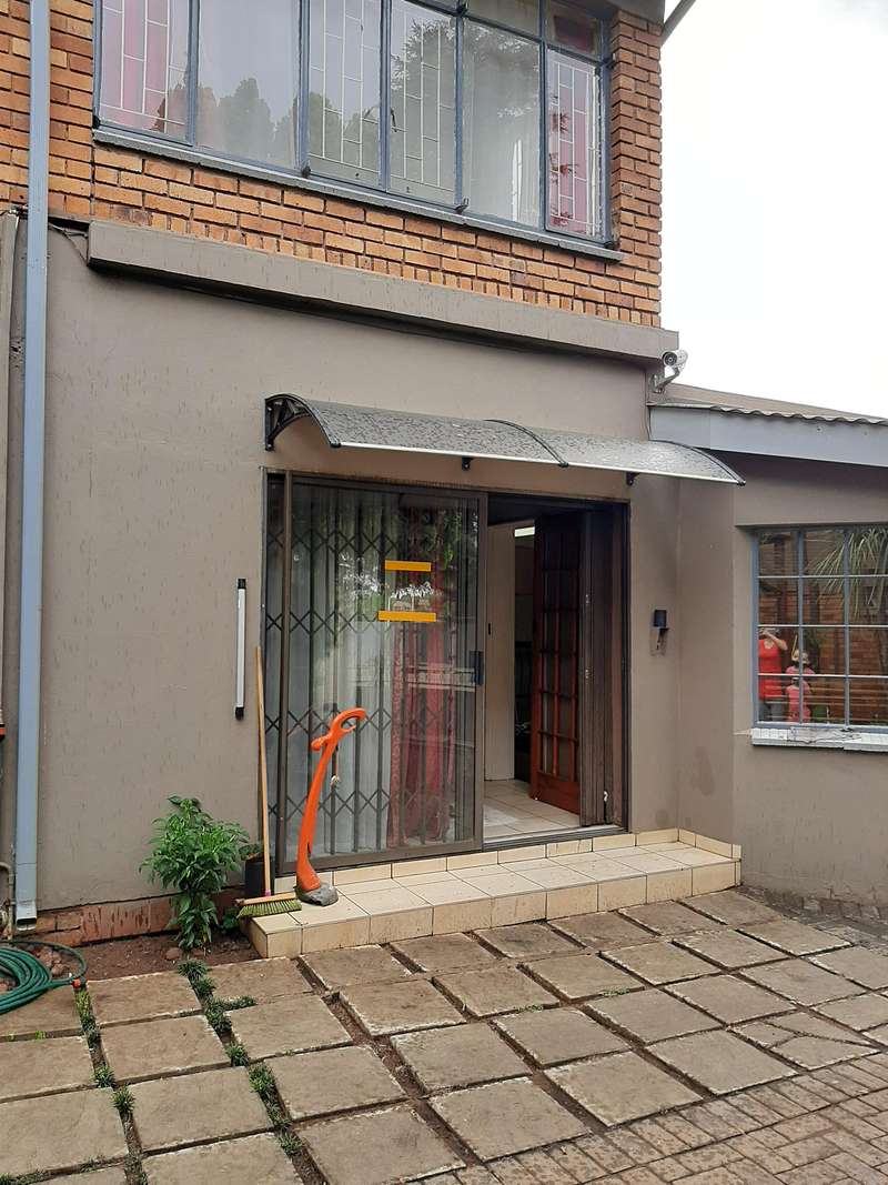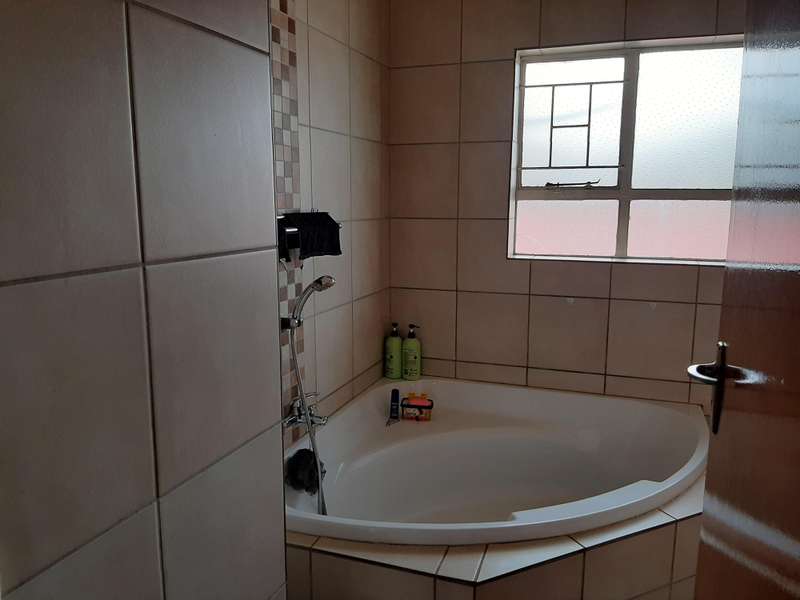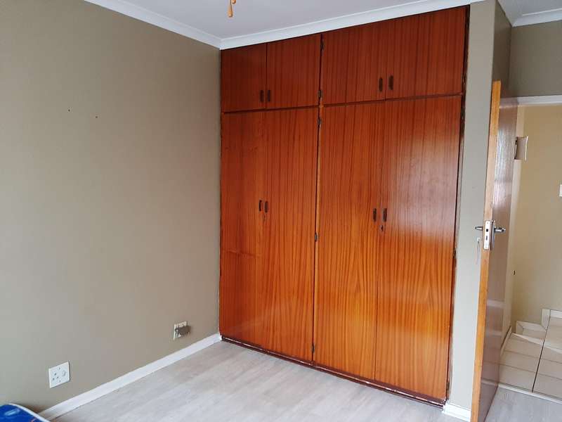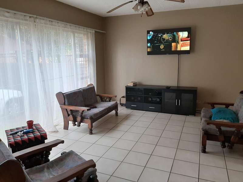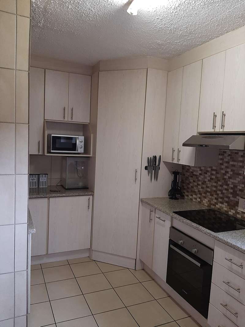 A beautiful 3-bedroom townhouse with 3 bathrooms is of the best quality! All the rooms and the living area are spacious and modern, and everything is under laminated wooden flooring. An open-plan lounge/dining room borders the kitchen, which is so attractive with many cabinets, a brand-new stove and oven with an extractor fan, and a large grocery cupboard. Spacious separate laundry/scullery with cabinets and ample space for, i.e., box freezers There is a very large study with desk and cabinets. Two exceptional modern bathrooms as well as a guest toilet and basin completes the picture. Carport parking for 4 vehicles, intricate alarm system with outside beams, CCTV cameras and screen. Facility to switch over from electric power to a generator (generator not included). Prepaid electricity. THIS IS AN ABSOLUTE WINNER!!