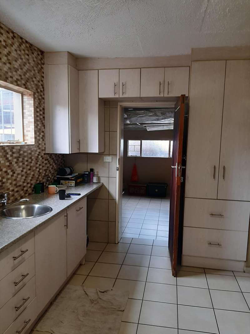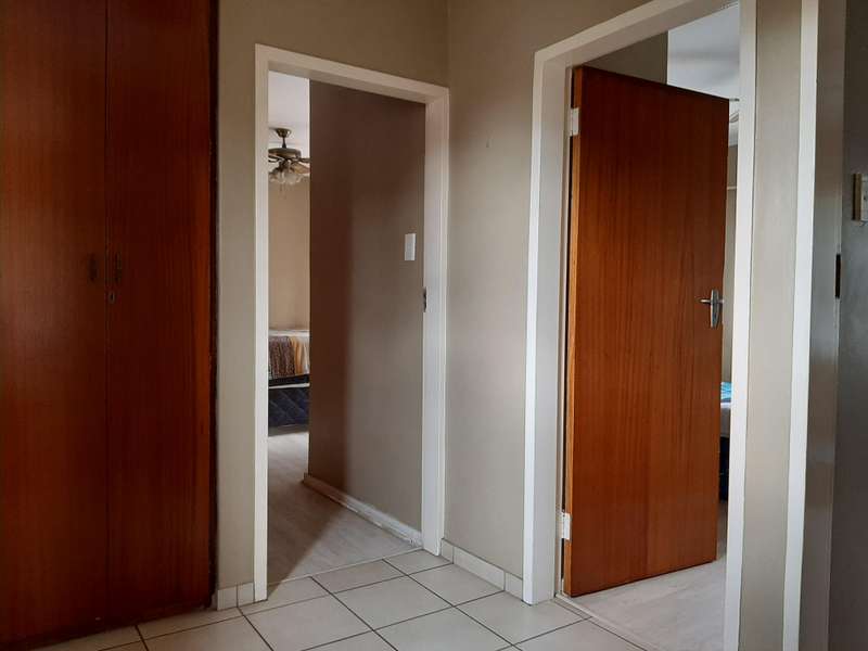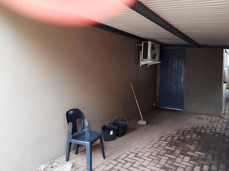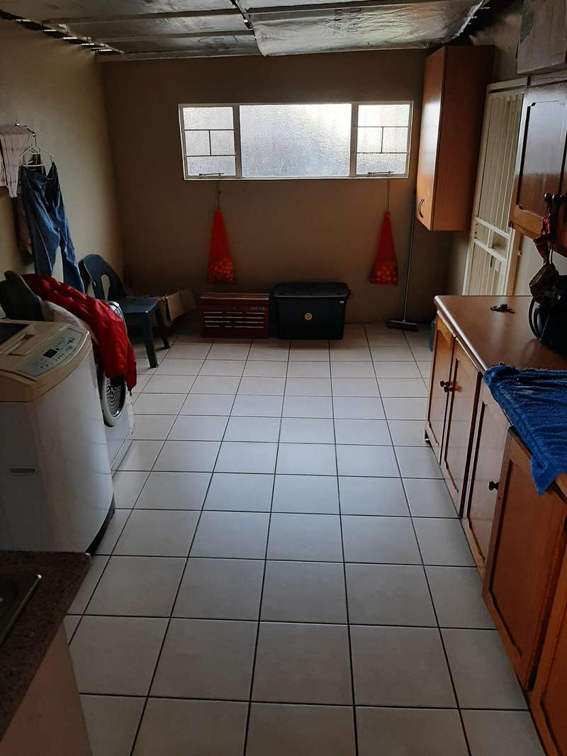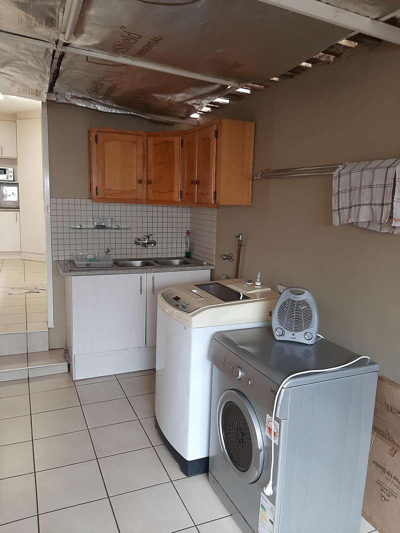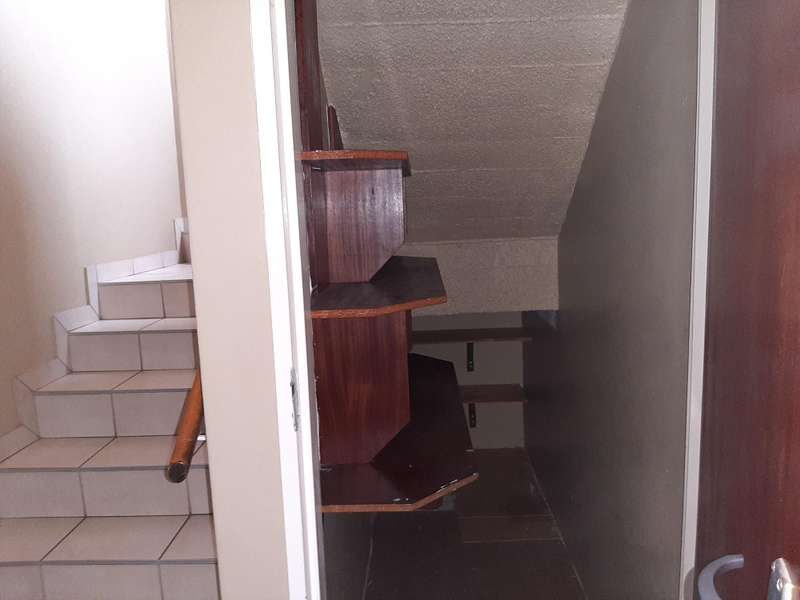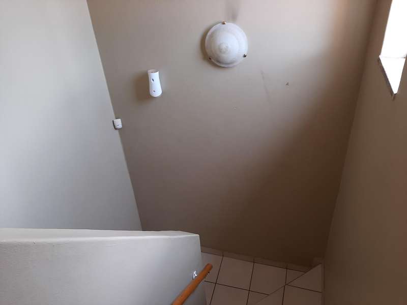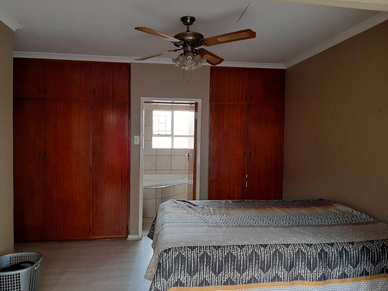 A beautiful 3-bedroom townhouse with 3 bathrooms is of the best quality! All the rooms and the living area are spacious and modern, and everything is under laminated wooden flooring. An open-plan lounge/dining room borders the kitchen, which is so attractive with many cabinets, a brand-new stove and oven with an extractor fan, and a large grocery cupboard. Spacious separate laundry/scullery with cabinets and ample space for, i.e., box freezers There is a very large study with desk and cabinets. Two exceptional modern bathrooms as well as a guest toilet and basin completes the picture. Carport parking for 4 vehicles, intricate alarm system with outside beams, CCTV cameras and screen. Facility to switch over from electric power to a generator (generator not included). Prepaid electricity. THIS IS AN ABSOLUTE WINNER!!