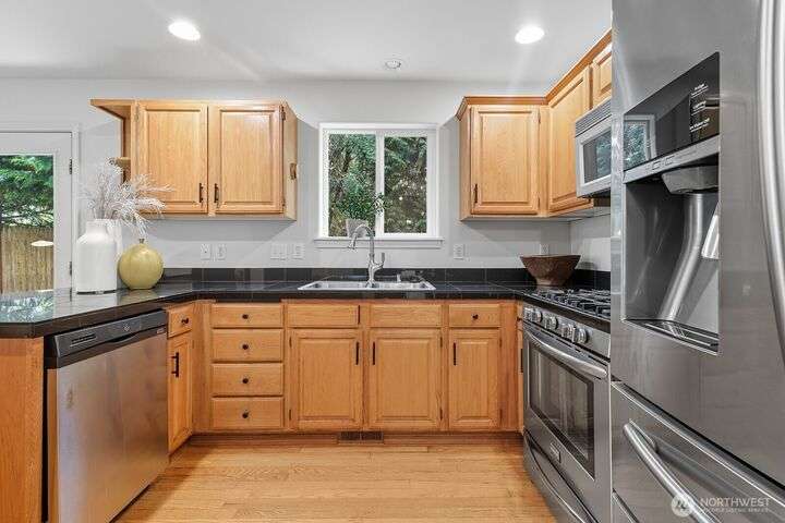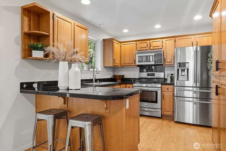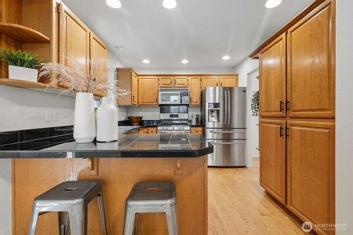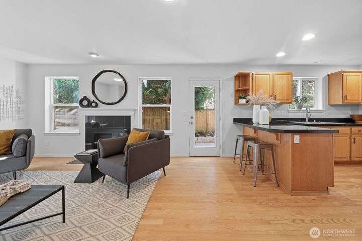Magnificent Mountlake Terrace home full to the brim with northwest charm. Loved and maintained beautifully with new interior and exterior paint, carpets and more. Enjoy the open and spacious main floor. Gorgeous hardwoods throughout. The living, kitchen dining area function flawlessly and flows out onto a brand new patio and garden. A private peaceful retreat or venue for gatherings. Upstairs family room landing is perfect for play or comfort. Large primary bedroom and bath invites rest and relaxation. Storage abound from the 2-car garage to the abundance of closets and cabinets. Conveniently located near parks, schools, and I-5 for easy commuting. Easy going HOA is hassle free. It's rare that a house so effortlessly feels like home.