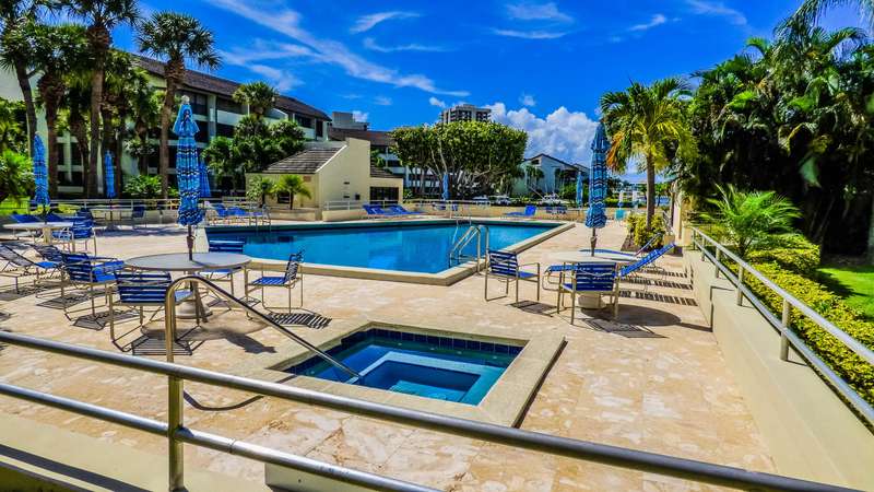 ALL CONDO INSPECTIONS COMPLETED. NO SPECIAL ASSESSMENTS. Rarely available in Old Port Cove, this stunning 4-bedroom, 4.5-bathroom townhome with a private BOAT SLIP offers a luxurious and spacious lifestyle. The large eat-in kitchen features an island and opens to a front private outdoor patio, perfect for relaxing. Enjoy a formal dining area and a generously sized living room for entertaining. The oversized study is equipped with custom-built cabinetry, ideal for work or leisure. Step outside to the patio with picturesque views of the Harbor Village marina and your very own boat slip. Each bedroom has its own ensuite bathroom. The master suite includes dual vanities, a walk-in shower, a soaking tub, and two walk-in closets. 1 assigned covered carport space and additional storage. NEW AC's