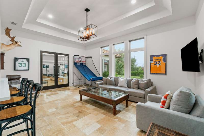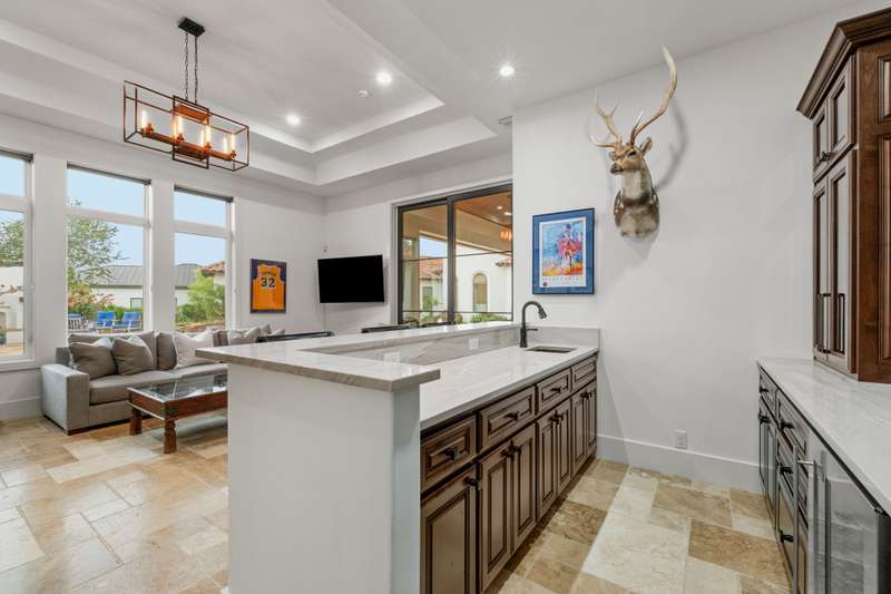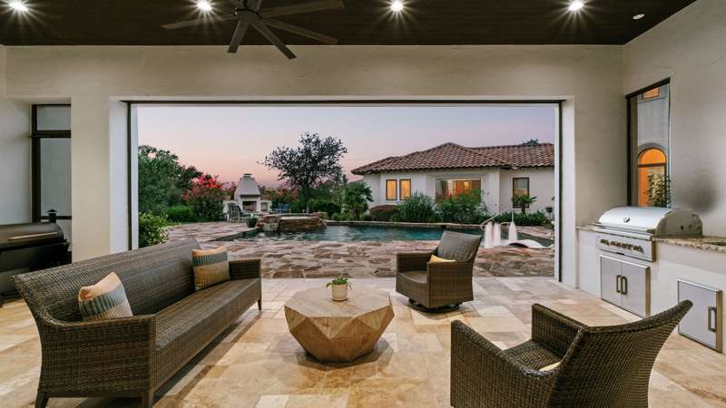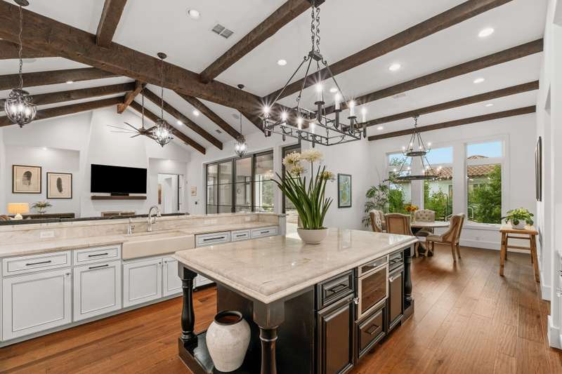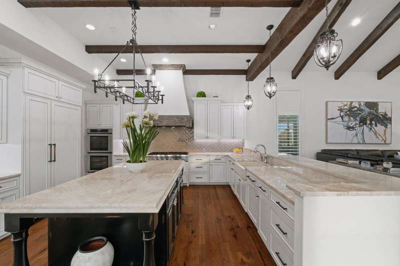 Welcome to luxury living in the prestigious gated community of The Huntington at Shavano Park. This exceptional estate, built by multi award-winning Burdick Homes, sits on a private, manicured 1-acre greenbelt lot designed for elegant entertaining and everyday resort-style living. The open-concept layout is anchored by a chef's kitchen featuring Taj Mahal quartzite countertops, professional-grade stainless steel appliances, custom cabinet paneled refrigerator, double ovens, pot filler, gas cooking, farm sink, custom soft close Amaya cabinetry, and an oversized walk-in pantry-all overlooking a spacious family room with soaring ceilings and wood beam accents. Step outside to a true backyard oasis with a covered patio, full summer kitchen, outdoor fireplace, and a luxurious Keith Zars pool and spa surrounded by pristine landscaping and breathtaking greenbelt views. The elegant primary suite offers a spa-like bath with an oversized walk-in shower, soaking tub, dual vanities, and custom-designed closet. Flooring includes custom rich hickory and French Oak wide plank hardwood flooring, casement windows with shutters and window treatments throughout, and a private safe room. A large secondary suite with ensuite bath and high ceilings on the main level provides privacy for guests or multigenerational living. Additional highlights include a dedicated pilates studio and gym with serene backyard views, a secondary living area with built-in bar which includes a Perlick wine refrigerator, an abundance of storage, and sliding glass doors lead to the pool/spa area. All of this in an unbeatable location just minutes from The Rim, the Rock at La Cantera, Fiesta Texas, and UTSA. KEY FEATURES: 5 Bedrooms, 4 1/2 bathrooms, 6,595 square feet, 3-car garage, 1.14 acre Private Greenbelt Lot, Keith Zars Pool & Spa, Outdoor Fireplace & Summer Kitchen, Home Gym/Pilates Studio. - 11/3/2025 3:15:13 AM