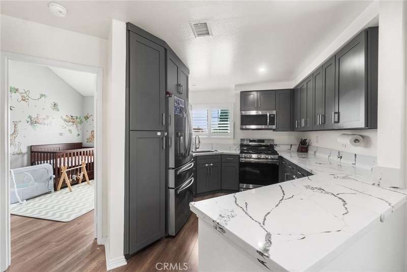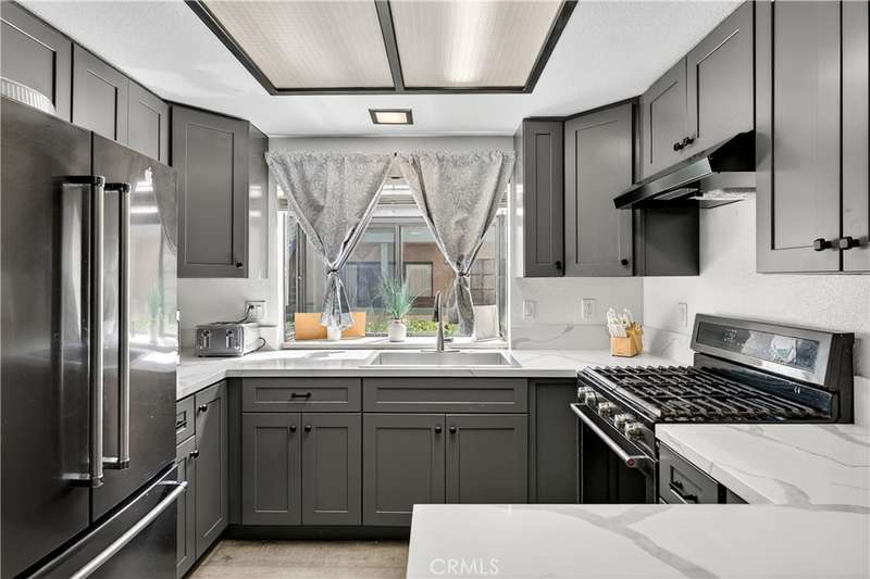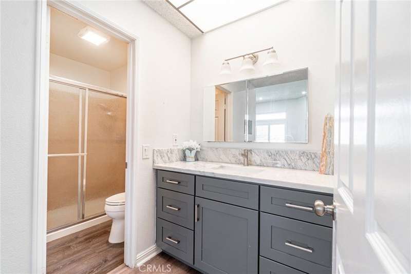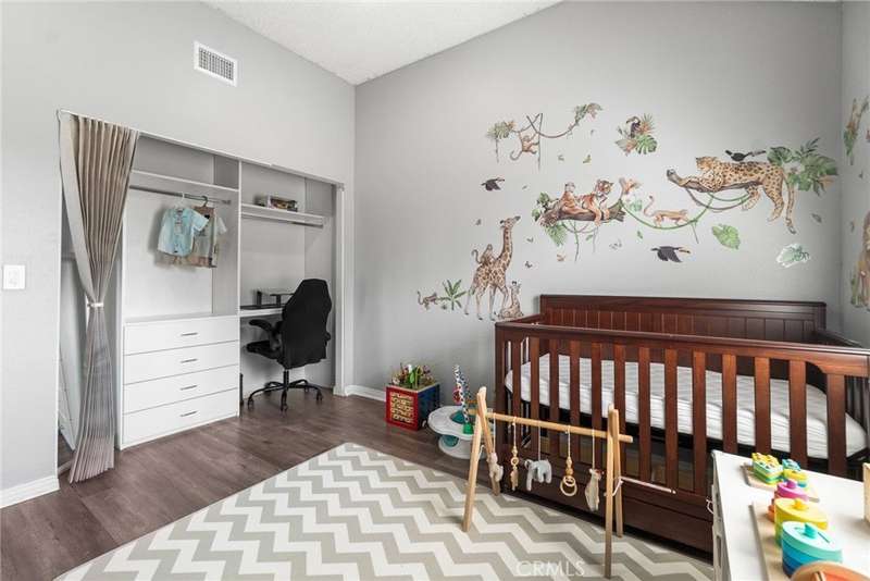 Price Improvement!!! Don't miss out Welcome to this beautifully upgraded 2-bedroom, 2-bath upstairs condo in the highly desirable gated Wellington Landing community. This home features over $70,000 in upgrades, including a remodeled kitchen, modern bathroom vanities, sleek vinyl flooring, designer lighting, and new custom closets in both bedrooms. Enjoy the convenience of a private 2-car garage with built-in storage, in-unit laundry, and recent system upgrades: new A/C, furnace, water heater, ducts, and UV-tinted dual-pane windows with upgraded shutters. Relax on the private zen-inspired patio or take advantage of community amenities including a heated pool, spa, and landscaped grounds, with a large park just across the street. Prime location near Disneyland, Knott’s Berry Farm, 99 Ranch Market, H Mart, and In-N-Out. Don’t miss this move-in ready home in one of the area’s most sought-after communities.