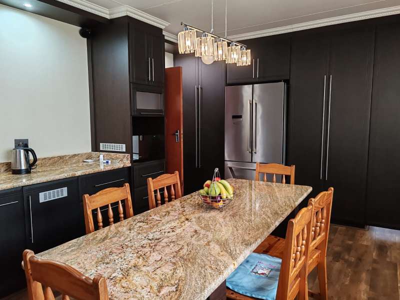 This 4 bedroom house is situated in a sought after area. Two of the rooms can also convert into a one bedroom flatlet with its own entrance and small kitchen. There is 3 bathrooms, 2 living areas and a study. The garage can accommodate 3 vehicles and there is also clean spring water on this property. This is a must see property. The property has a beautiful garden with a crystal clear pool. This is a nice family house. Call me now!
