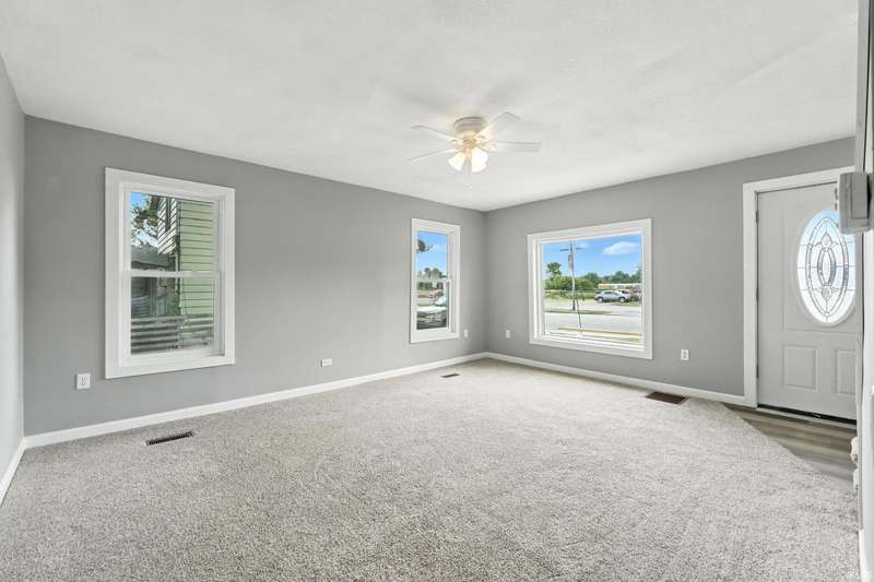 **OPEN HOUSE SUNDAY 9/28 1-3PM** Welcome to 615 E Main Street—where modern updates meet small-town charm. This beautiful home offers peace of mind with major upgrades including a brand-new roof, windows, front porch, and fresh paint throughout. Inside, you'll find all-new vinyl plank flooring, plush carpet, stylish light fixtures, and ceiling fans throughout the home. The main floor features a spacious bedroom, a fully updated bathroom with a tub, and a stunning new kitchen complete with brand-new cabinets, countertops, and appliances—including a washer and dryer. Upstairs, two generously sized bedrooms offer large closets and a built-in hallway shelving nook for added storage and character. A second renovated bathroom completes the upstairs. Enjoy your morning coffee on the new front porch or relax on the covered back patio overlooking the backyard with endless potential. Situated on the edge of town, you're just a short walk to the high school and local fun. Don’t miss your chance to own a fully updated home in a great location!