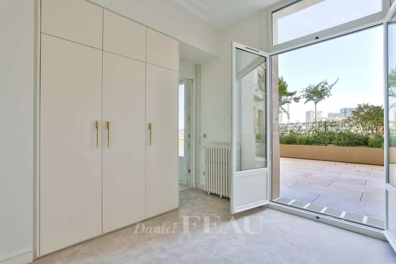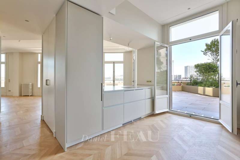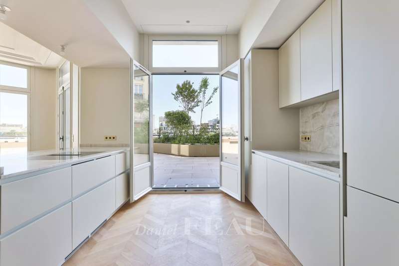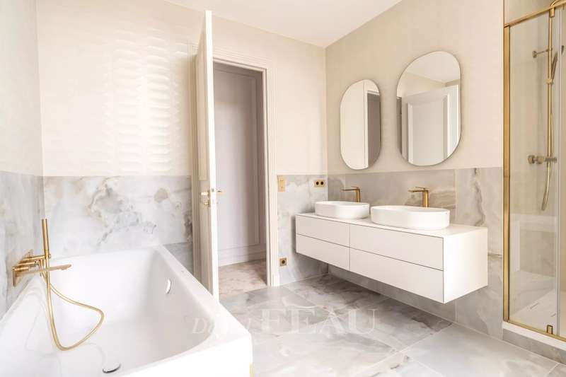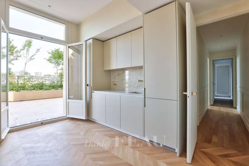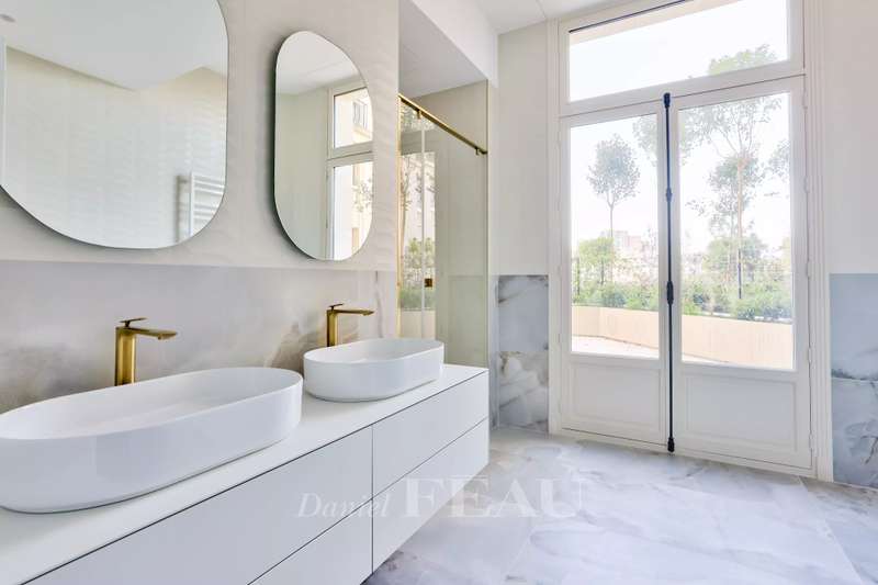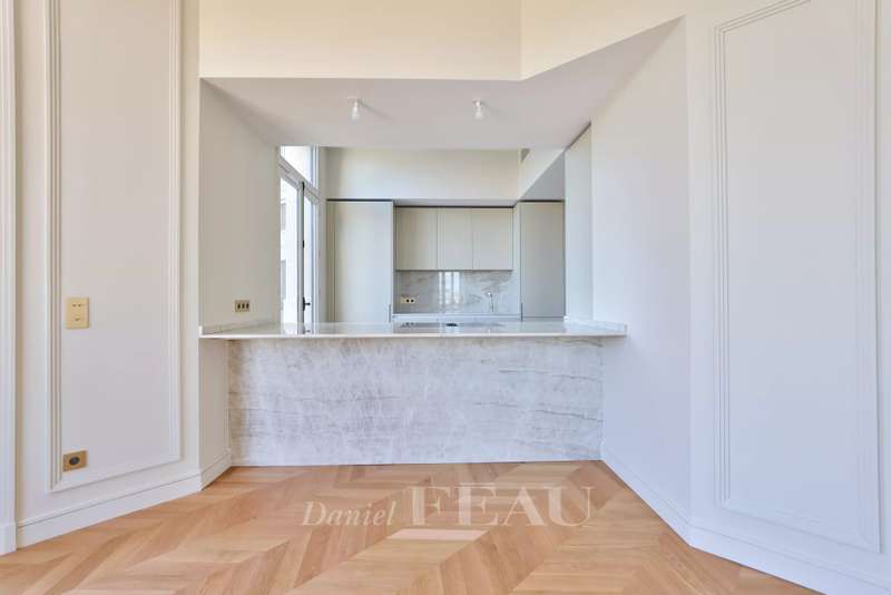 Rue Raynouard. This meticulously renovated two-room apartment is on the ground floor of an iconic 1930’s building located in the capital’s sought-after Passy Village neighbourhood. It offers 77 sqm of living space including a spacious living/reception room and dining room, an open-plan kitchen and two bedrooms. All residents benefit from numerous advantages including several fitted common areas, parking spaces (cars, motorcycles and bicycles), a DIY area, a gym, a carwash, and supplementary guest bedrooms which may be privatized. A luxurious pied a terre in the capital’s prestigious 16th District.