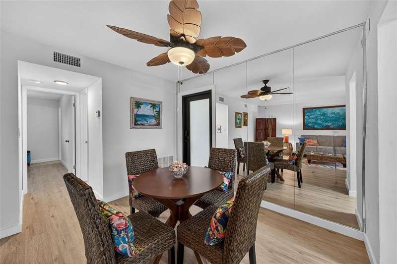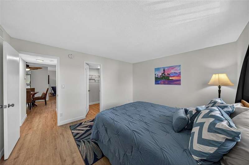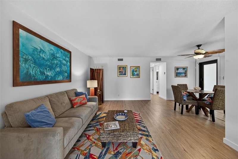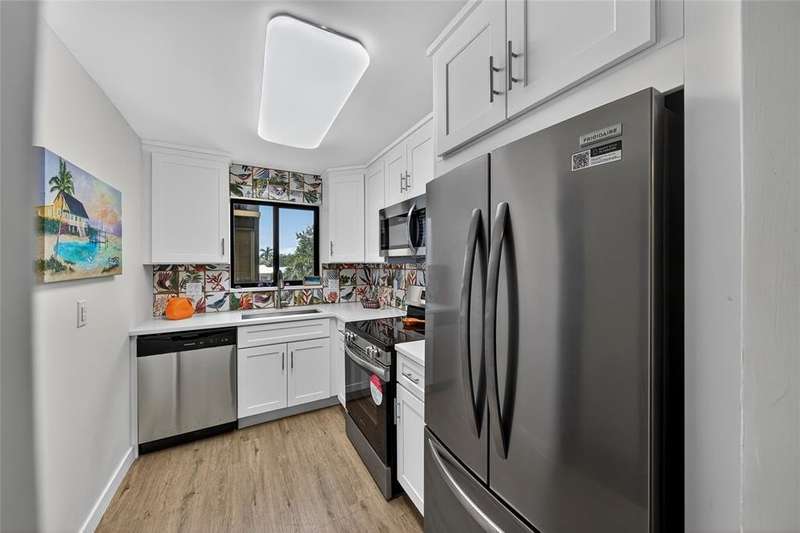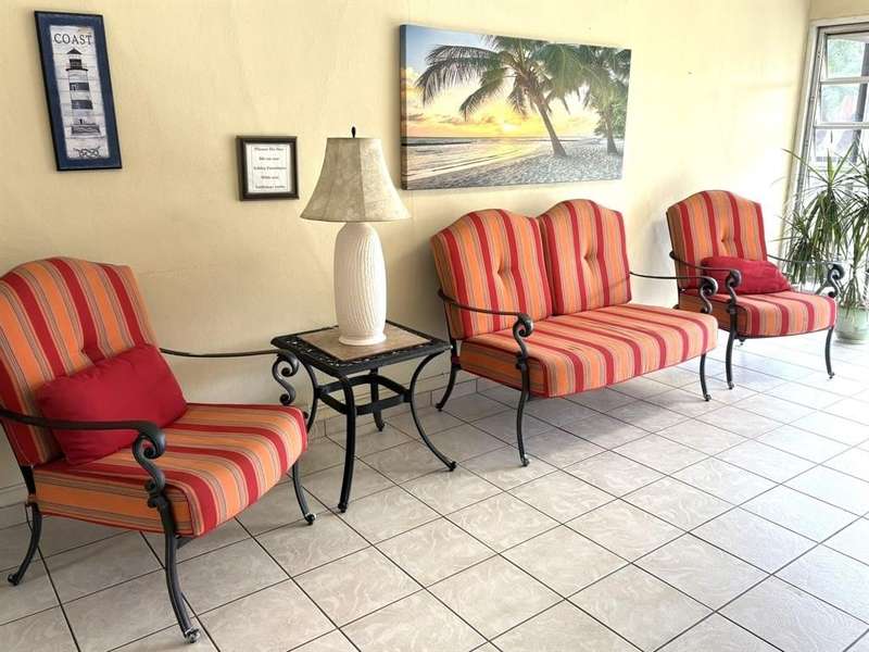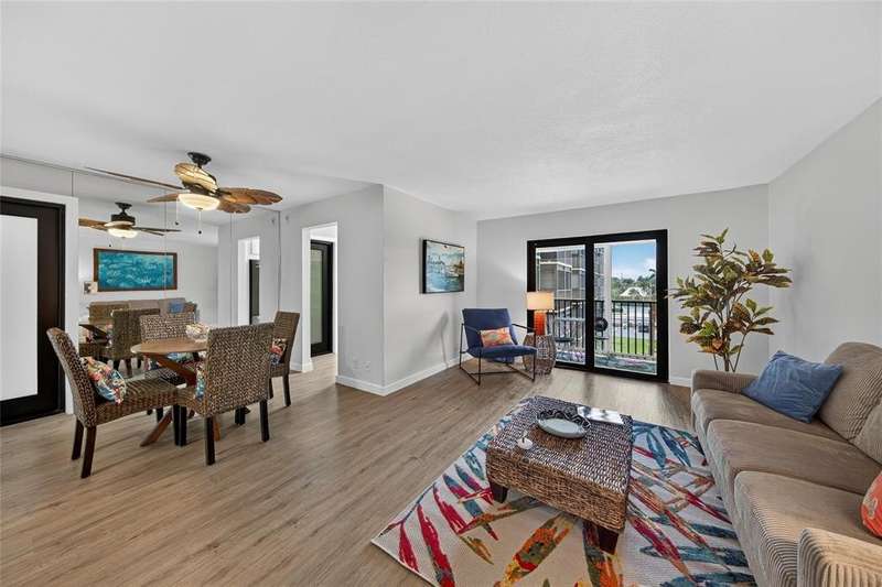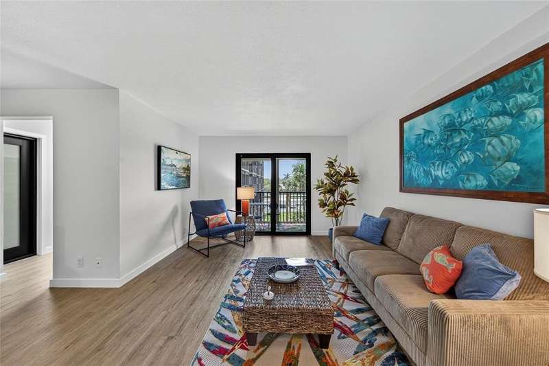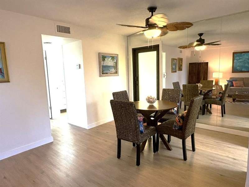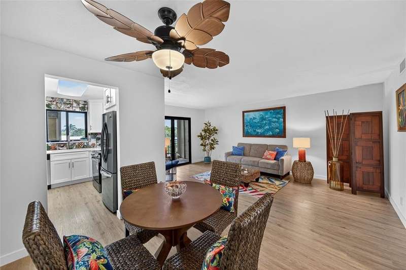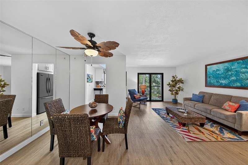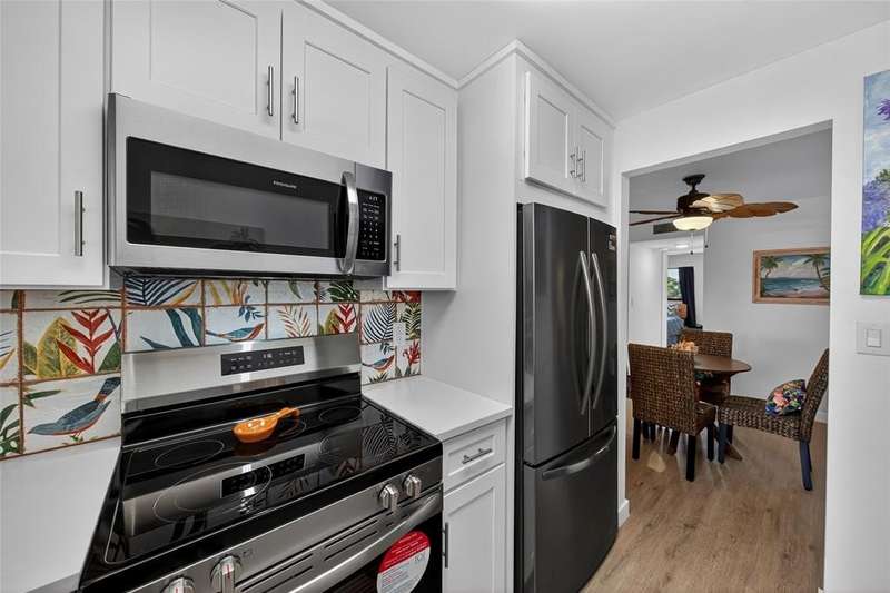JUST REDUCED $10,000!!! This beautifully renovated 1BR/1.5BA condo is just waiting for you. Kitchen updates include new wood cabinets, quartz countertops, stainless appliances, tile backsplash. Luxury Vinyl plank flooring throughout. Fresh paint throughout. Impact windows and doors. New A/C & HWH. Screened balcony overlooks the beautifully maintained grounds and pool and fountain feature. No pending assessments and passed the milestone. New roof 2023. Amenities include heated pool, clubhouse, putting green, room and more. Close to the beach, shopping, restaurants, golf, etc.
