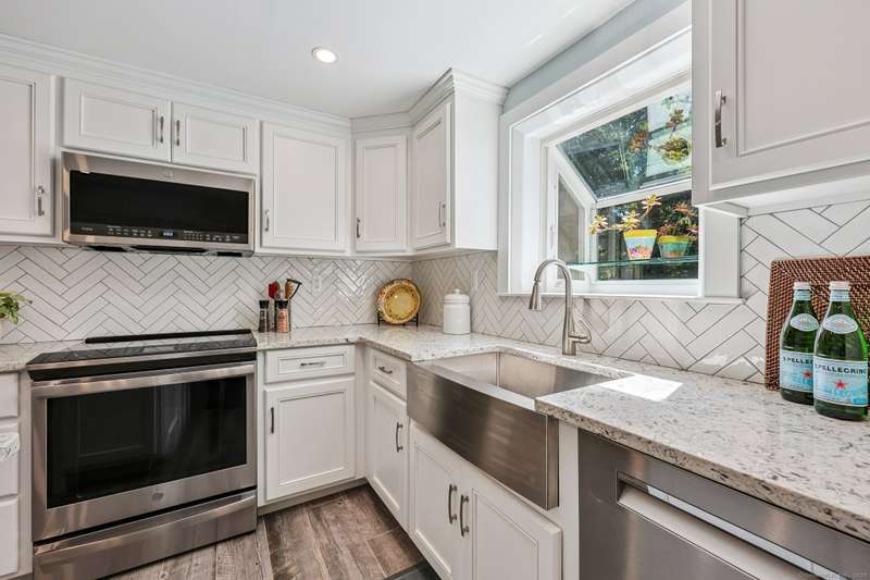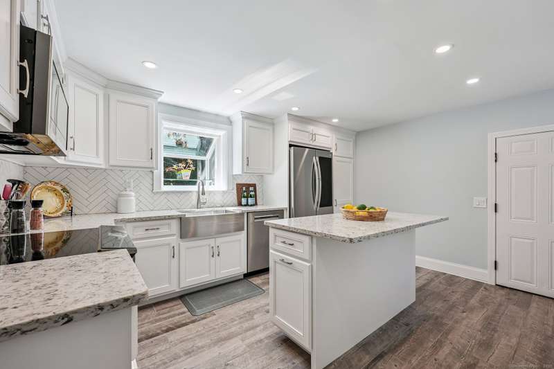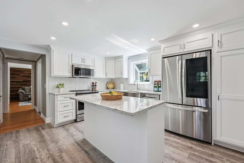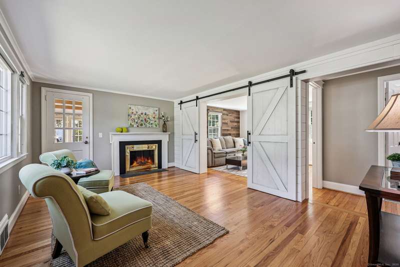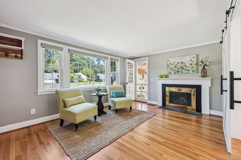 Step into this beautifully updated 2-3 bedroom, 2 bath cape, ideally located near town, restaurants, shopping, scenic hiking trails, and the CT River. With gleaming hardwood floors throughout and a long list of recent upgrades, this home offers the perfect blend of character and contemporary living. Interior Highlights: Stunning new kitchen featuring quartz countertops, stainless steel appliances, new cabinetry, and flooring. Cozy fireplaced living room opens to a versatile den with built-ins, recessed lighting, and a stylish sliding barn door - perfect as a home office or potential 3rd bedroom. Fully renovated full bath. Beautiful 3-season porch off of the living room - your new favorite spot to relax! Upstairs you'll find the primary bedroom with walk-in closet, a second bedroom, and a brand-new full bath Enjoy outdoor living on the stone patio-ideal for grilling or quiet evenings. Major exterior updates include new siding, roof, entry doors, and garage doors. EV charging station fo