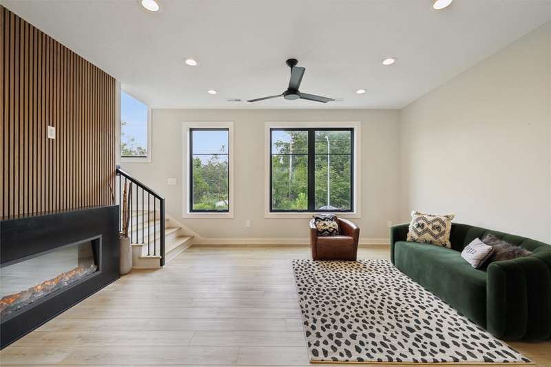Waterbury Commons Town Homes include a 9-year tax abatement (100% abatement for 6 years, then 75% in year 7, 50% in year 8 and 25% in year 9). The PITI payment, for a 6% interest, 80% loan, including the $275 HOA monthly dues, is approximately $3,296 per month. The 2 BR, 3 bath two-story plan has 1,672 SF. There is a 440 SF heated attached basement garage and a first-floor office. The second level has a half bath; living room with an electric fireplace; kitchen with quartz counters, waterfall island, GE Profile appliances including a gas cooktop and electric oven. The top level has 2 BRs, each with their own ensuite bathroom plus an upstairs washer and dryer. There is private second story composite deck. Two total pets (cats & dogs) are allowed. MidAmerican gas & electric bills have averaged about $100 per month. The $275 monthly homeowner dues include snow removal, lawn care, and exterior maintenance.