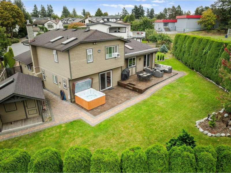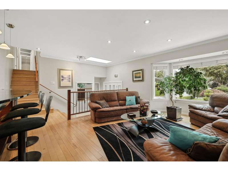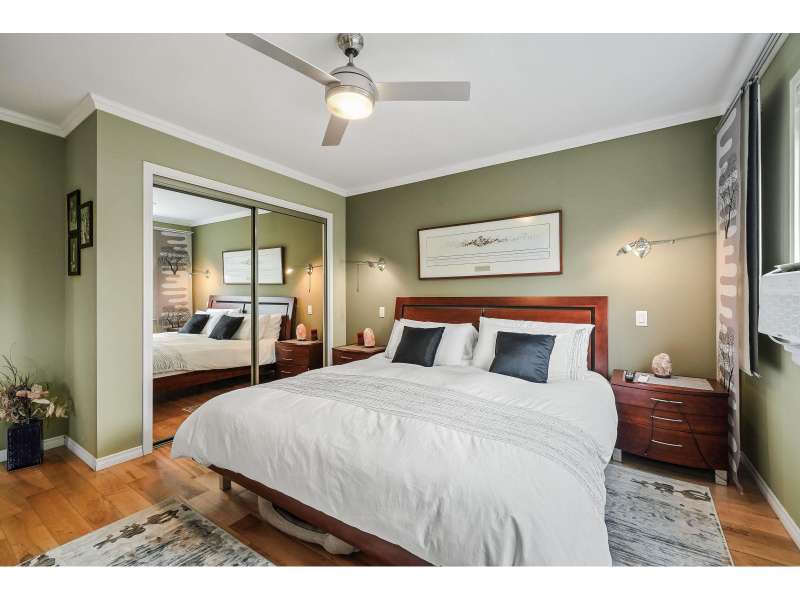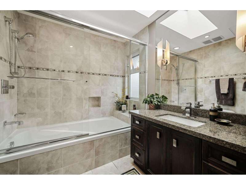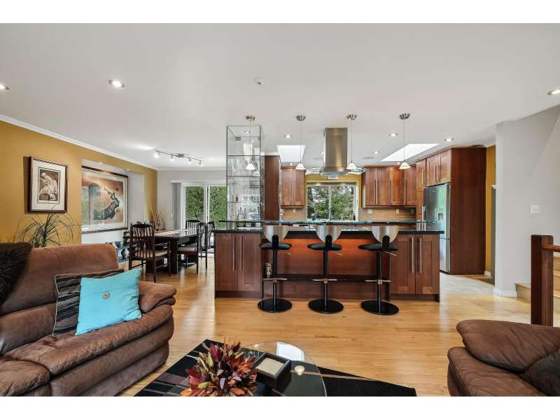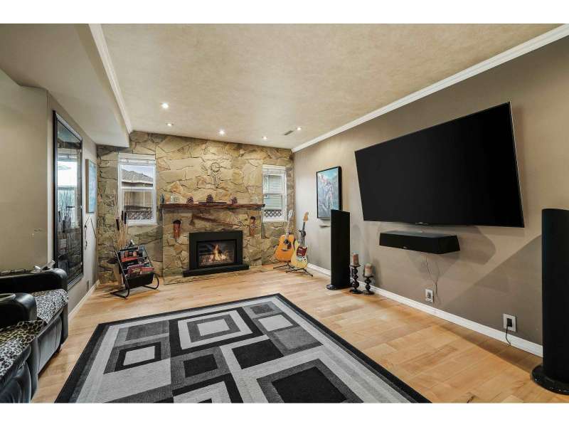 This is a stunning 3-level split home on a huge pie-shaped lot in a quiet cul-de-sac with a perfect location! The inviting, updated living space includes an amazing kitchen with island, bar and high-end appliances, seamlessly connected to a spacious family room and adjacent media room. With 3 bedrooms and 3 baths, it's perfect for a growing family. Features include hardwood floors throughout, heated tiles in the kitchen, baths, and laundry, plus a custom glass bar with elegant lighting. Additional highlights are a newer roof, central A/C, and EV charger. The oversized driveway fits 5-6 cars, along with a double garage. Enjoy the beautifully landscaped, private garden with hot tub, irrigation system, and remote-controlled awning-an exceptional retreat in a truly special setting. (id:58403)