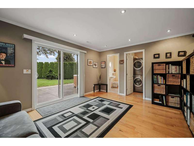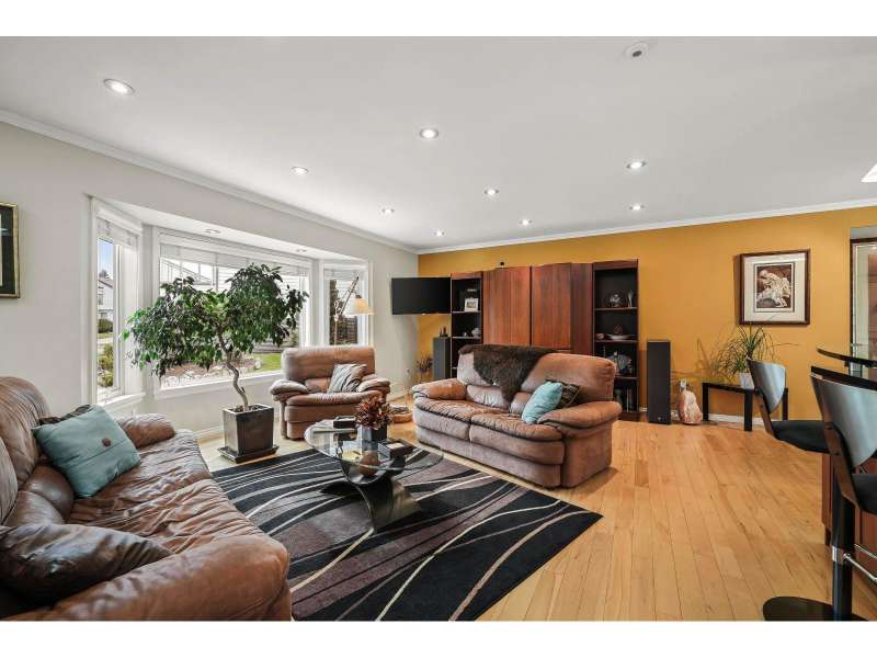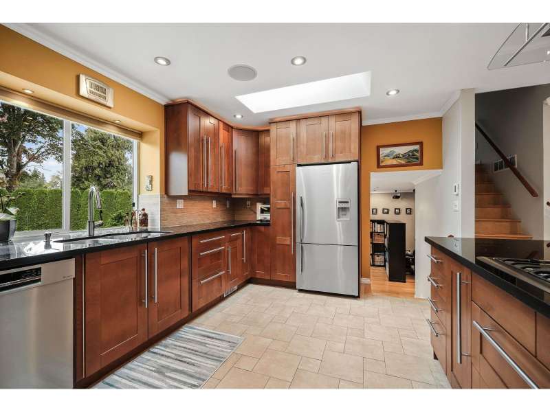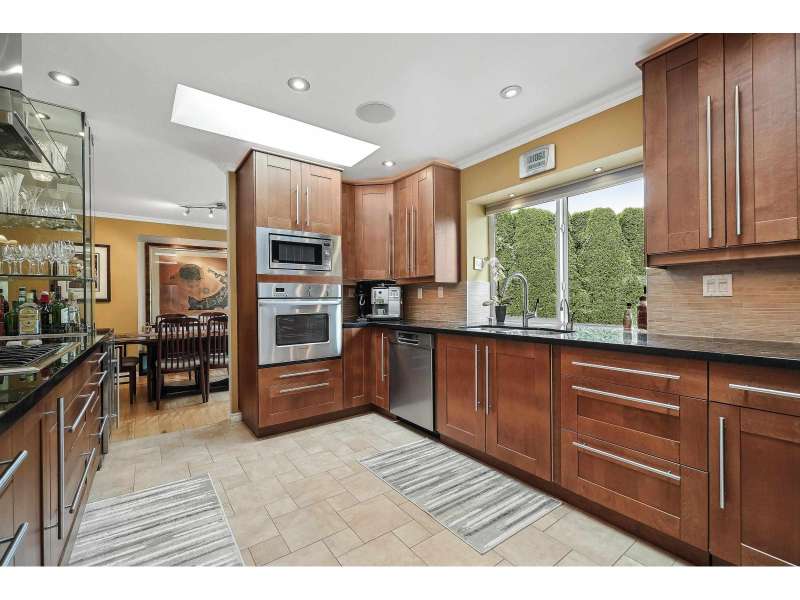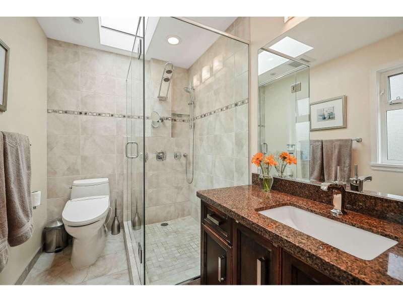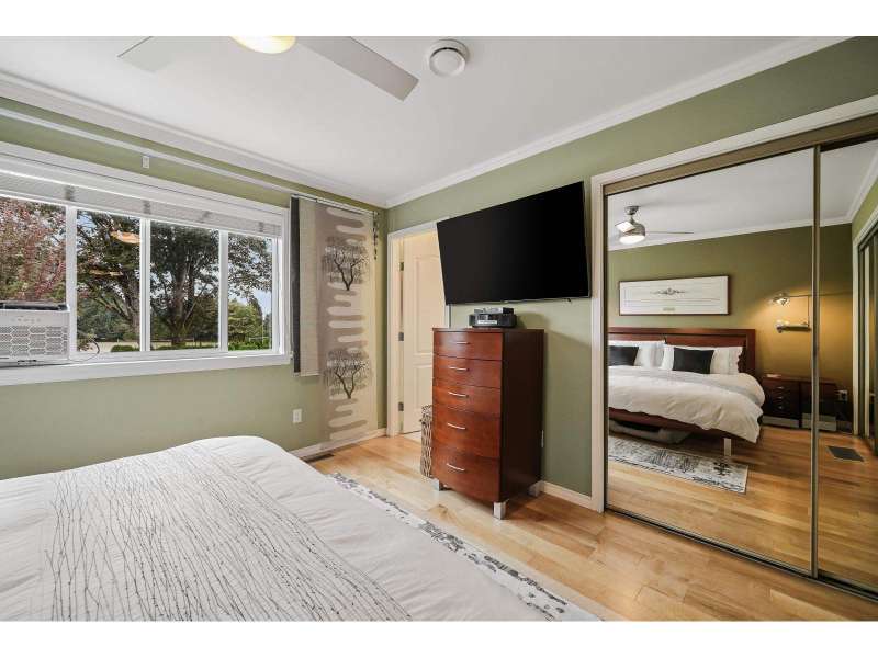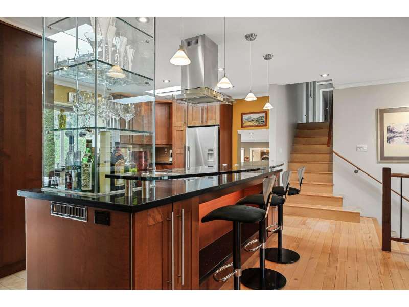 This is a stunning 3-level split home on a huge pie-shaped lot in a quiet cul-de-sac with a perfect location! The inviting, updated living space includes an amazing kitchen with island, bar and high-end appliances, seamlessly connected to a spacious family room and adjacent media room. With 3 bedrooms and 3 baths, it's perfect for a growing family. Features include hardwood floors throughout, heated tiles in the kitchen, baths, and laundry, plus a custom glass bar with elegant lighting. Additional highlights are a newer roof, central A/C, and EV charger. The oversized driveway fits 5-6 cars, along with a double garage. Enjoy the beautifully landscaped, private garden with hot tub, irrigation system, and remote-controlled awning-an exceptional retreat in a truly special setting. (id:58403)