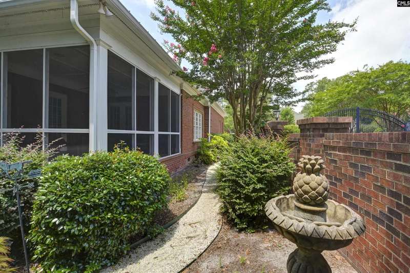 Welcome home to timeless craftsmanship & modern convenience. This stunning all-brick custom-built home sits gracefully on a corner lot in a small, gated community. From the circular driveway to the covered front entry with elegant tile flooring, every detail invites you in.Step through the grand marble-floored foyer & take in the high ceilings, rich heavy moldings, & oversized windows that flood the home with natural light. Just off the entryway, the formal dining room features gleaming hardwood floor - perfect for gatherings both intimate and grand.At the heart of the home is a chef's kitchen designed for both function & beauty. Tile flooring, countertops, & backsplash compliment top-tier appliances including a gas cooktop set in a large island with bar seating, double ovens, a stainless-steel double sink, & a built-in microwave, trash compactor & a convenient swing out pantry. The adjoining eat-in area offers a wine cooler, undercounter ice maker, sink, & upper cabinets with glass front doors. There is also access to the screened porch ideal for dining outdoors or just relaxing.The main level master is a true retreat complete with a private sitting area & access to the screened porch. The luxurious en-suite bath features dual vanities, a jetted tub, a separate tiled shower, a water closet, & spacious his-and-hers walk-in closets with custom built-ins. A second mail level bedroom includes hardwood floors & a private bath with a walk-in tiled shower. You will also find a well-appointed office with built-in shelving, gift wrapping platform & cabinets. A large laundry room with tile flooring, abundant cabinetry, & space for a full-size refrigerator. There is also a central vacuum system.Upstairs, two generously sized bedrooms provide space and comfort. The front bedroom shares a full bath with a tub/shower combo, while the back bedroom enjoys a private bath with a walk-in shower & access to walk-in attic storage. Both baths feature tasteful tile finishes.The oversized garage provides ample space for vehicles & storage. Outdoors, the fenced rear yard is supported by an automatic sprinkler system, making lawn care effortless & there is a tankless water heater Discla