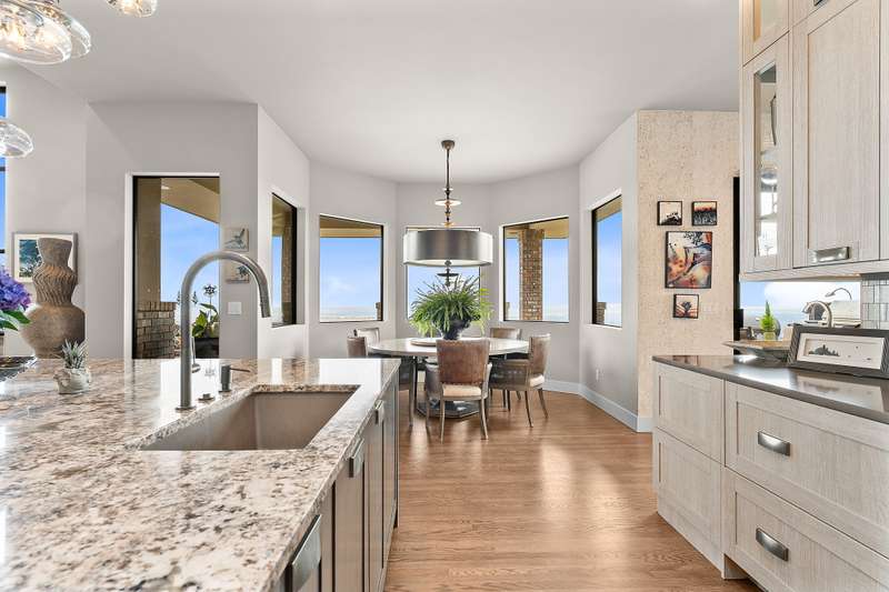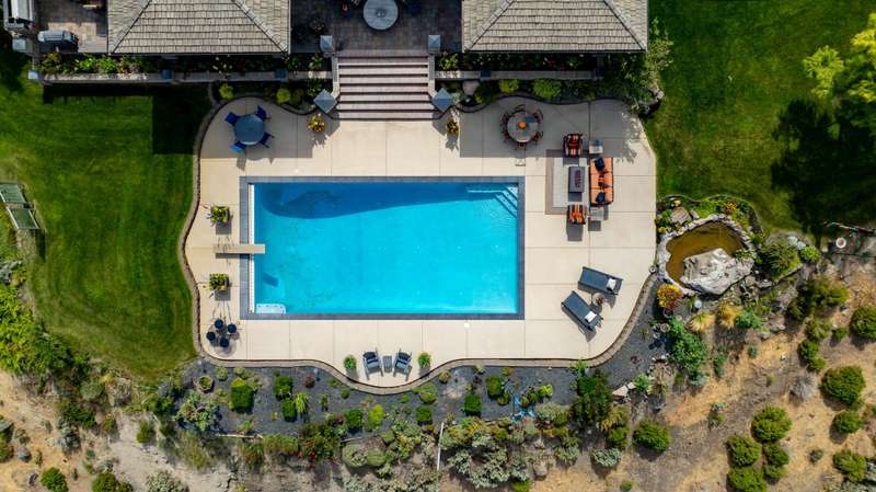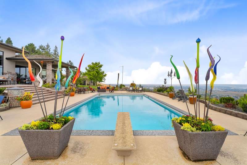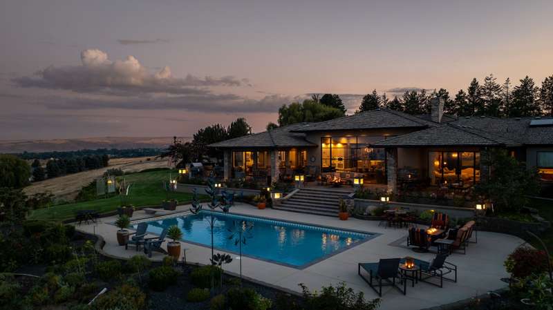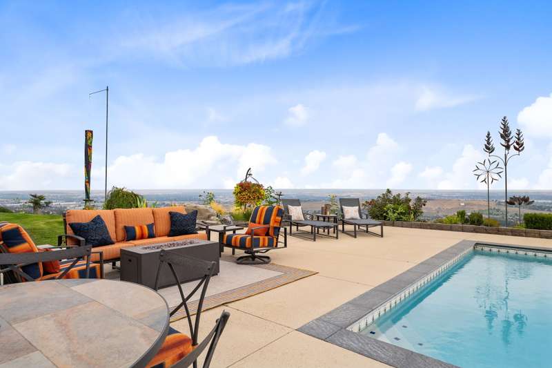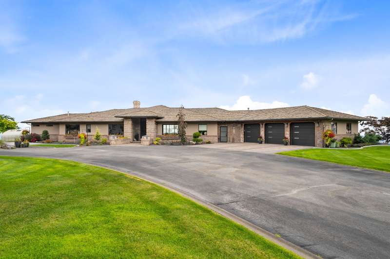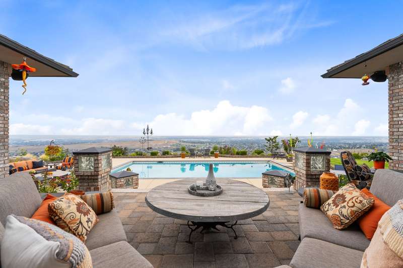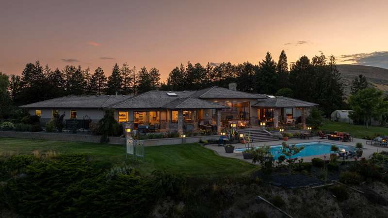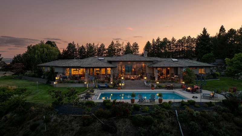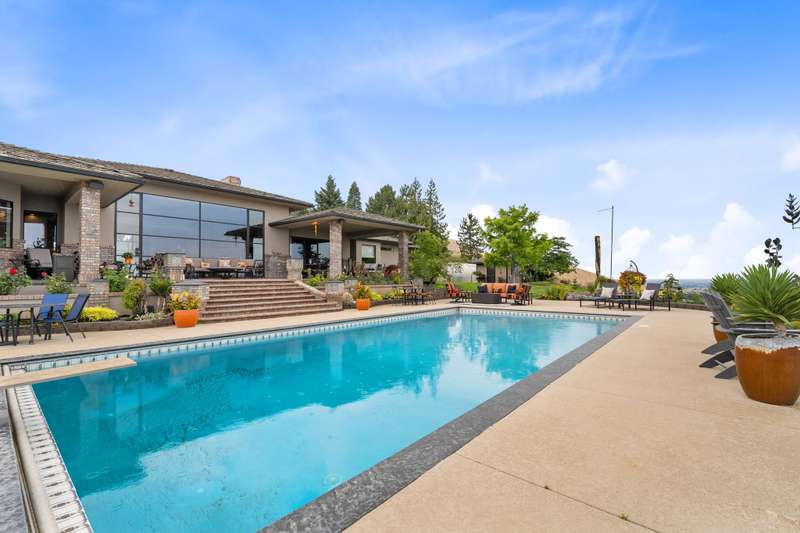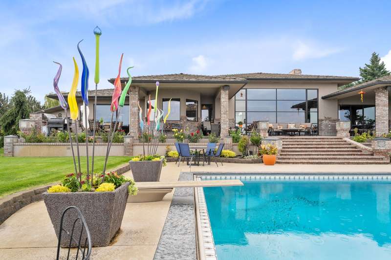 MLS# 286197 The only estate of its kind atop prestigious Badger Mountain, this extraordinary five-acre masterpiece offers breathtaking, unobstructed skyline views over the Tri-Cities—truly the pinnacle of luxury living.Welcome to 1276 N Bermuda Rd, Richland. This home is a seamless blend of refined craftsmanship and nature’s grandeur, with every room thoughtfully designed to frame stunning vistas that elevate daily living into an unparalleled experience. Step through imported Italian metal doors into a grand foyer bathed in light from a custom crystal chandelier, where your eyes are immediately drawn to sweeping skyline views. In the living room, integrated blinds descend at the touch of a button, offering privacy without compromising the view. The heart of the home is the kitchen outfitted with Miele appliances—including a built-in coffee maker, steam and convection ovens, induction cooktop, and custom-paneled refrigerator. This culinary sanctuary is designed for gourmet living. A spacious six-seat island invites intimate conversation, while a custom steel pantry door reveals a meticulously designed pantry that adds a sleek, modern touch. Nearby, a WhisperKool 150-bottle wine room and a full bar set the tone for effortless entertaining. From the window-lined dining nook to the formal dining room adorned with a designer Hinkley chandelier, every meal becomes a refined experience. A secondary family room offers space for games and gatherings, while the home office merges comfort and polished design with integrated blinds, paneled accent wall, and hidden king-size Murphy bed. A well-appointed hallway connects the powder bath, laundry room, and a spacious storage room, ensuring convenience and seamless flow. The primary suite is a true retreat, featuring panoramic skyline views and private pool access. Its spa-like bath includes radiant heated floors, slipper tub, steam shower, and dual vanities. An expansive walk-in closet completes this serene escape. The two secondary bedrooms are equally impressive, each showcasing spacious walk-in closets and lavish en-suite bathrooms. Completing this estate is an oversized three-car garage, offering ample space for vehicles and storage. The exquisitely landscaped grounds extend the home’s luxury beyond its walls, featuring an in-ground pool, inviting outdoor seating areas, and generous space for poolside relaxation. This remarkable estate embodies the rarest form of luxury—uninterrupted panoramic beauty paired with time