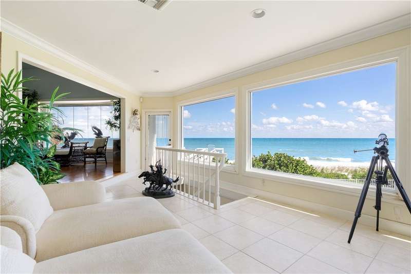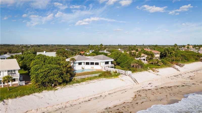 Magnificent oceanfront opportunity with beautiful broad beach frontage and panoramic ocean and beach views! One of the nicest oceanfront parcels in the Town of Indian River Shores. 160 feet +/- of ocean frontage! Over 7500 sq. ft. 5 bedroom, 6.5 bath home. Prepare to reimagine this exceptional property in lovely gated Village Shores. All dimensions are approximate and subject to verification.