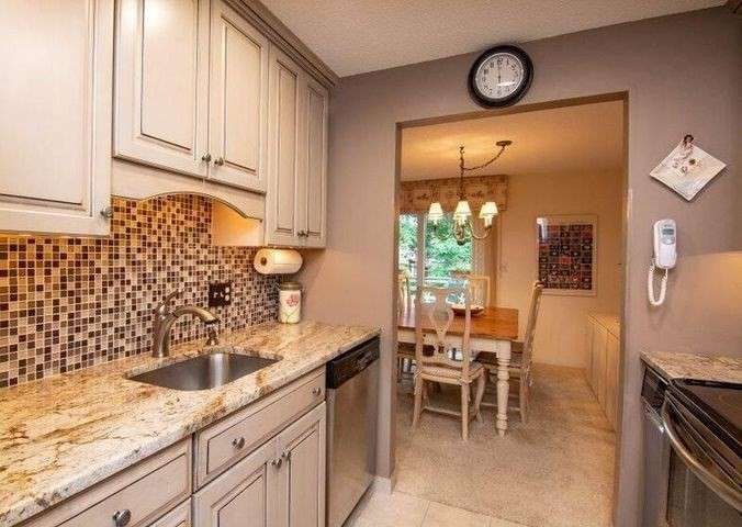 You will love this meticulously maintained three bedroom condominium in Falmouth Port. From the moment you step into the unit you will get a sense of calm. The front hall leads to a living room with views of the deck complete with views of trees and privacy. The living room has wall to wall carpet which is pristine. The double sliders and windows let in loads of natural light. The dining area is adjacent to the living room and has ample room for a large table for entertaining. The kitchen is renovated with granite, newer cabinets, recessed lighting, and stainless steel appliances. The den on this floor has a wood burning fireplace and is the perfect place for reading or relaxing. A half bath completes this floor. Upstairs there is a primary bedroom with tranquil views, en-suite bath and plenty of closet space. There are two other spacious bedrooms and another full bath. The finished basement is a walk out with sliders and has plenty of storage space and the laundry. Don't miss this op