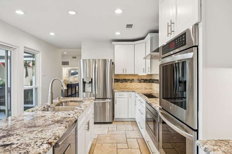 This extensively updated Prestonwood 3-bedroom, 2.5-bath home is a true gem, offering a perfect blend of modern luxury and exceptional outdoor living.Sophisticated, yet welcoming, this home has neutral colors throughout, plantation shutters and beautiful hardwood floors. The layout features a flexible and incredibly useful flex room that can effortlessly adapt to your needs whether it is best used as a 4th bedroom, a dynamic game room, or a cozy second living space.The heart of the home is the stunning, updated kitchen, which is a chef's delight. A magnificent wall of windows floods the space with natural light and provides a captivating view of the backyard paradise.Step outside to discover your personal resort. The backyard is an entertainer's dream featuring a sparkling pool surrounded by stylish hardscape and low-maintenance turf. Beyond the pool, you'll find a dedicated putting green for fun and practice, and 2 patios perfect for al fresco dining and outdoor entertaining. 2 car garage with epoxy floors and custom shelving. This home isn't just a place to live; it's a lifestyle upgrade.