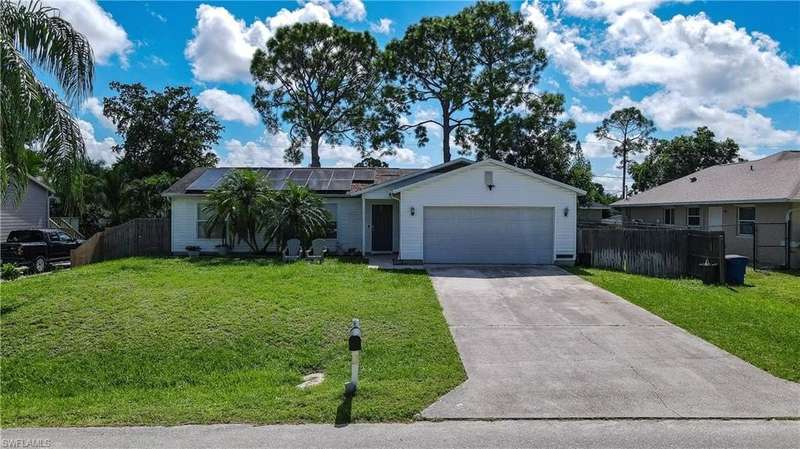 BRAND NEW ROOF IN PROGRESS!! PRIME SAN CARLOS PARK LOCATION WITH ROOM TO GROW! NO HOA!! Located in the heart of San Carlos Park, this 3-bedroom, 2-bath single-family home offers comfort, convenience, and room to grow. Inside, BRAND NEW FLOORING runs throughout the home, creating a fresh, clean look. The practical open layout connects the living, dining, and kitchen areas, making it easy to relax or entertain. The home features a WHOLE-HOUSE REVERSE OSMOSIS SYSTEM, ensuring clean, high-quality water at every tap, as well as ENERGY-EFFICIENT SOLAR PANELS—a valuable upgrade that reduces utility costs and supports sustainable living. The primary suite offers a private retreat with an en-suite bath, while two additional bedrooms provide flexibility for family, guests, or a home office. Step outside, and enjoy a fully fenced backyard with plenty of privacy and space for relaxation or play. There’s also ample room to add a pool, making it perfect for those who want to create their own outdoor oasis. Perfectly located just minutes from I-75, situated just minutes from I-75, shopping, dining, area attractions and schools, this home provides quick access to everything you need while maintaining a neighborhood feel. Motivated sellers make this a great opportunity for buyers ready to make a move! Schedule your showing today!