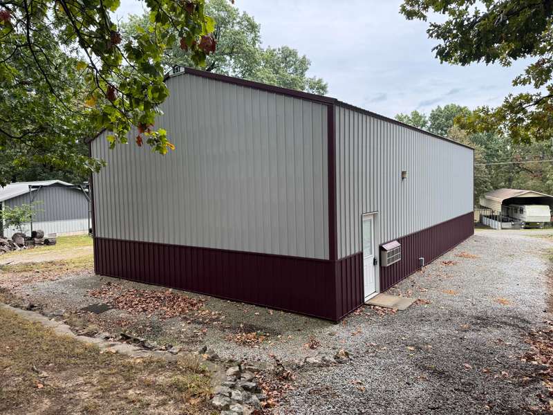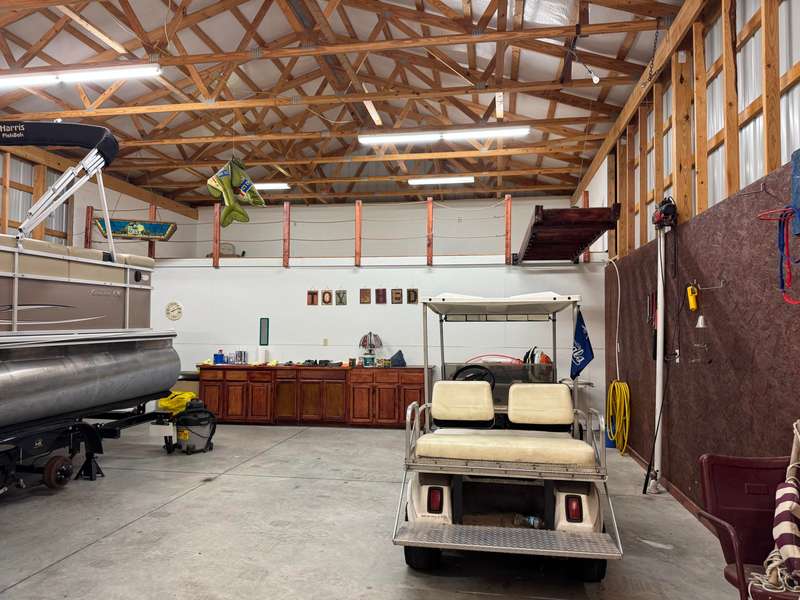 Looking for storage for your toys? This one has a partial area for living quarters too! Located in Woodland Shores on the north side of Grand Lake, this gem is located in a golf cart community, which includes a community area, swim dock, boat ramp and boat dock. The 52 X 30 QSI Building was built in 2012, with 12' doors. The living area features 360 square feet of an oversized bedroom and bathroom, with a mini split for comfort. Very low annual HOA fees, give us a call today to see this one!