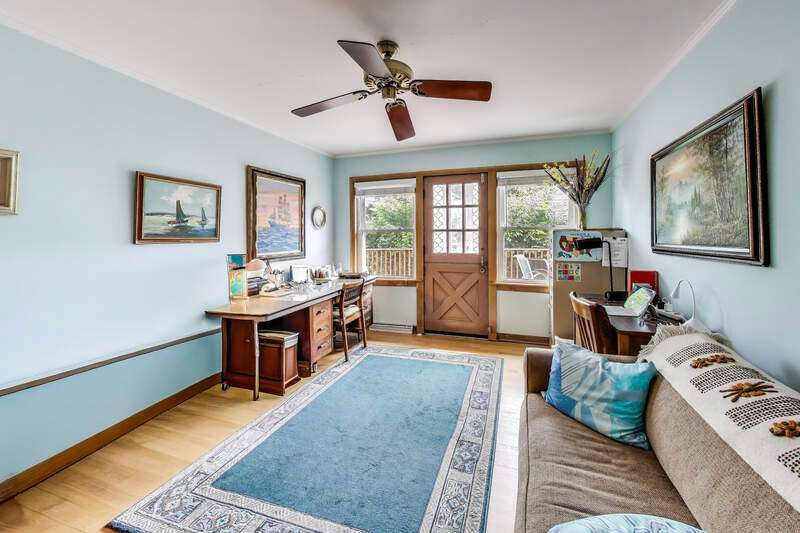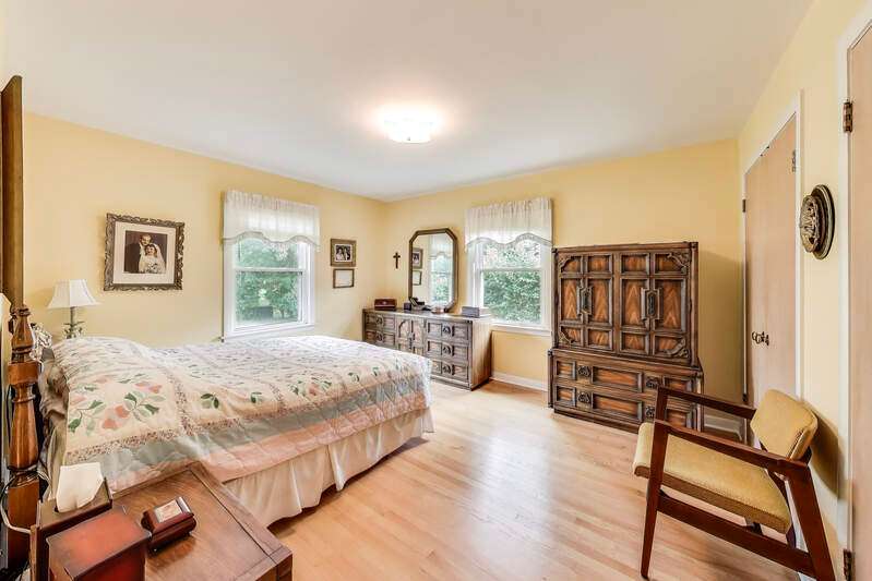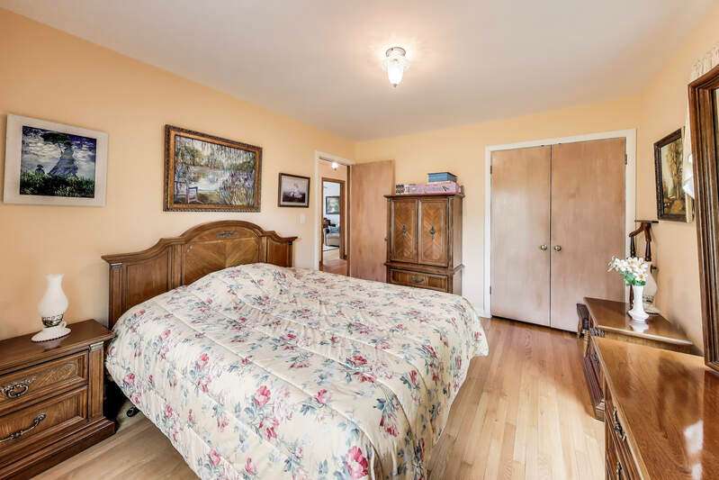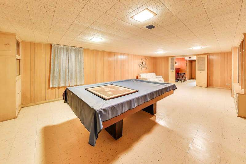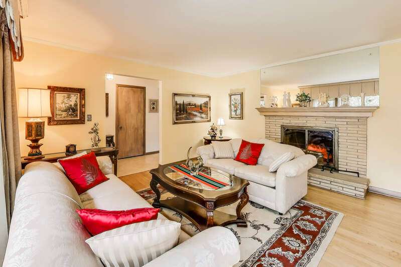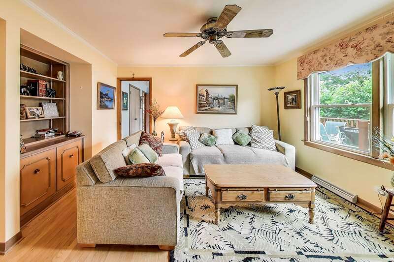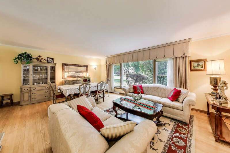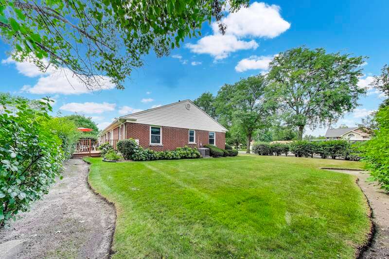 Lovingly maintained by long time owners, this beautifully cared for home offers 3 bedrooms and a rare 2.5 baths. Hardwood floors run throughout the main level, where generously sized rooms provide versatile living options. The spacious foyer opens into a welcoming living room featuring a stone wood-burning fireplace and a large picture window. The current owners have incorporated the dining area into this expansive space, while repurposing the original dining room into a den with built-in shelving and storage. The corner primary bedroom offers dual closets, while the second bedroom also enjoys corner placement with windows on two sides. The third bedroom, currently used as an office, provides direct access to the deck. The centrally located hall bath includes a tub/shower combination. The kitchen is thoughtfully designed with direct access outdoors, basement and to the fully finished two-car garage, complete with epoxy flooring. There's ample cabinets, a pantry closet, and a cozy nook for casual dining. The finished basement expands the home's living area, featuring a vintage dry bar, a spacious recreation room with built-in shelving, and a full bath with shower. The bonus room is ideal for a playroom, office or gym and has a large closet which is ideal for a wine cellar. The mechanical/storage room houses newer HVAC and has ample storage. The home also has newer windows and roof. The large laundry room with double utility sink completes the lower level. A short distance to the Glenview Metra stop and The Glen Town Center.