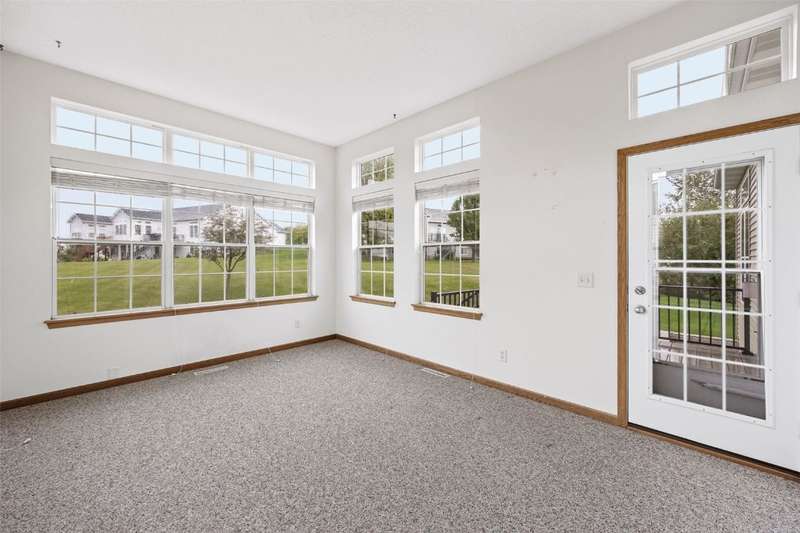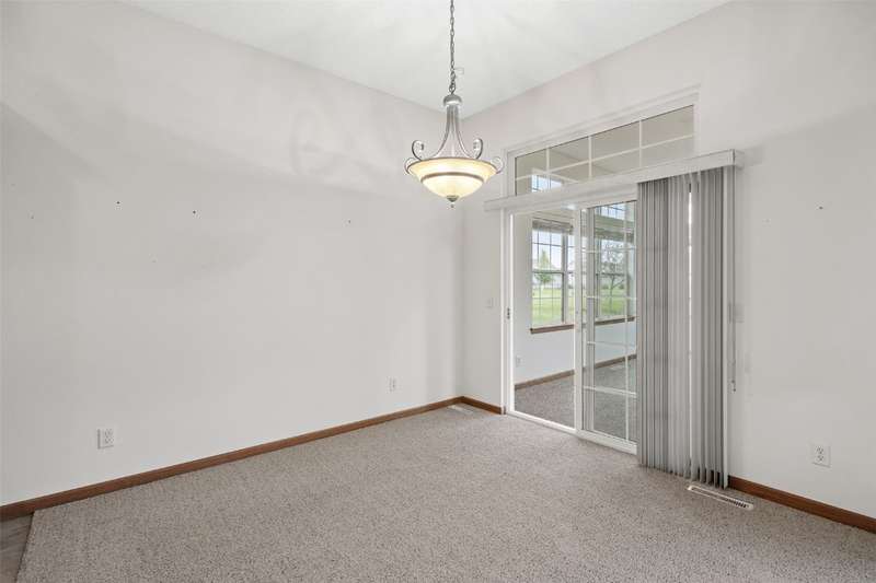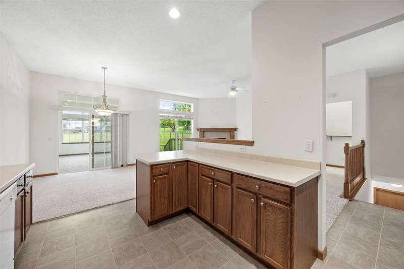 Be impressed with this Split Bedroom (Opposite ends) Ranch Condominium situated on a Cul De Sac. Foyer entrance opens to Great Room featuring Corner Gas Fireplace. Dining "L" is adjacent to Great Room and leads to the Bright 4 Seasons Room. Access is provided to the new Composite Deck overlooking rear yard. Abundant Cabinets, Ample Counterspace and Breakfast Bar accents Kitchen which includes Appliances. Spacious Primary Bedroom Offers Walk in Closet and Full Bath. 2nd Bedroom, Full Bath and Laundry Room are also featured on the main floor in this 1516 sq ft Condo. Lower Level is ready to be finished for additional square footage and offers egress windows. Attached Double Garage with shelving. Vinyl Siding- 2023, Roof - 2022, Composite Deck - 2023, Refrigerator - 2025. In close proximity to Park, Hwy 100, Stores and Restaurants