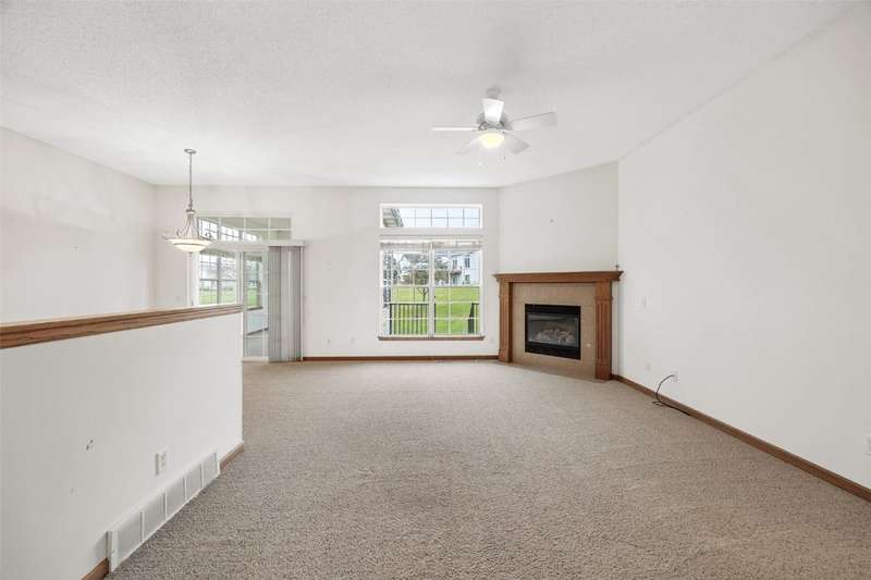 Be impressed with this Split Bedroom Ranch Condominium situated on a Cul De Sac. Foyer entrance opens to Great Room featuring Vaulted Ceiling and Corner Gas Fireplace. Dining "L" is adjacent to Great Room and leads to the Bright 4 Seasons Room. Access is provided to the new Composite Deck overlooking rear yard. Abundant Cabinets, Ample Counterspace and Breakfast Bar accents Kitchen which includes Appliances. Spacious Primary Bedroom Offers Walk in Closet and Full Bath. 2nd Bedroom, Full Bath and Laundry Room are also featured on the main floor in this 1516 sq ft Condo. Lower Level is ready to be finished for additional square footage and offers egress windows. Attached Double Garage with shelving. Vinyl Siding- 2023, Roof - 2022, Composite Deck - 2023, Refrigerator - 2025. In close proximity to Park, Hwy 100, Stores and Restaurants