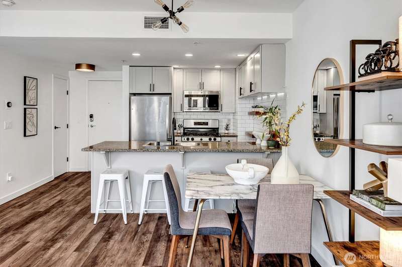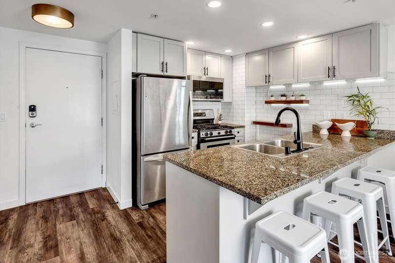 Live in the heart of First Hill at the Meridian Condominiums—just steps from the lively Pike & Pine Corridor, Virginia Mason & Swedish hospitals. Plus, easy access to downtown. Commuters can access 41, 74, 101, & 102 transit routes. Meridian offers upscale amenities including a 24/7 concierge, secure entry & garage parking for you & guests, spa, fitness center, theater, billiard lounge, & conference room. This 1 bed, 1 bath condo on the 6th floor offers 616 Sq Ft of comfort with natural light pouring in, central A/C, a gas stove & fireplace, in-unit laundry, a private balcony off the living room, & stylish kitchen tile finishes. Starbucks Reserve is nearby—Pike Grocery at your fingertips, Westlake Center shopping, & monorail access.