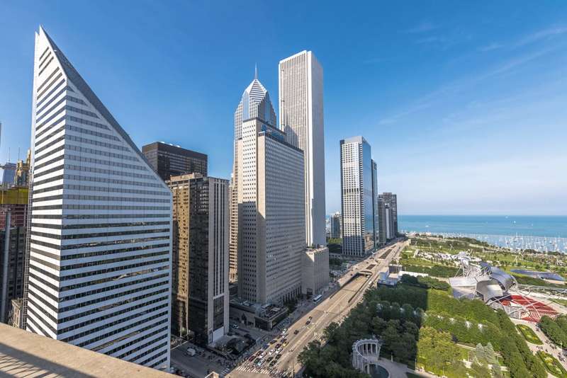 Discover unparalleled luxury and location with this stunning end-unit condo at The Heritage. Nestled on charming Garland Court, this expansive 3,000+ sq. ft. residence combines timeless sophistication with one of downtown Chicago's most sought-after addresses. From the moment you step inside, you're greeted with breathtaking, floor-to-ceiling views of Lake Michigan, Millennium Park, and the iconic Chicago skyline. With guaranteed unobstructed sightlines over the Chicago Cultural Center, every sunrise, sunset, and city light show becomes part of your everyday living experience. Perfectly positioned just steps from the theater district, lakefront, Millennium Park, Art Institute, and world-class shopping, dining, and museums, this home offers the rare chance to be fully immersed in the cultural heartbeat of Chicago. Inside, the residence features three spacious bedrooms, three and a half baths, and multiple entertainment areas designed for both relaxation and hosting. The gourmet kitchen is a chef's dream, boasting top-of-the-line GE Monogram stainless steel appliances (including double ovens, microwave, dishwasher, and a rare gas cooktop), a Sub-Zero refrigerator, chic tumbled marble backsplash, sleek granite countertops, and abundant cabinetry. Natural light pours in from floor-to-ceiling windows at both ends, making this kitchen as functional as it is beautiful. Each bedroom serves as a private retreat with generous seating areas. The luxurious primary suite features a private entrance, walk-in closets, and a spa-inspired bath with marble-topped vanities, a jetted tub, a separate shower, and ample storage. Enjoy not one, but two private outdoor spaces: An exclusive terrace ideal for evening cocktails with dazzling architectural views. An east-facing balcony perfect for peaceful mornings as the sun rises over Lake Michigan. Residents of The Heritage enjoy premier amenities, including 24-hour door staff, on-site management, dry cleaning, two sundecks, a receiving room, a dog run, extra storage, and direct pedway access. Wellness and leisure are covered with the indoor pool, sauna, fitness center, and hospitality suite with full kitchen and meeting spaces. Parking available for $50,000 per spot (#7-13 & #7-16), plus storage unit #808-63. (Monthly assessment includes $2,091 + $103.63 + $103.63 for garage maintenance.) Note: Unit 1411 has been combined with Unit 1412 for an expanded floor plan.