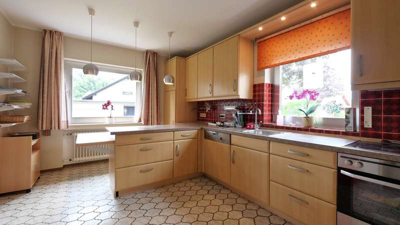 This spacious detached house with a full basement on a plot of approx. 724 m² is located in a popular, traffic-calmed residential area of Elsen. Thanks to the well thought-out layout, the property is not only perfect for traditional family life, but also offers space for a multi-generational concept or conversion into a two-family home. On the first floor, you will find a bright living area with a fireplace and direct access to the sunny garden with a small fish pond that invites you to relax. The adjoining kitchen and separate dining room create a homely atmosphere. Two bedrooms, a spacious daylight bathroom with bathtub and shower and a guest WC complete this floor. There are three further rooms on the upper floor, including a particularly large room with two separate entrances - ideal for creating an additional room if required. The upper floor is completed by a further bathroom and a balcony. A garage and the attractive location in a quiet residential area with a high quality of life make this house a versatile and future-proof property. The approved living space on the first floor is 126m². The upper floor has also been developed for residential purposes. The energy certificate was not yet available at the time of the exposé and will be submitted later.