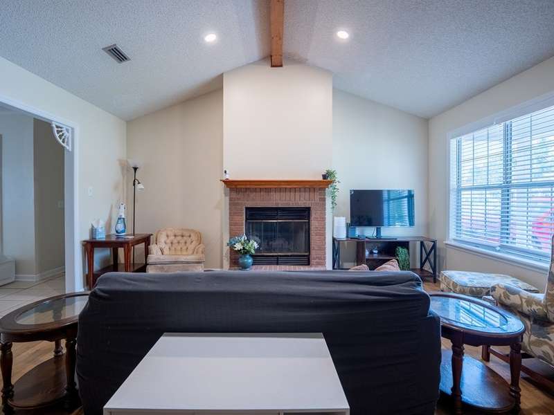 Welcome to your dream home! Conveniently located 7 min from Moody AFB, shopping, and schools, this delightful 3-bedroom, 2-bathroom residence offers a perfect blend of comfort, style, and functionality, making it ideal for families and entertainers alike. Generously sized bedrooms, and a flex room that can be used as an additional bedroom or home office. This home is perfect for family living or accommodating guests. The master suite provides a serene retreat with ample closet space. This home boasts a large kitchen that will inspire your culinary adventures! Solid surface countertops provide durability and elegance coupled with the pantry that offers plenty of storage for all your cooking essentials. Enjoy cozy evenings by the wood-burning fireplace, creating a warm and inviting atmosphere. Enjoy the expansive, fenced-in backyard, perfect for kids to play, pets to roam, or for hosting summer barbecues. Plenty of room to create your own garden oasis or outdoor entertainment area. Don't miss out on this incredible opportunity to own a beautiful home that checks all the boxes!