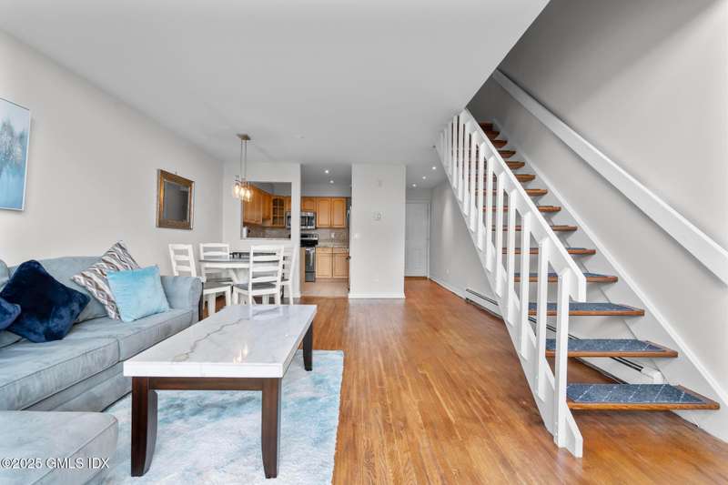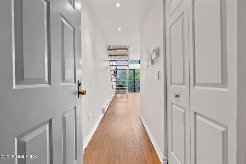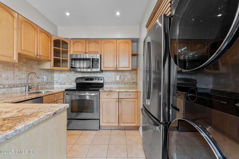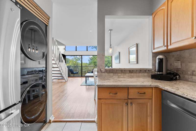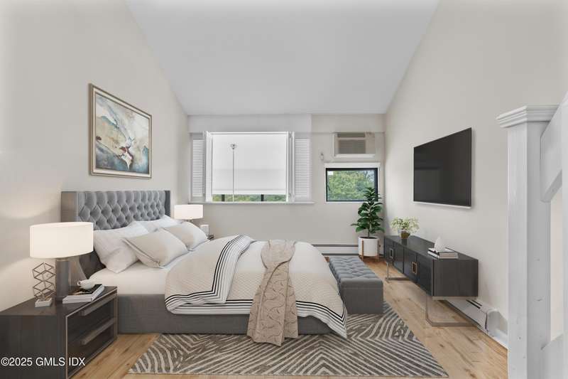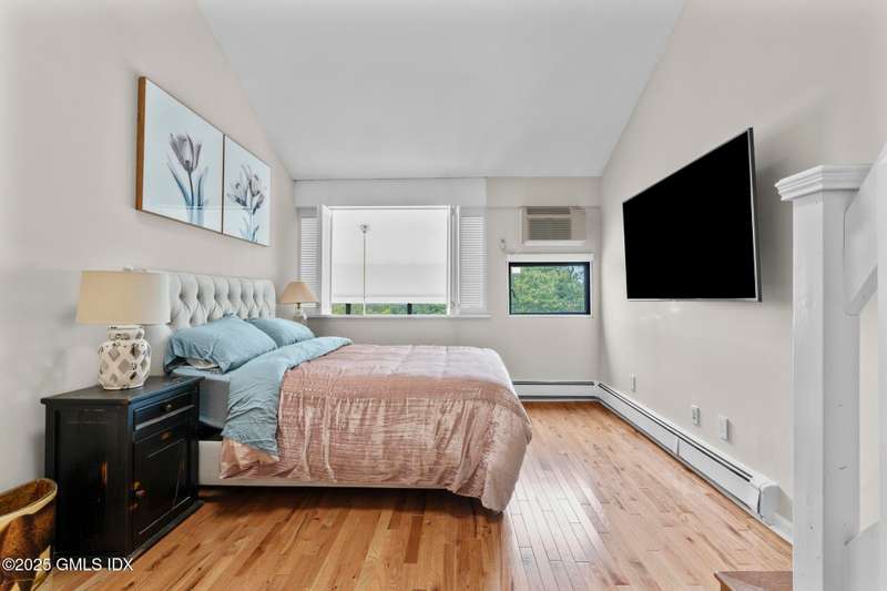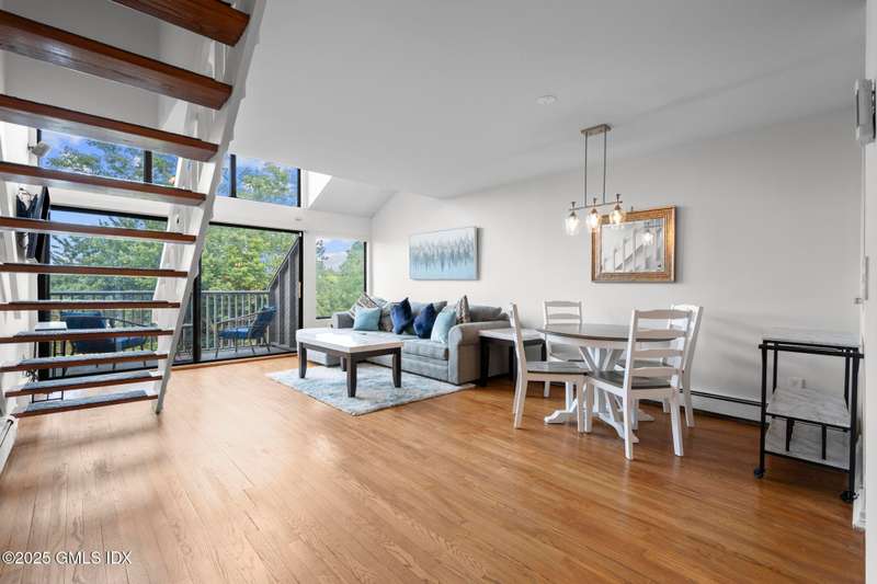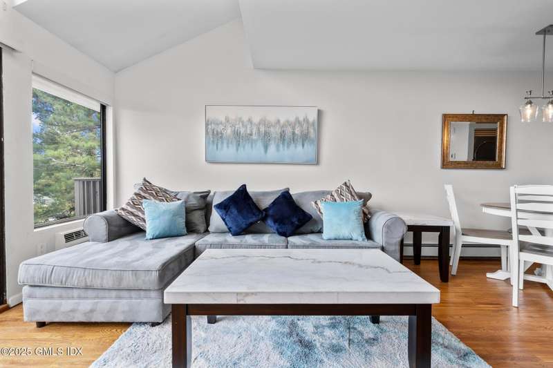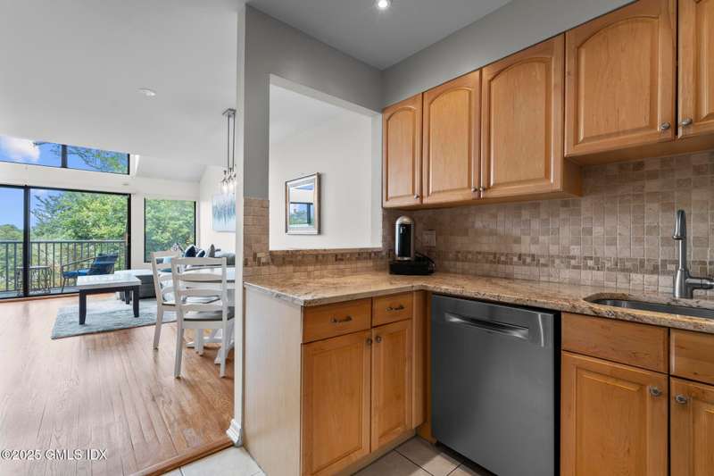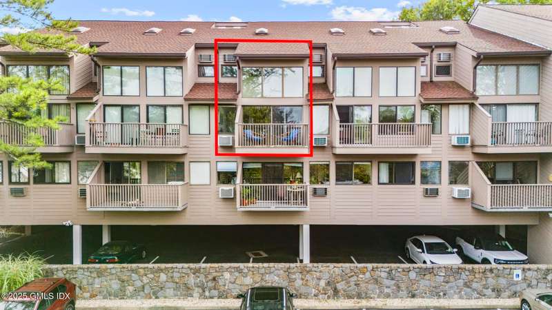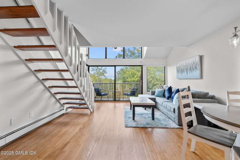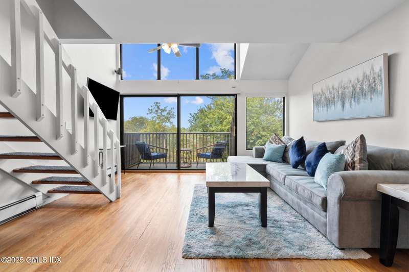 Enjoy sunsets from your private balcony in this updated loft-style condo at The Common. Tucked back in the rear of the complex, this 765 sq ft layout offers an open living area, granite kitchen with new appliances, oversized closet with updated shelving, and flexible loft space for sleeping or office use. Fresh paint, hardwood flooring throughout, and electric blinds make this home truly turnkey. Set within beautifully landscaped park-like grounds, The Common features mature trees, peaceful walking paths, and tranquil ponds that create a serene setting rarely found so close to town. Just minutes from Old Greenwich village, the train, and local beaches, Unit 421 offers a perfect blend of comfort, convenience, and lifestyle