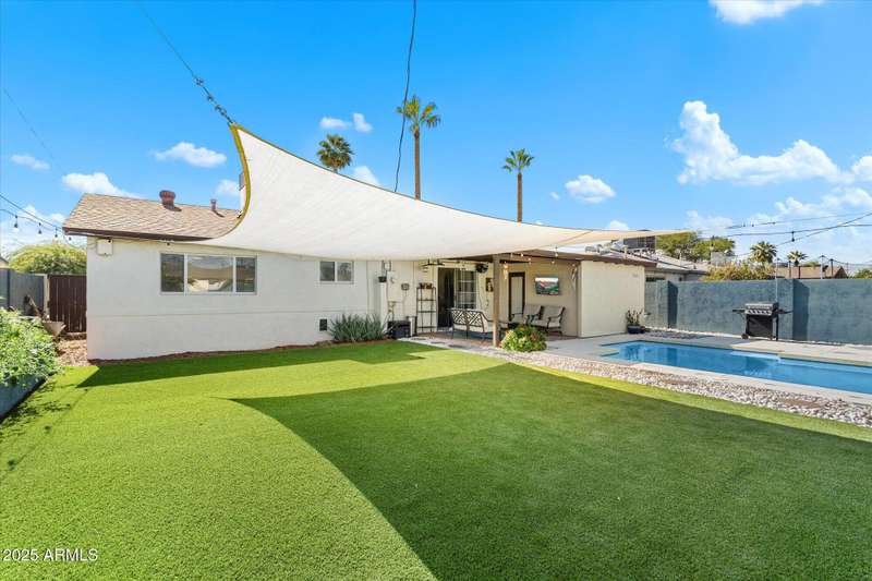 Updated home with pool, tandem two car garage and No HOA! This property has been updated with laminate wood flooring, bathrooms, kitchen and resort style backyard oasis with pool, synthetic grass and covered patio. The home and block wall have been recently painted with custom mail box. This property is close to shopping, Old Town Scottsdale and ASU. A rare find in this location of Scottsdale.