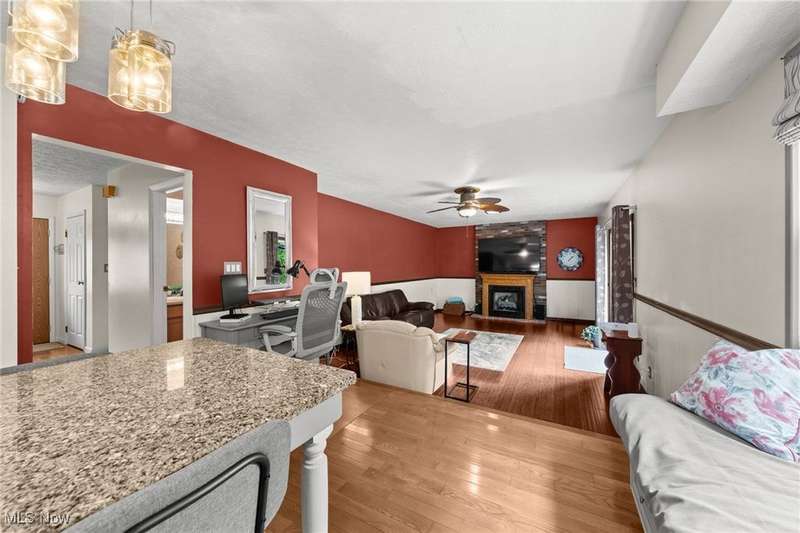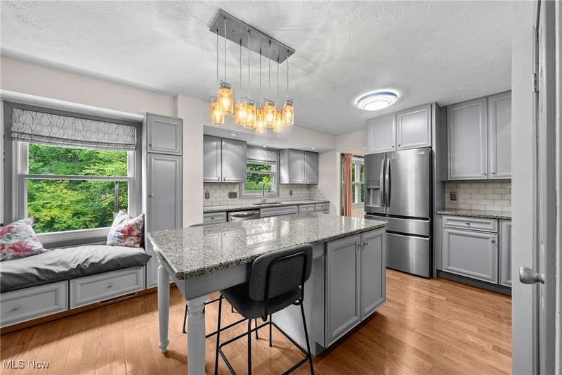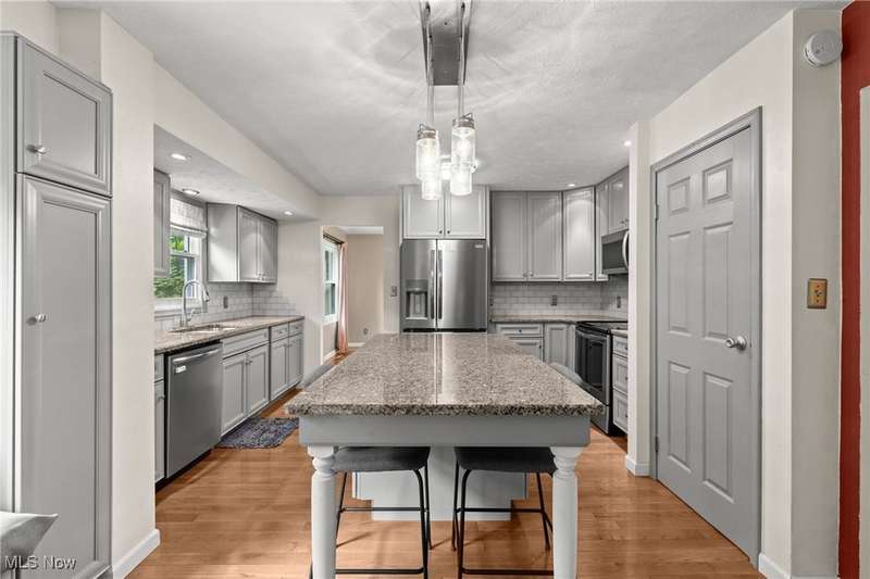 Charming 4 bedroom 2.5 bathroom center hall colonial. Guests are greeted with a large open concept dining room and family room. Fully remodeled kitchen with stainless appliances, stone counters, central eat-in island, and tile backsplash. A step down living room and updated powder room completes the first level. Primary suite with large walk-in closet and full bathroom. Second level laundry hooks up available in guest bedroom closet. 3 nicely sized bedrooms and a second full bathroom complete the upper level. 2 car attached garage with additional storage. Full footprint unfinished basement with laundry. Roof 2022. Kitchen remodel 2017 - New appliances from 2021-2025. Furnace 2018. Double pane vinyl windows throughout. Lovely lot with ample greenspace in both front and backyard. Please see listing agent for full list of improvements and average utility costs.