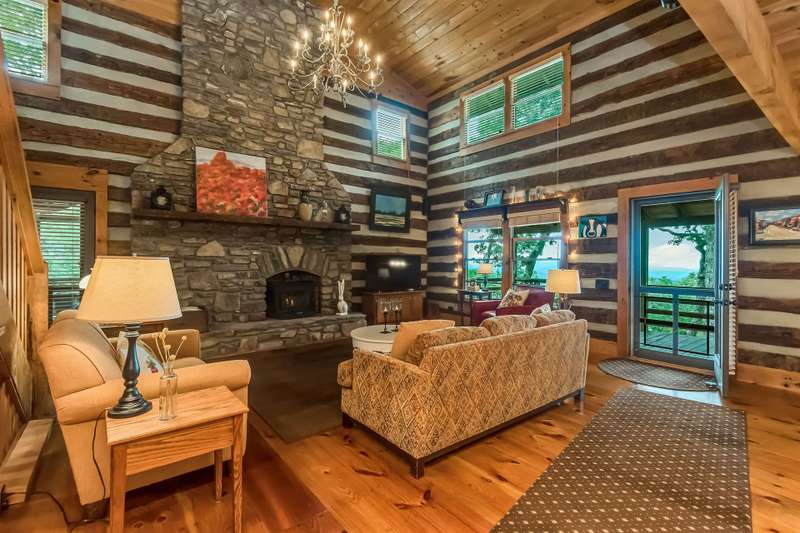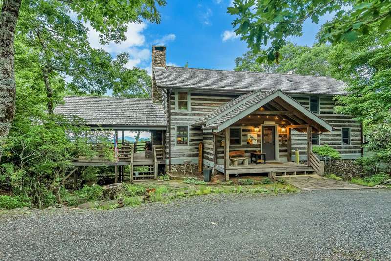 Wake up to the view of Grandfather Mtn. while enjoying your morning coffee on the covered back deck of this exquisite antique log cabin. This cabin masterfully combines rustic charm with modern conveniences, creating an inviting retreat. Upon entering the front door, you are greeted by a spacious foyer and a convenient 1/2 bath. The great room seamlessly integrates the kitchen, dining, & living areas, making it ideal for hosting gatherings. The chef's kitchen presents commercial-grade appliances and an expansive island. The main level boasts a luxurious primary suite with stunning mountain views to greet you every morning. The private en-suite bath is a haven of relaxation, offering granite double sinks, a tiled shower, and a soaking tub. The upper level is designed with guests in mind, featuring 2 spacious bedrooms and a full bath. Each room provides comfort and privacy, making your guests feel right at home. The lower level is a versatile space, featuring an expansive family room. Also includes another full bath and 2 bonus rooms currently set up as bedrooms, ideal for accommodating additional guests. The wrap-around covered porches and expansive outdoor living room make this cabin an entertainer's dream. Whether hosting a summer BBQ or enjoying a quiet evening by the wood-burning outdoor fireplace, you'll love spending time outdoors. The fenced backyard is ideal for gardening and/or pets. A detached garage offers even more space for guests, featuring a sitting room, sleeping area and full bath, creating a private guest suite. The lower level of the garage provides parking for 2 cars and room for a workshop, catering to all your storage and hobby needs. Every detail of this home has been thoughtfully designed and meticulously maintained, making it a truly exceptional property. With its stunning views, lavish amenities, and charming rustic appeal, this antique log cabin is the perfect mountain retreat for making lifelong memories with family and friends.