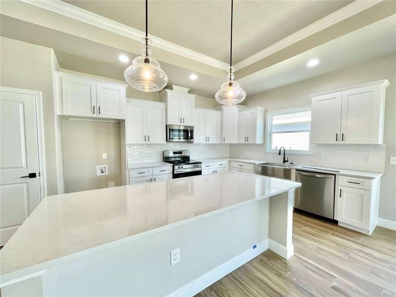 Completed and ready to move in! Introducing The Lily!! New floorplan with open concept kitchen, dining and great room area. Affordable luxury and quality construction in SW Gainesville by local developer/builder of over 30 years, Weseman Builders Inc. Check out this brand new 3 bedroom 2 bath home with 1,727 sf. As you walk in the front door, you will notice right away the luxury vinyl plank flooring that will lead you throughout the home including great room, dining area and bedrooms. Spacious open kitchen with white wood shaker cabinets, quartz counter tops, decorative tile backsplash, Greystone color wood shaker island, walk-in pantry, stainless steel farmhouse sink, stainless steel stove, dishwasher and microwave hood. Great room area leads you to the sliding doors that open to the large rear covered lanai which provides access to the large back yard for some outdoor living. The open concept kitchen and great room are designed for entertaining. Spacious primary bedroom with on-suite luxury bath, walk-in closet, double sinks and walk-in shower. Tray ceilings with crown molding in great room, dining area and primary bedroom. 2 car garage with carriage style 8 foot tall door for larger vehicles, pull down attic ladder and automatic garage door opener. Premium lot backs up partially to a common area. Energy saving features like gas tankless water heater, LED lights, double pane windows, R13 wall insulation, R31 attic insulation, and 15 SEER HVAC. 100% financing (no down payment) options available to qualified buyers. Grand Oaks HOA fee is only $60 per month and has a community pool, pavilion and playground area. Located across Oak Hall school, Grand Oaks is zoned for great schools of Chiles Elementary, Fort Clark Middle School and Buchholtz High School. Conveniently located near all kinds of shopping and dining offered by Celebration Pointe and Butler plaza town centers. Also, just a few miles from the hospitals and university. Quick closing and occupancy available!