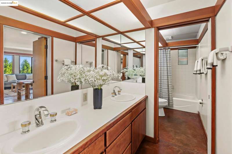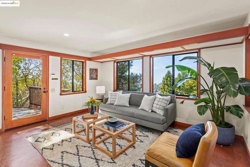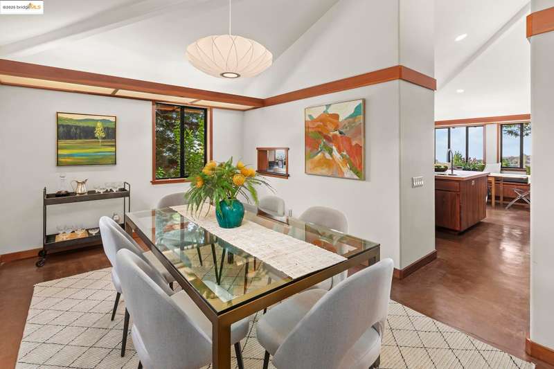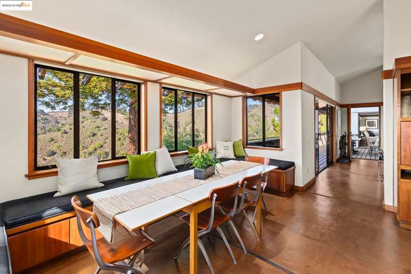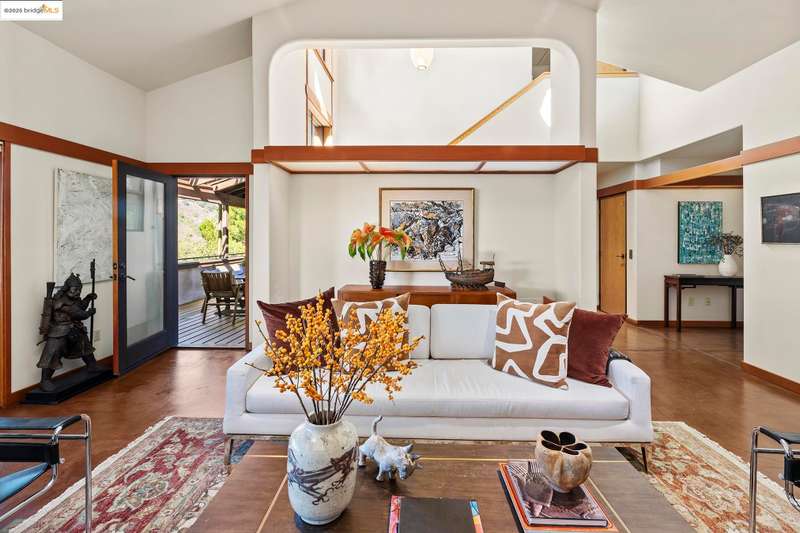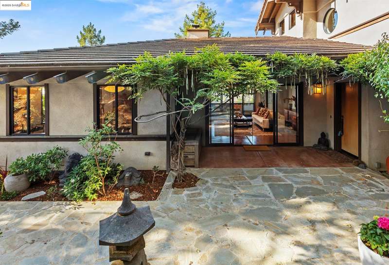 This rare Japanese style home sits on a triple lot at the end of a quiet cul-de-sacand has it all. Enjoy beautiful bay-canyon views, expansive decks on every level framing stunning vistas and an elevator providing true accessibility throughout. Ideal for integrated living, the home includes a spacious 1-bedroom apartment that can function independently or connect seamlessly to the main residence. With 5 bedrooms, 4.5 baths, a 3-car garage, and a gently terraced three-level layout, the design blends naturally with the landscape. Soaring double-height ceilings, integral-color polished concrete floors, radiant heat, custom woodwork, built-ins and seamless indoor-outdoor flow make this a rare combination of architectural sophistication and modern comfort.