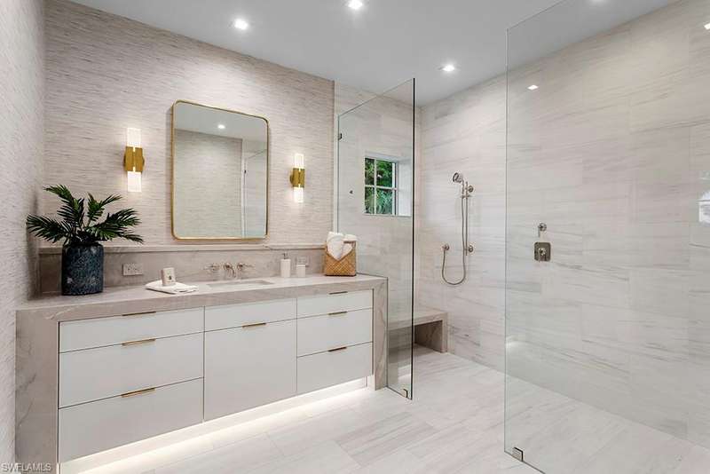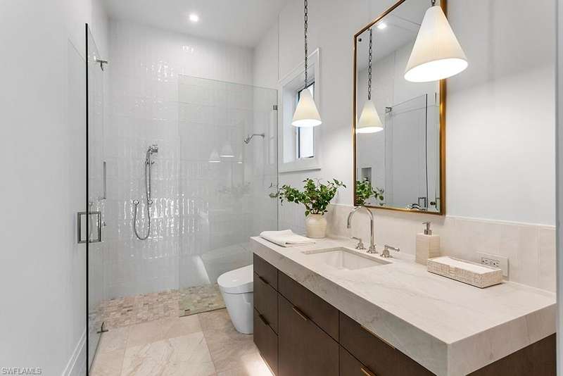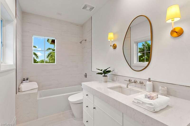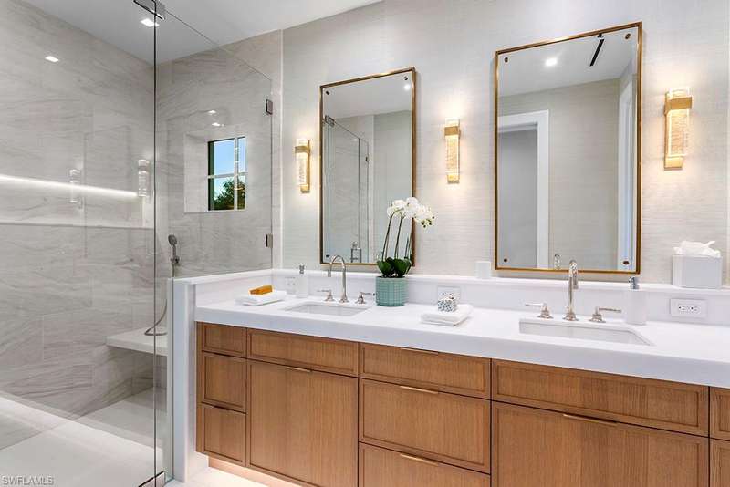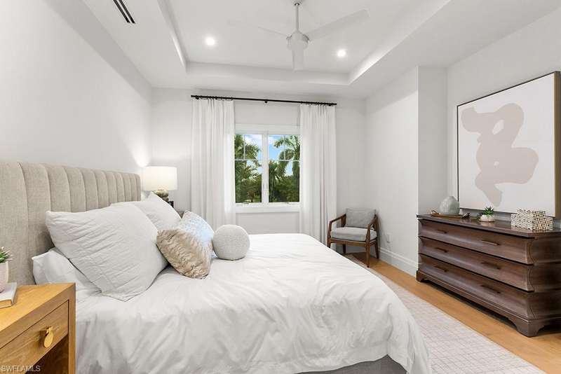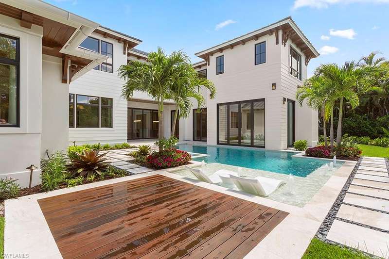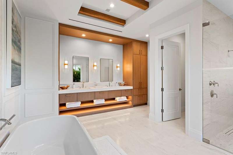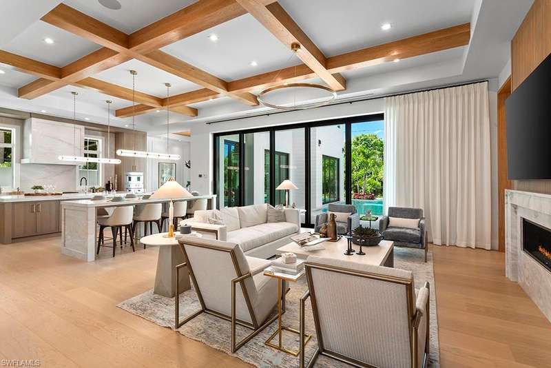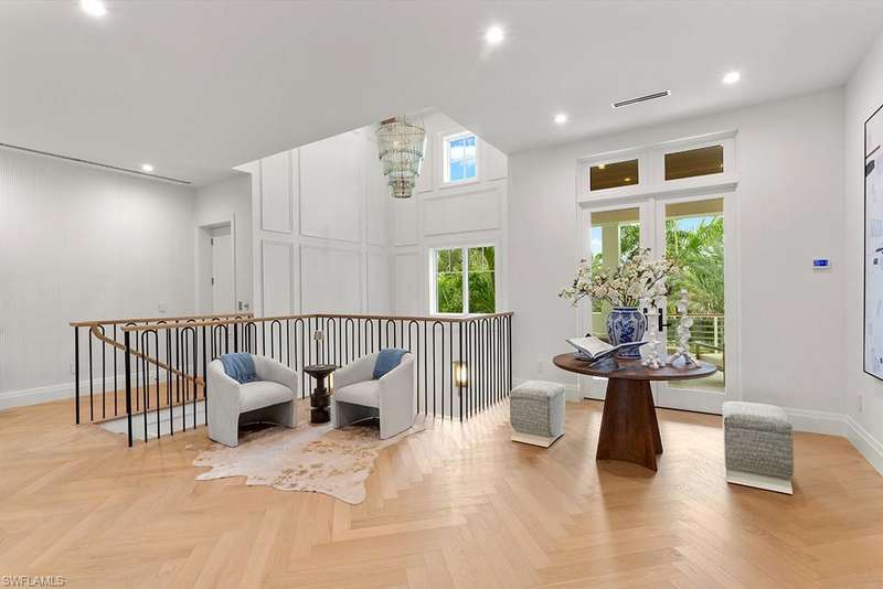 Positioned along the prestigious South Golf corridor in the heart of Old Naples, this newly constructed estate represents an uncompromising standard of residential design, craftsmanship, and functionality. Conceived by MHK Architecture and executed by Lotus Construction s luxury division, the home sits directly across from the Four Seasons Resort and its newly redeveloped oceanfront golf campus offering unobstructed vistas of fairways and tennis courts in one of Naples most tightly held locations. Encompassing nearly 7,000 square feet of interior living space, the floorplan is both expansive and deliberately considered. Five oversized bedroom suites are complemented by a dedicated study, seven baths, and a series of spatial volumes designed to accommodate refined living and entertaining at scale. Interiors by Freestyle showcase a restrained yet intentional palette, with premium finishes and bespoke detailing throughout. The kitchen is anchored by an integrated Wolf/Sub-Zero appliance s