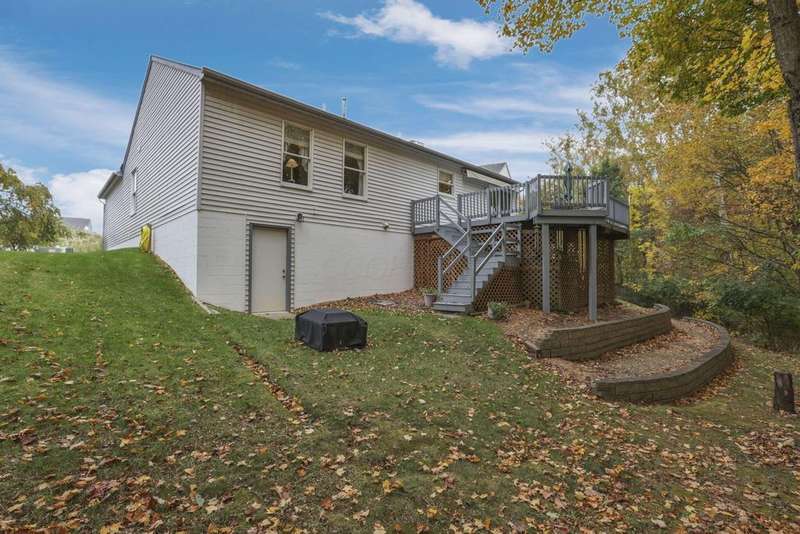 Welcome home to this beautifully updated 3-bedroom, 2-bath ranch with a full walk-out basement located on a cul-de-sac street in the desirable community of the Woods at Jefferson, Blacklick, Ohio. The open floor plan features a spacious great room with cathedral ceiling & gas fireplace and an eat-in kitchen, perfect for everyday living and entertaining. Step outside to the elevated deck with a SunSetter awning and enjoy peaceful wooded ravine views with mature trees providing privacy and stunning seasonal scenery. This home has been professionally pre-inspected and includes a 1-year home warranty for buyer peace of mind. Updates include new A/C (2021), new carpet and LVP flooring, new driveway, insulated garage door and opener, basement waterproofing and insulation, new deck railing and staining, updated lighting fixtures, and fresh paint throughout. The walk-out basement offers excellent potential for a recreation room, home office, or additional living space. Conveniently located near Columbus, Gahanna, Reynoldsburg, and Pataskala?just minutes from shopping, dining, and parks. Don't miss this move-in ready Blacklick gem!