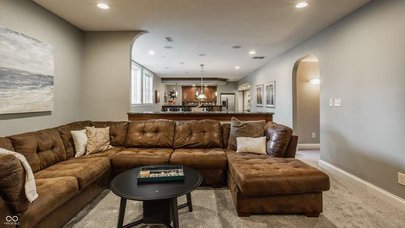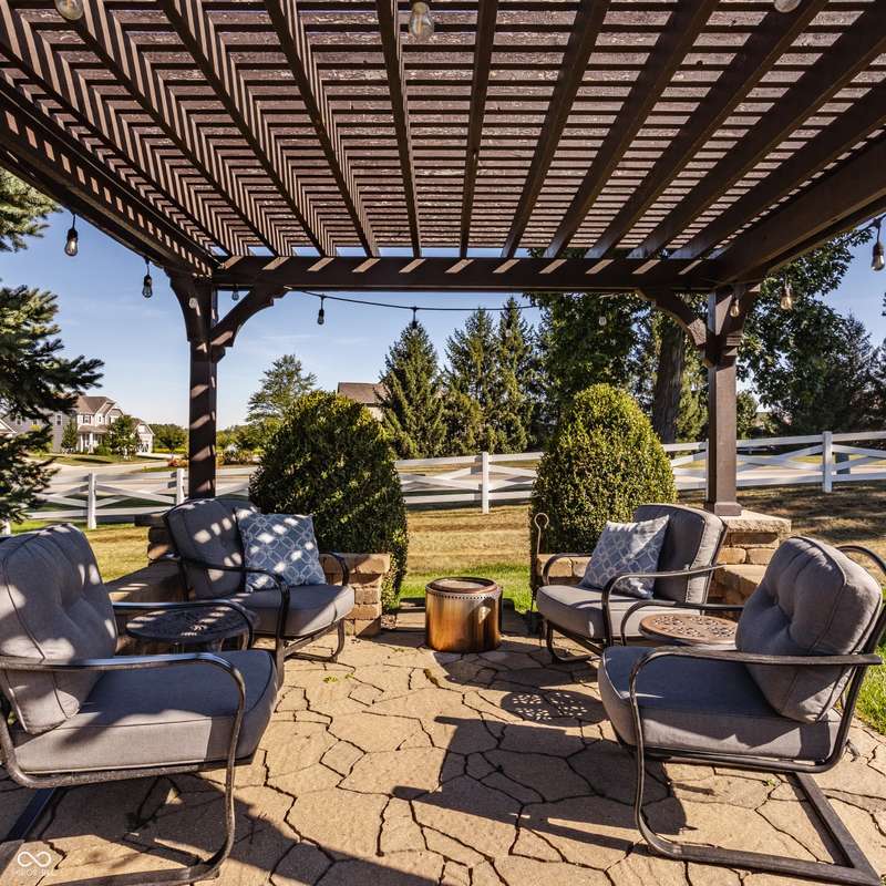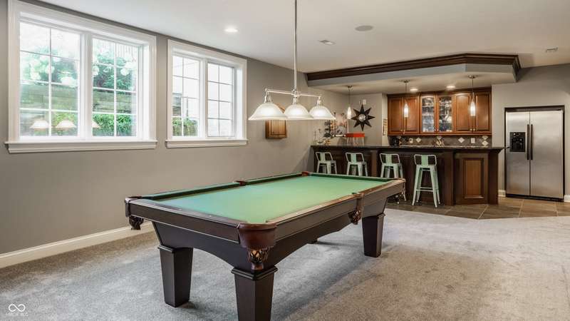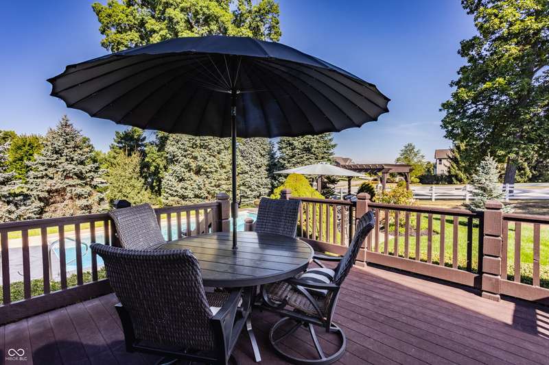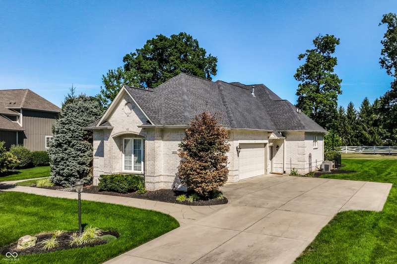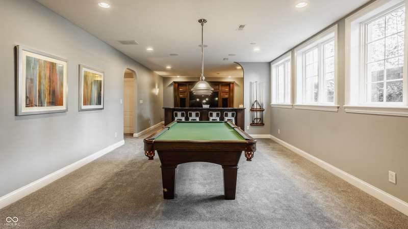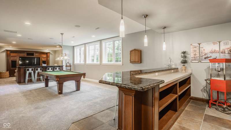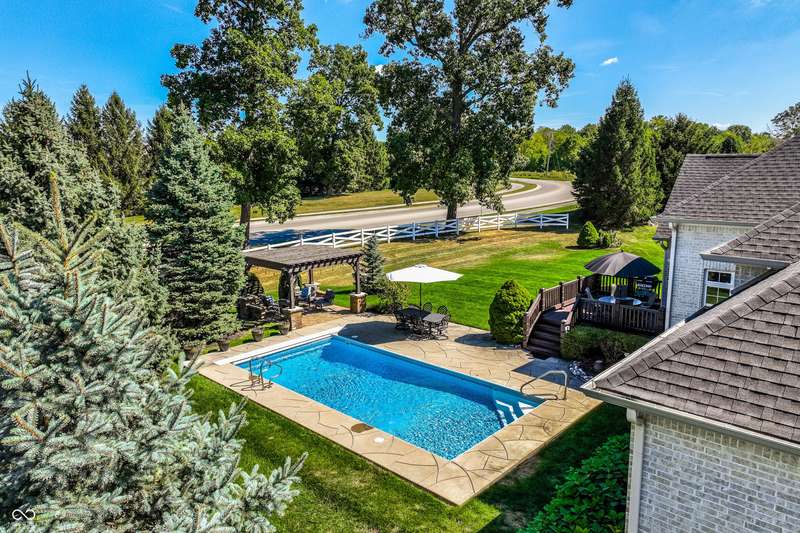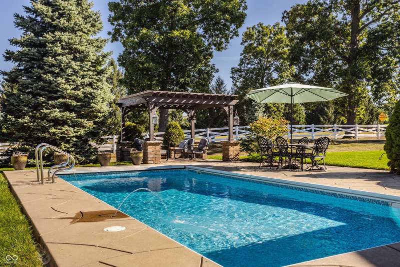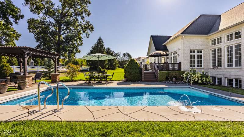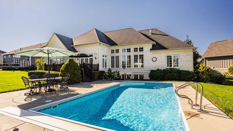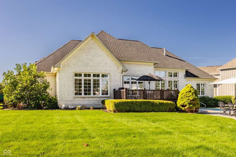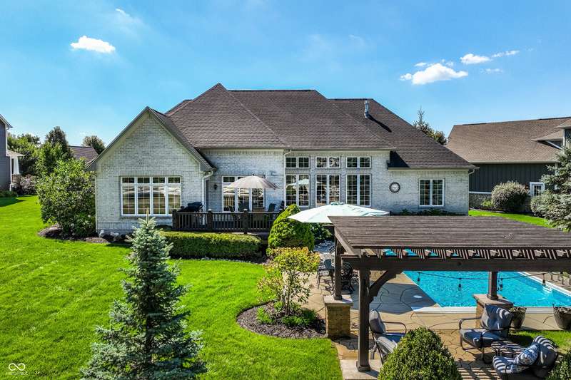 Stunning All-Brick Ranch in Desirable Lochaven of Noblesville! Welcome to this beautifully updated and meticulously maintained all-brick ranch home located in the sought-after Lochaven of Noblesville community. From the moment you step inside, you'll be captivated by the coffered ceilings, custom lighting, built-in bookcases, and gorgeous gas fireplace with custom tile surround, all bathed in natural light from expansive windows. This spacious home features 4 bedrooms and 4.5 bathrooms, with both the primary suite and a secondary bedroom conveniently located on the main level. Each bedroom boasts its own private en-suite bath, offering comfort and privacy for family and guests. The 2018 remodel brought stunning upgrades including all-new flooring on the main level, 8-foot doors, and a reimagined kitchen featuring new cabinetry, countertops, and top-of-the-line appliances, including a SubZero refrigerator. Step outside to your own private oasis: a saltwater in-ground pool (converted in 2019) with a new heater and brand-new liner (2024). Relax or entertain in the beautifully landscaped backyard featuring a large deck, spacious patio, and charming pergola. All pool maintenance records are available for peace of mind. The primary suite is a true retreat with a double tray ceiling, oversized walk-in closet, dual vanities, soaking tub, and separate shower. The finished lower level offers abundant space and versatility with daylight windows, two additional bedrooms, a kitchen/bar area, home theater, game room, bonus room, and a full bath (added in 2019). Plus, there's still plenty of storage for all your needs. Additional highlights include: Whole-house audio system with Sonos integration, New roof (2021), Tankless water heater (2023), Private home office, and located in a vibrant community with outstanding neighborhood amenities. Don't miss this rare opportunity to own a truly exceptional home in one of Noblesville's most coveted neighborhoods!