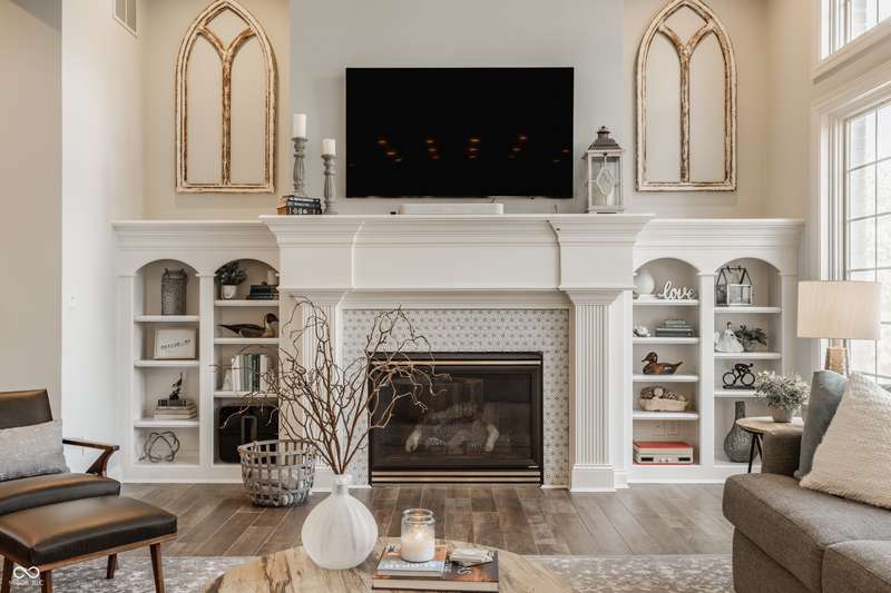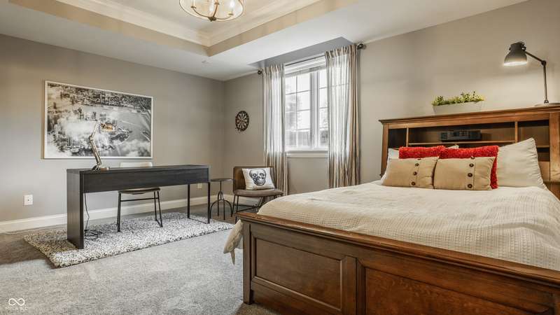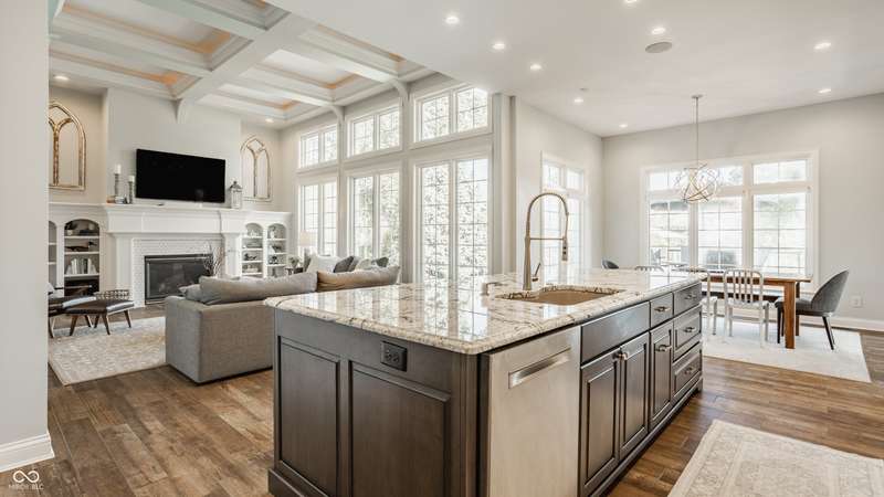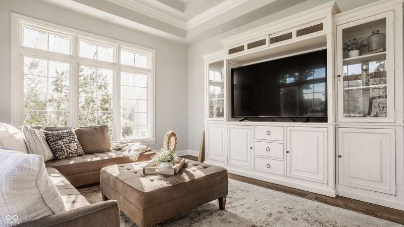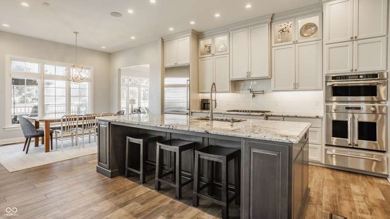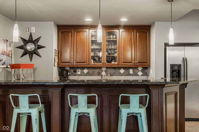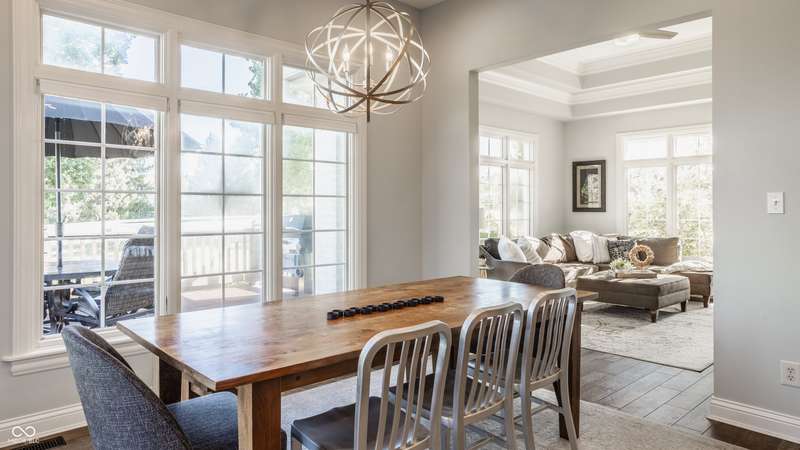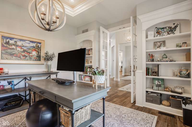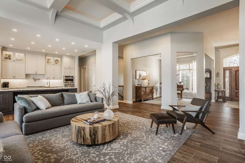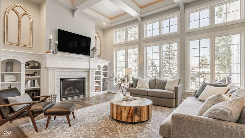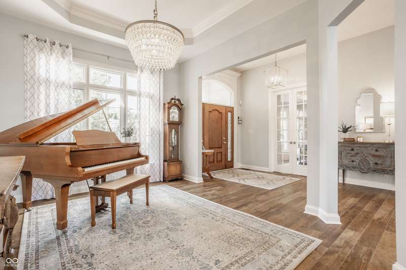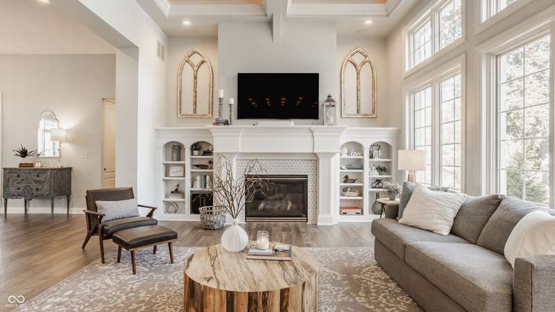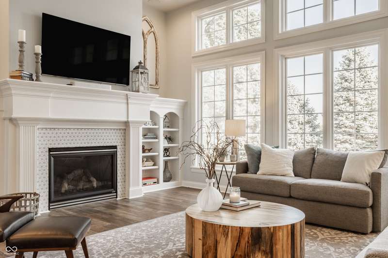 Stunning All-Brick Ranch in Desirable Lochaven of Noblesville! Welcome to this beautifully updated and meticulously maintained all-brick ranch home located in the sought-after Lochaven of Noblesville community. From the moment you step inside, you'll be captivated by the coffered ceilings, custom lighting, built-in bookcases, and gorgeous gas fireplace with custom tile surround, all bathed in natural light from expansive windows. This spacious home features 4 bedrooms and 4.5 bathrooms, with both the primary suite and a secondary bedroom conveniently located on the main level. Each bedroom boasts its own private en-suite bath, offering comfort and privacy for family and guests. The 2018 remodel brought stunning upgrades including all-new flooring on the main level, 8-foot doors, and a reimagined kitchen featuring new cabinetry, countertops, and top-of-the-line appliances, including a SubZero refrigerator. Step outside to your own private oasis: a saltwater in-ground pool (converted in 2019) with a new heater and brand-new liner (2024). Relax or entertain in the beautifully landscaped backyard featuring a large deck, spacious patio, and charming pergola. All pool maintenance records are available for peace of mind. The primary suite is a true retreat with a double tray ceiling, oversized walk-in closet, dual vanities, soaking tub, and separate shower. The finished lower level offers abundant space and versatility with daylight windows, two additional bedrooms, a kitchen/bar area, home theater, game room, bonus room, and a full bath (added in 2019). Plus, there's still plenty of storage for all your needs. Additional highlights include: Whole-house audio system with Sonos integration, New roof (2021), Tankless water heater (2023), Private home office, and located in a vibrant community with outstanding neighborhood amenities. Don't miss this rare opportunity to own a truly exceptional home in one of Noblesville's most coveted neighborhoods!