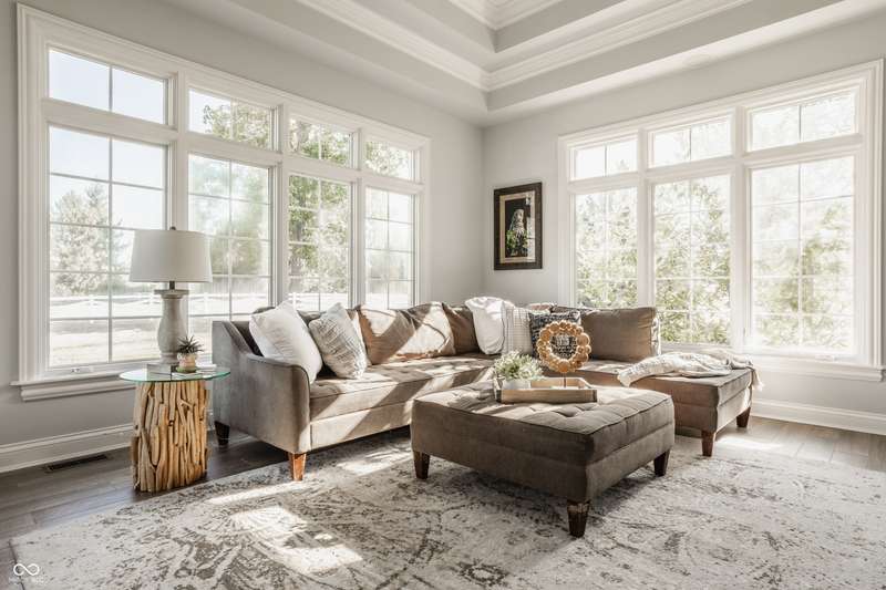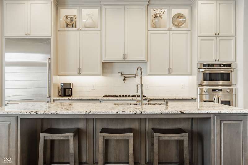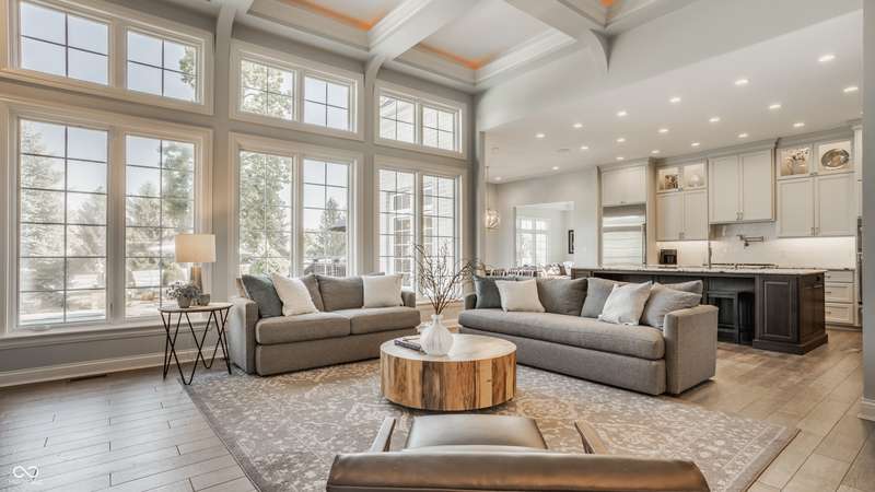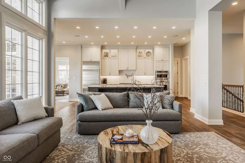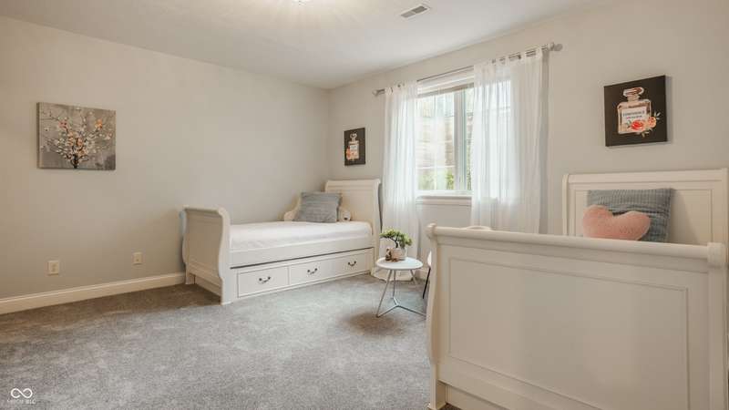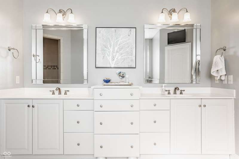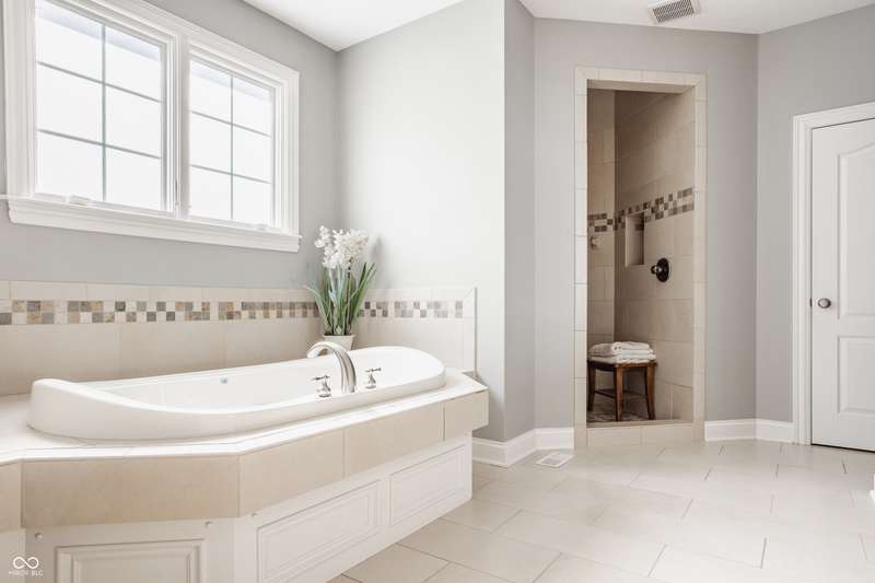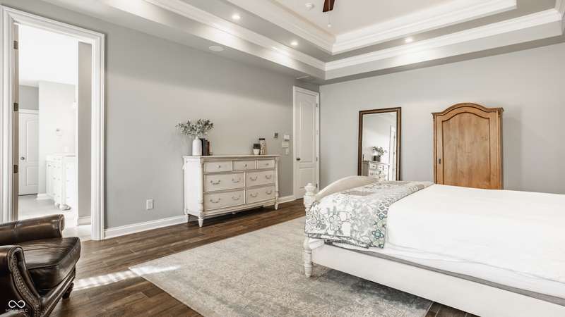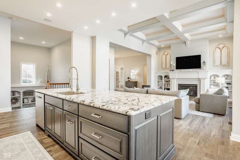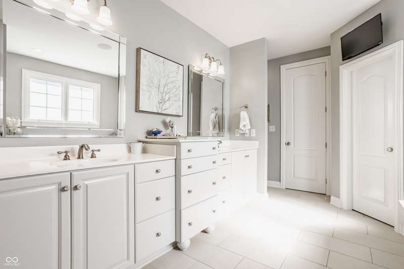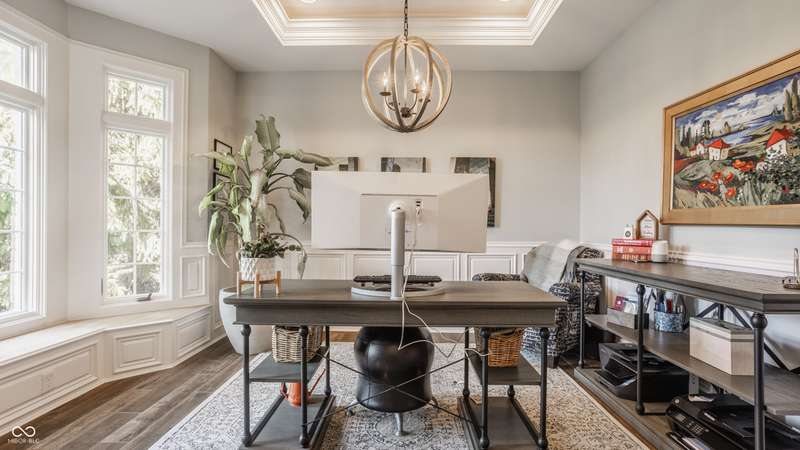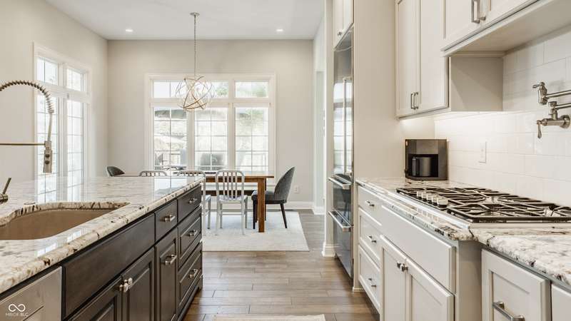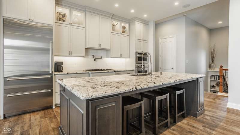 Stunning All-Brick Ranch in Desirable Lochaven of Noblesville! Welcome to this beautifully updated and meticulously maintained all-brick ranch home located in the sought-after Lochaven of Noblesville community. From the moment you step inside, you'll be captivated by the coffered ceilings, custom lighting, built-in bookcases, and gorgeous gas fireplace with custom tile surround, all bathed in natural light from expansive windows. This spacious home features 4 bedrooms and 4.5 bathrooms, with both the primary suite and a secondary bedroom conveniently located on the main level. Each bedroom boasts its own private en-suite bath, offering comfort and privacy for family and guests. The 2018 remodel brought stunning upgrades including all-new flooring on the main level, 8-foot doors, and a reimagined kitchen featuring new cabinetry, countertops, and top-of-the-line appliances, including a SubZero refrigerator. Step outside to your own private oasis: a saltwater in-ground pool (converted in 2019) with a new heater and brand-new liner (2024). Relax or entertain in the beautifully landscaped backyard featuring a large deck, spacious patio, and charming pergola. All pool maintenance records are available for peace of mind. The primary suite is a true retreat with a double tray ceiling, oversized walk-in closet, dual vanities, soaking tub, and separate shower. The finished lower level offers abundant space and versatility with daylight windows, two additional bedrooms, a kitchen/bar area, home theater, game room, bonus room, and a full bath (added in 2019). Plus, there's still plenty of storage for all your needs. Additional highlights include: Whole-house audio system with Sonos integration, New roof (2021), Tankless water heater (2023), Private home office, and located in a vibrant community with outstanding neighborhood amenities. Don't miss this rare opportunity to own a truly exceptional home in one of Noblesville's most coveted neighborhoods!