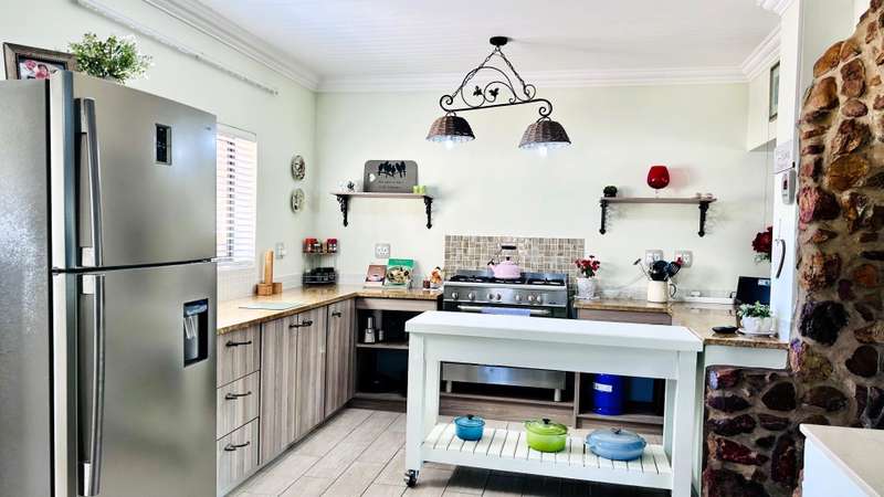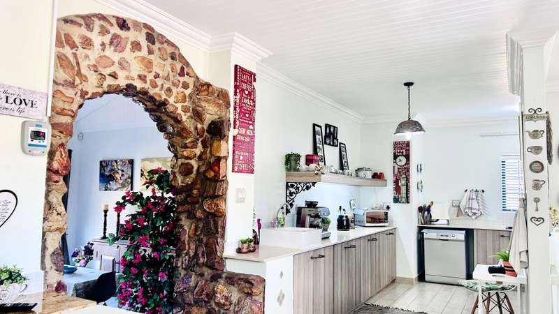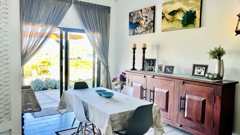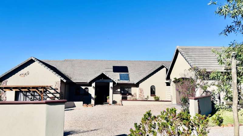 This exceptional property is ideal for those who crave tranquillity, open space, and a deep connection with nature. Located in an exclusive low-density eco estate just 1 km from the popular Langeberg Mall, and only a stone?ÇÖs throw from the beloved Hartenbos and Diaz beaches ?Çô this home offers the perfect balance between serenity and convenience. Here, springbok, bushbuck, and even tortoises roam freely around you, while birdsong fills the air ?Çô a true nature lover?ÇÖs paradise. Property Features: ?Çó Beautiful 3-bedroom home with a spacious, well-designed layout and high-quality finishes ?Çó Cozy reading/study room with a built-in safe ?Çô ideal for work or quiet moments ?Çó Open-plan living areas including lounge, dining room, and a fully equipped kitchen with Elba gas stove and Caesarstone countertops ?Çó Stylish handmade light fittings and bamboo lamp shades that add warmth and character ?Çó Large main bedroom filled with north-facing sunlight, featuring an en-suite bathroom with double showers, a large bathtub, and double vanities Outdoor Living at Its Best: ?Çó Private and sheltered undercover braai (BBQ) area ?Çô perfect for entertaining ?Çó Natural feel enhanced by stonework finishes inside and out ?Çó Beautifully established garden with irrigation system and neat gravel detailing at the entrance ?Çó Double garage with remote-controlled doors Additional Comfort and Sustainability Features: ?Çó 2.4 kVA inverter system ?Çó 2 solar panels for power ?Çó Solar geyser for hot water ?Çó 2 x 5,500-liter water tanks