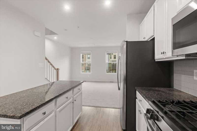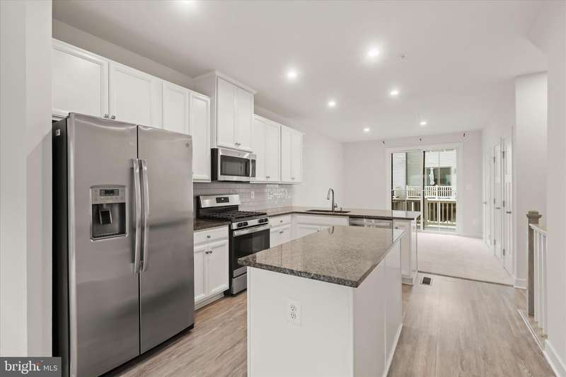 This stylish and thoughtfully designed 3-level townhome in the water-privileged Tanyard Shores community offers clean lines, open spaces, and tasteful updates throughout. Fresh paint and new carpeting create a bright, move-in-ready interior. The main level features an open-concept layout with the kitchen positioned between the living and dining areas. The kitchen is equipped with white 42-inch cabinetry, an island, granite counters, a timeless subway tile backsplash, a pantry, and stainless steel appliances including a gas range. The dining area opens through a sliding glass door to the deck, while a spacious living area on the opposite side provides a comfortable gathering space. A convenient half bath completes the main level. Upstairs, the primary bedroom offers a walk-in closet and an en suite bath with a double sink vanity and tiled shower. A second bedroom with its own en suite bath and the laundry closet are also located on this level, providing convenience and privacy. The lower entry level includes a private third bedroom, a full bath, and a family room that opens to the backyard through a sliding glass door. A tankless water heater provides efficient, on-demand hot water for added peace of mind. Residents enjoy two reserved parking spaces with additional visitor parking available at the end of the street. Tanyard Shores provides a true resort-style lifestyle, featuring a waterfront park with beach access, kayaking and dock facilities, a private marina, and miles of nature trails. The clubhouse offers a fitness center, yoga studio, indoor and outdoor dining areas, and social spaces, while outdoor amenities include a pool, dog park, bike pump track, and expansive green spaces for recreation. This home combines modern living with an unparalleled community lifestyle. Please note: photos depicting furniture have utilized virtual staging.