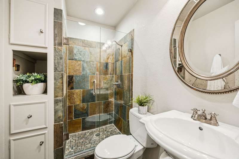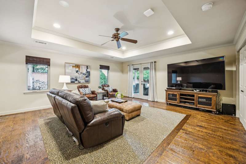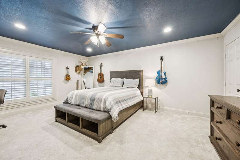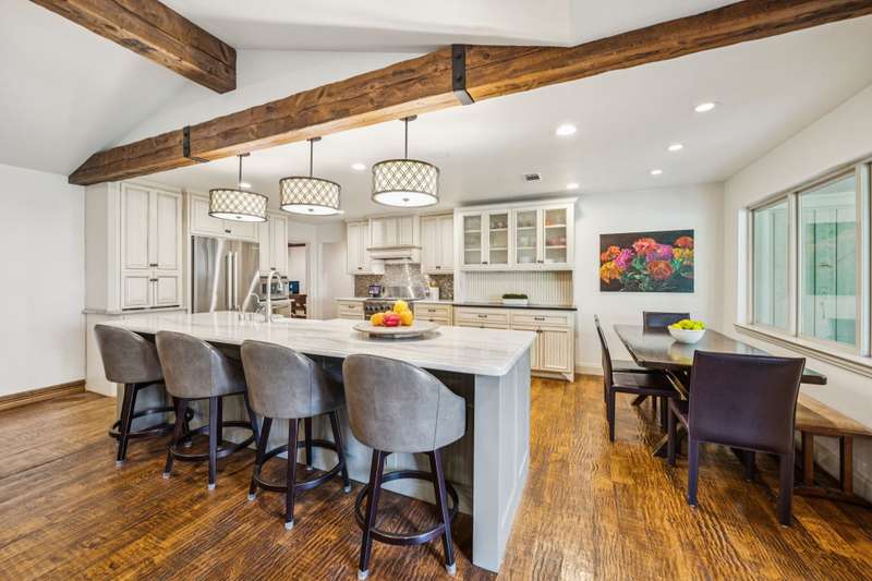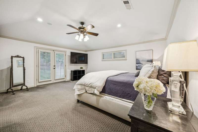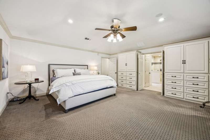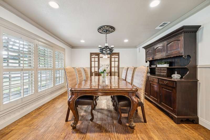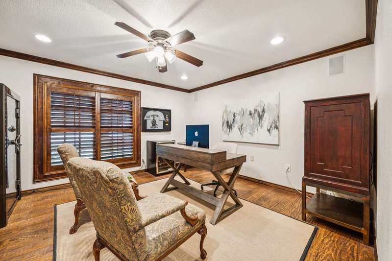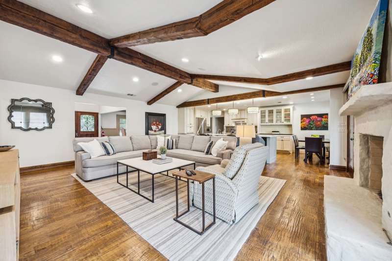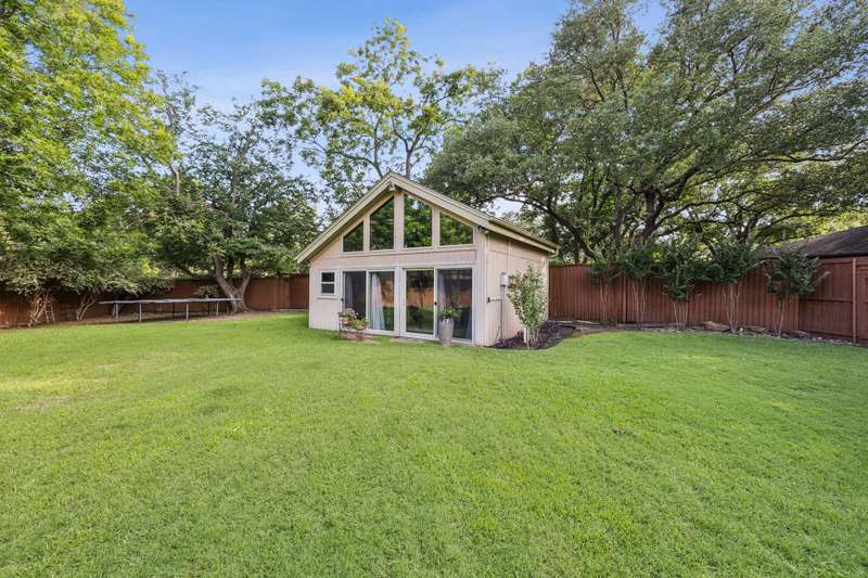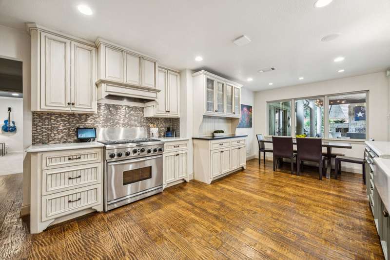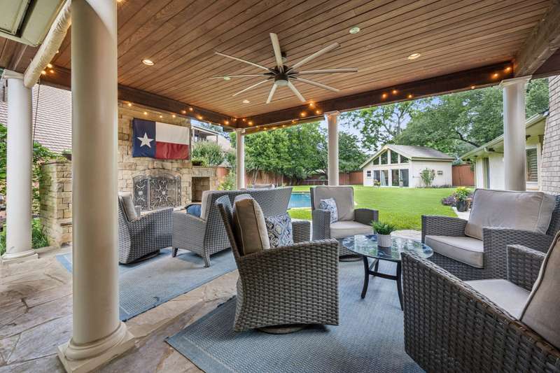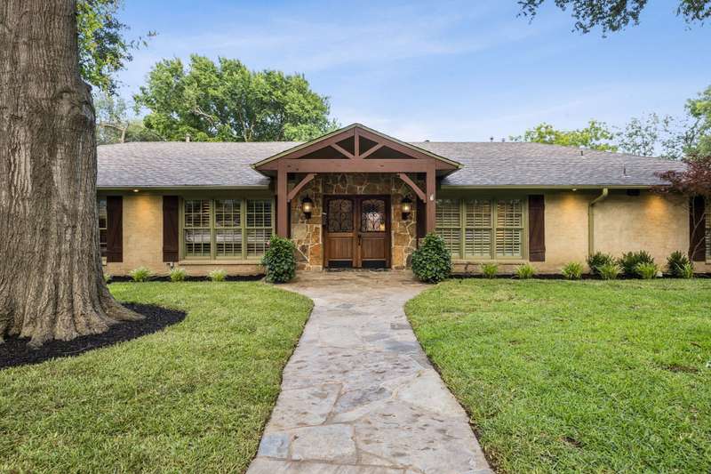Discover timeless elegance and everyday comfort in this beautifully updated single-story ranch home, ideally situated on nearly half an acre in a quiet cul-de-sac in the heart of Preston Hollow's Windsor Park neighborhood. The open-concept layout features a spacious island kitchen and breakfast nook that flow seamlessly into a vaulted living room with wood beam accents and a gas log fireplace. A private office and formal dining room offer flexible spaces for work or entertaining, while a thoughtful split floor plan provides exceptional privacy. The expansive primary suite includes dual walk-in closets and additional wardrobe storage, with two guest bedrooms nearby. A separate guest suite and a private game roomeasily used as a fifth bedroomadds versatility. Practical highlights include an oversized mudroom, abundant storage, and a oversized two-car garage. The lush backyard retreat is perfect for relaxing or entertaining, with a sparkling pool, covered patio with fireplace, and a full guest house complete with kitchen, bathroom, and Murphy bed.
