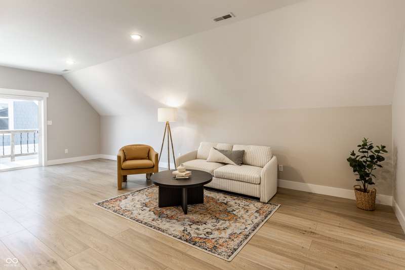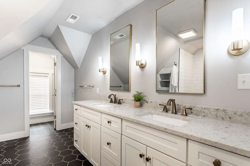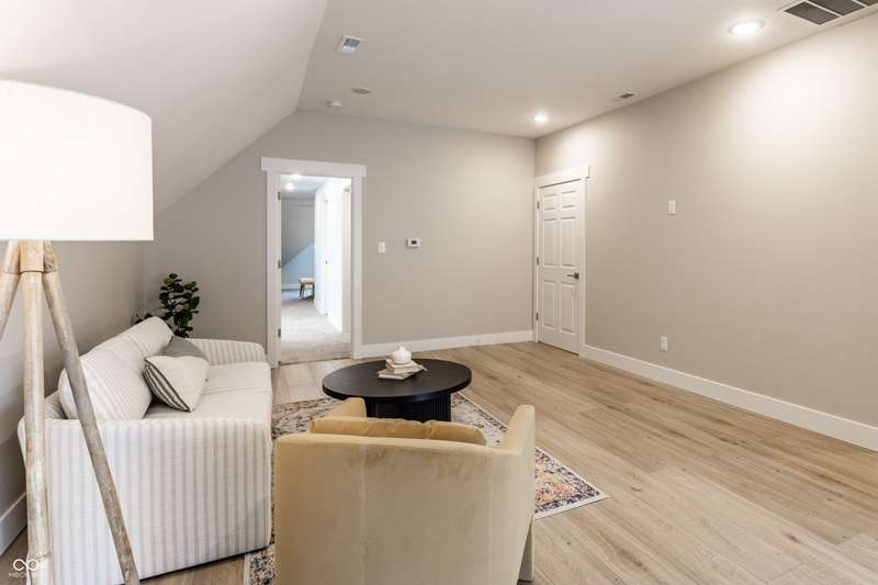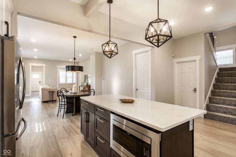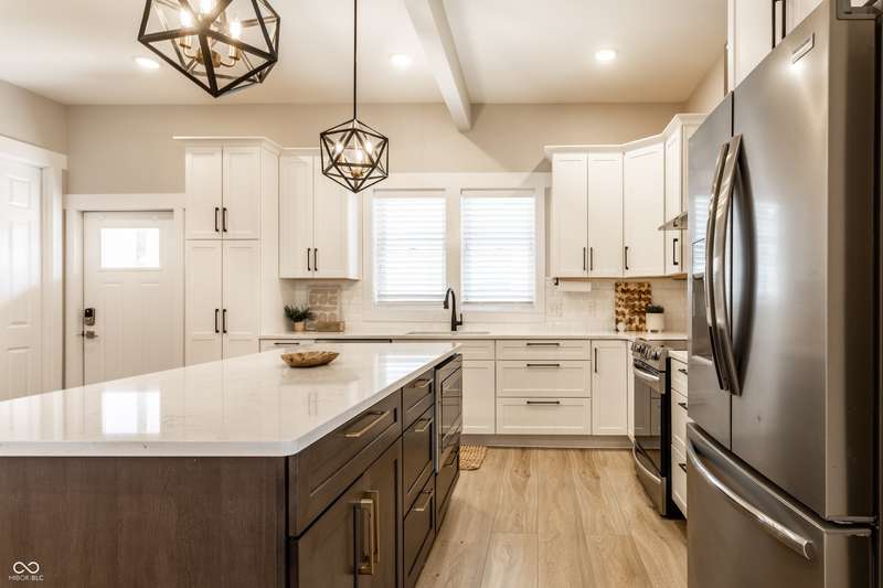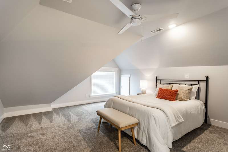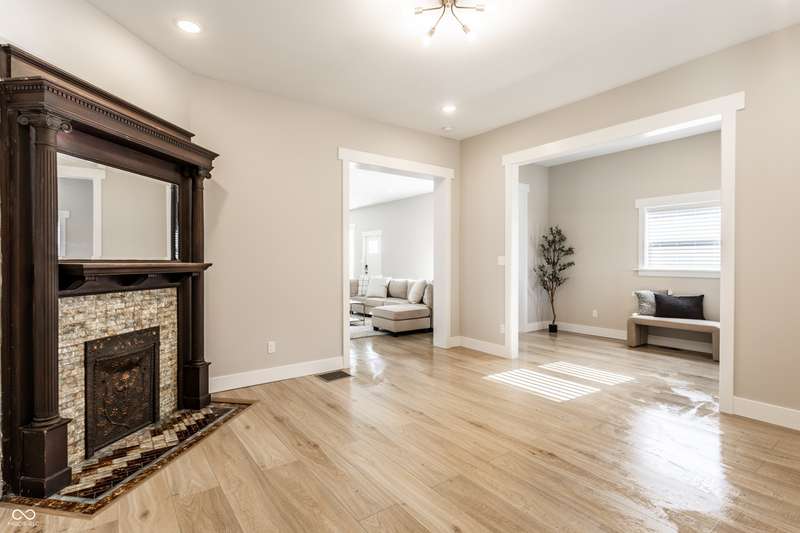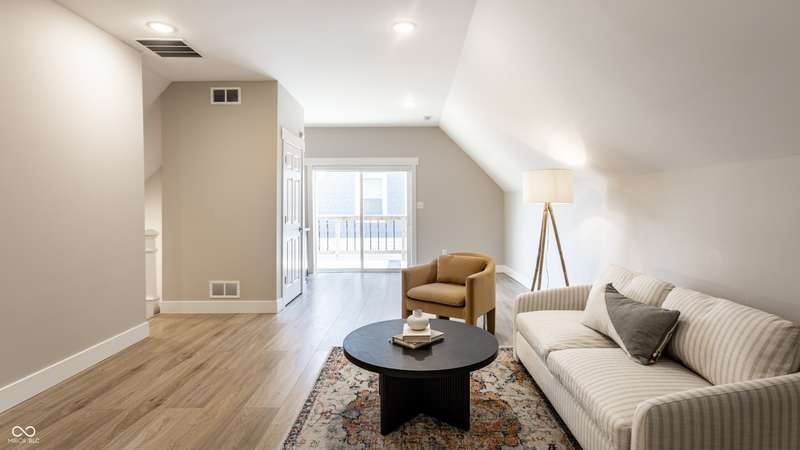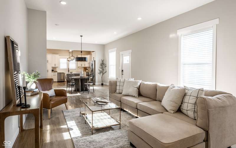 Welcome to the incredible, amazing, jaw dropping.....Holy Cross Neighborhood! This 3 bed, 2.5 bath 2,800 square feet stunner is just one block away from Highland Park and was taken down to the studs a few years ago and brought back even better. Need room to spread out? It has multiple living rooms, soaring ceilings, oversized bedrooms, a dreamy front room for a formal dining room or the office of your dreams. A bonus? A dual HVAC system keeps both floors comfy (a total win in Indy). Step outside to a concrete patio or head up to the second-story deck for skyline views that actually deliver. How about some storage? How about a 1,500 sqft basement ready for all your extras.